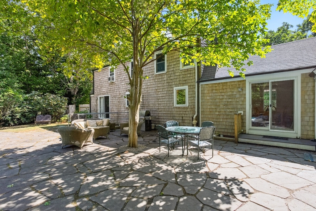 Tucked in the desirable Greengate community, this 4-bed, 4-bath shingle-style home is made for easy Cape Cod living. Set on nearly an acre of privacy, it’s surrounded by lush, mature plantings that create an instant sense of retreat. At its heart is the showpiece: a 50-foot gunite pool and expansive patio, ideal for sunny afternoons, dinners under the stars, and celebrations with family and friends. The inviting layout offers two first-floor bedrooms, open living and dining areas, and seamless access to the outdoor spaces. Upstairs, two more bedrooms offer room for family or guests, while the finished lower level adds flexibility, perfect as a game room, studio, or overflow space. From this prime location, everyday life feels like a getaway. Bike the Shining Sea Bikeway, explore charming Woods Hole, enjoy downtown Falmouth, or hop the ferry to Martha’s Vineyard, all just moments away. A true coastal oasis, ready to welcome new owners to the best of Falmouth living.
