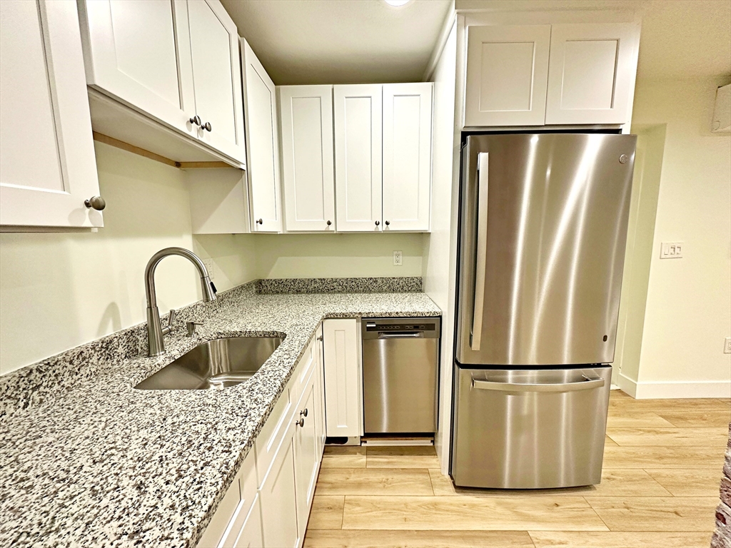 Newly renovated 2 bed/1 bath located on one of the most desirable streets in East Boston's Jeffries Point neighborhood. Updated with brand new and durable LVT flooring, a new kitchen with granite countertops, stainless steel appliances (including dishwasher), refreshed bathroom with new vanity and lighting and a new, high-efficiency, ductless mini-split heating and cooling system. This garden level unit, situated conveniently next to the shared laundry facilities, features its own full walkout. Located steps to Piers Park and the East Boston Waterfront including Downeast Cider, The Tall Ship Restaurant, the Harborwalk and the Mary Ellen Welch Greenway connecting the waterfront to Constitution Beach. Walk to bars and restaurants such as The Quiet Few and Cunard Tavern. 6 minute walk to Maverick Square with additional shops and restaurants, a T-Station and a Ferry Terminal to Seaport and Long Wharf. Don't miss this opportunity to make Eastie your new home! Pets negotiable!