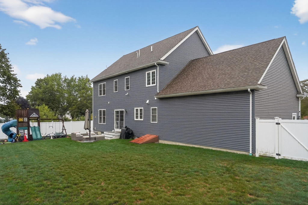 Built in 2020, this 4-bedroom, 2.5-bath colonial offers over 2,600 sq ft of living space in the sought-after Estates at North Attleborough. The main level features hardwood floors, an open-concept living room with gas fireplace, and a modern kitchen that flows into the dining area. A front office/flex room provides a versatile work-from-home option. Upstairs includes four spacious bedrooms, highlighted by a primary suite with walk-in closet and private bath.Enjoy the large, fenced-in backyard — perfect for play, pets, or entertaining — plus a cul-de-sac setting that combines privacy with neighborhood living. Conveniently located near schools, downtown, shopping, and major routes. Move-in ready and turnkey, this home blends comfort, style, and convenience.