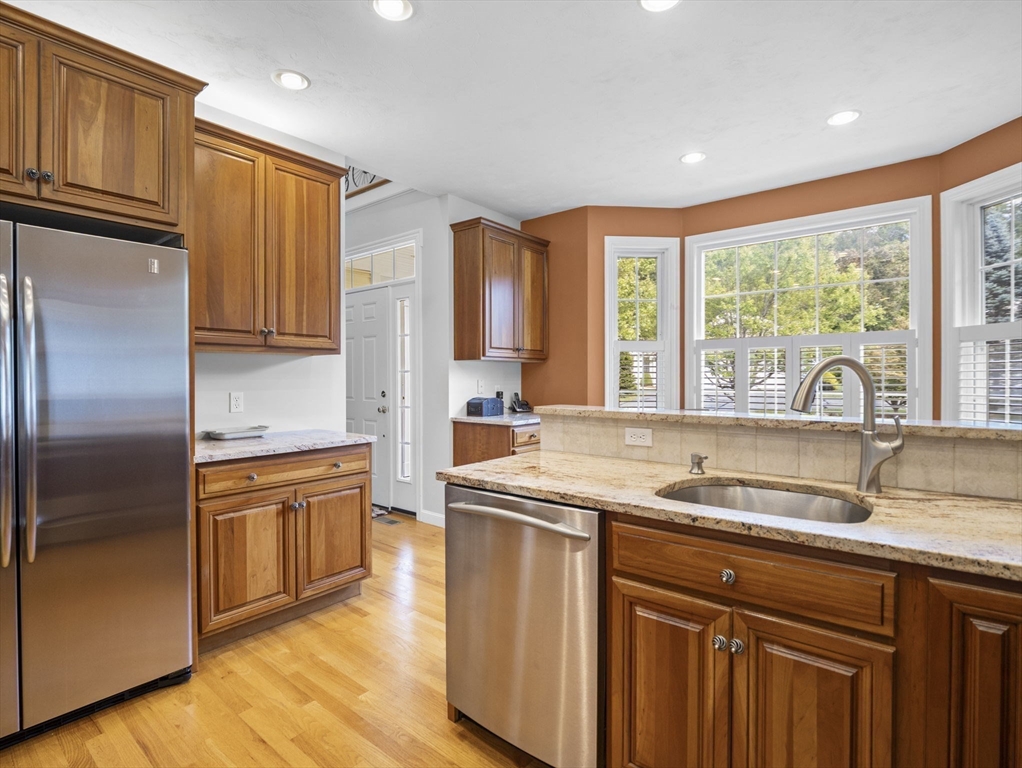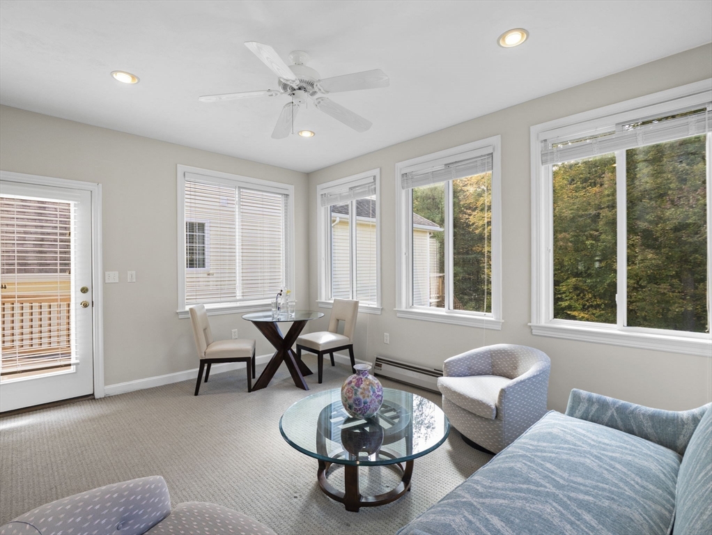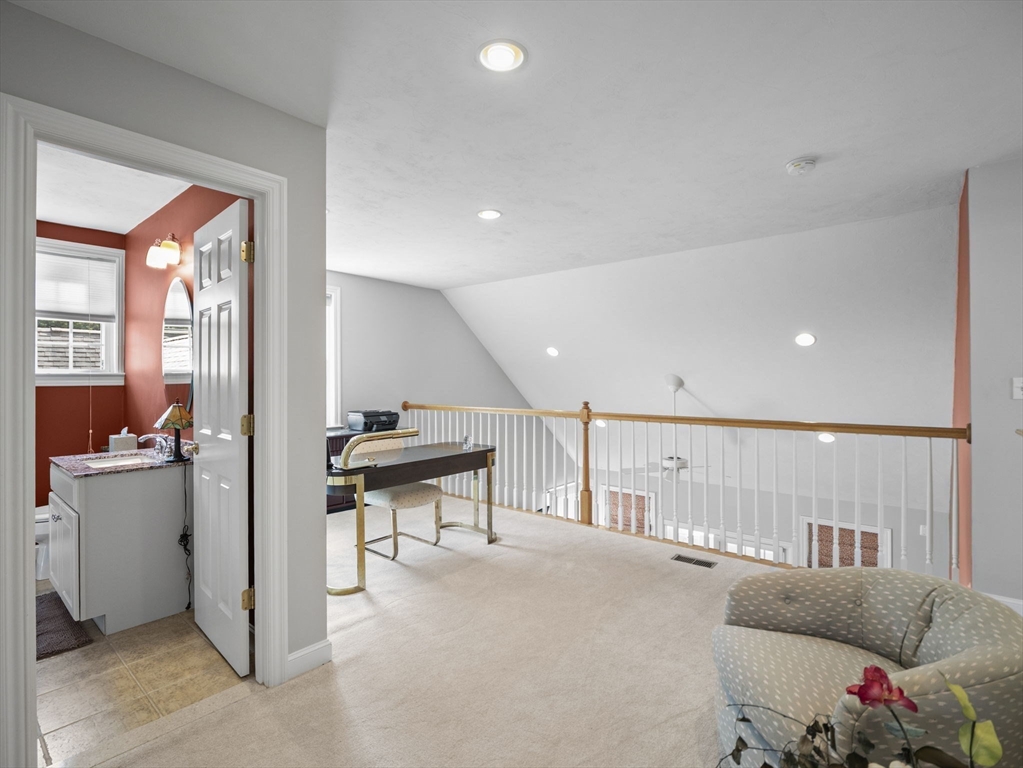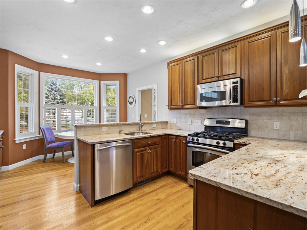 Welcome to this highly desirable 55 + community in Ashland. This beautiful property with a park like setting is warm and inviting with a spacious open floor plan that is conducive to easy living and entertaining. A cathedral ceiling, gas fireplace and hardwoods in the livingroom lead to the charming heated sunroom, and access to a lovely deck. The open and bright kitchen features a breakfast nook with bay window, granite countertops, hardwood floors, and stainless steel appliances. First level primary bedroom has a cathedral ceiling, two closets, one of which is a large walk in with custom organizers, spacious bath with double vanities, shower and whirlpool tub. Second level features a bedroom/full bath/ walkin attic storage spaces, and a large loft area perfect for a home office or den. Very active community with Clubhouse and bocce court. Mintutes to 495, MassPike, T-station, and two State Parks.