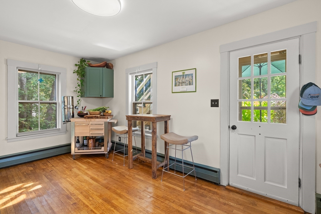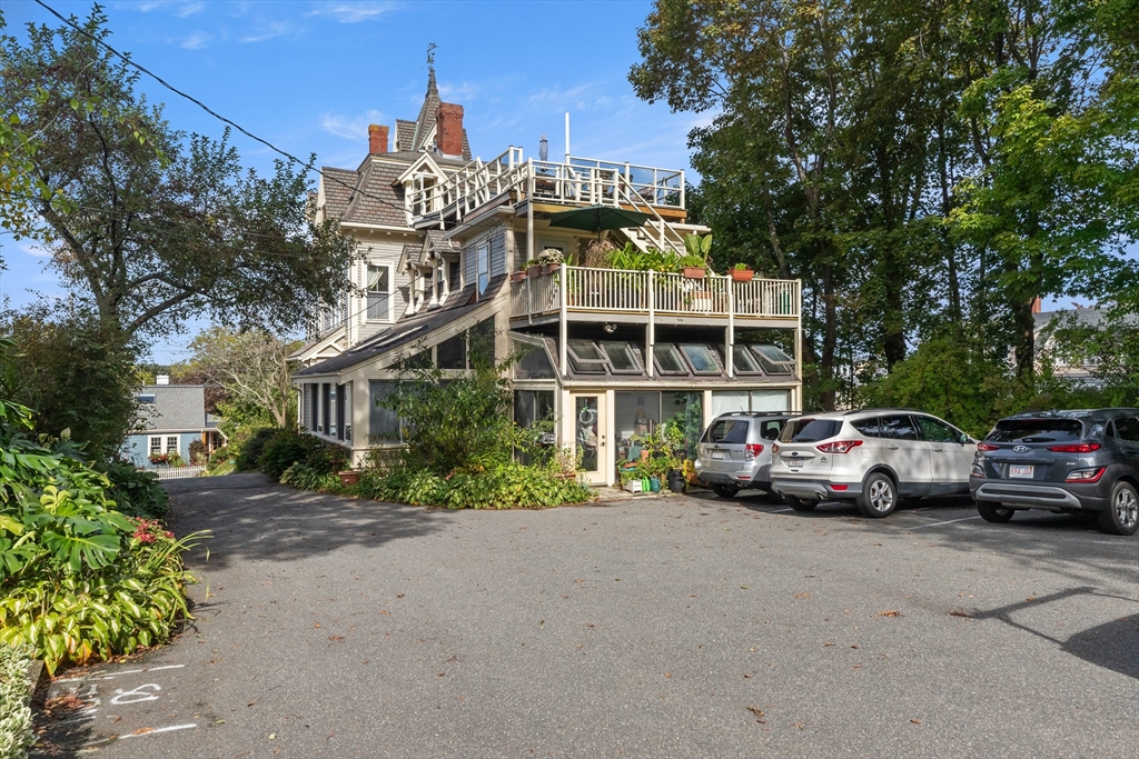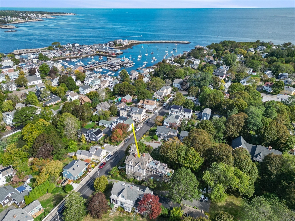 Iconic Queen Ann Victorian, converted into condos in 1995, has commanding views of Rockport Village and Sandy Bay. This second level unit features large oversized windows offering tons of natural light, beautiful wood flooring, original period details and soaring ceilings. The kitchen has been recently renovated with wood countertops and new stainless steel appliances and has a room for a breakfast bar or small table. The living room has wonderful natural lighting and beautiful hardwood floors. The bedroom is very spacious with a sizable closet. The full bath has been updated with a tiled bath and floor. This unit has its own private deck and access to a common third floor roof top deck with seasonal distant water views. The property is on a sizable lot with lots of yard space for relaxing or gardens. The exterior garden shed is shared by the association.Parking for 1 cars. You cannot beat the location! Only 1/2 mile to Rockport Village shops, restaurants & beaches. Don't miss out!