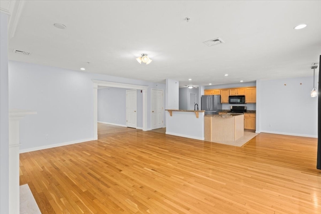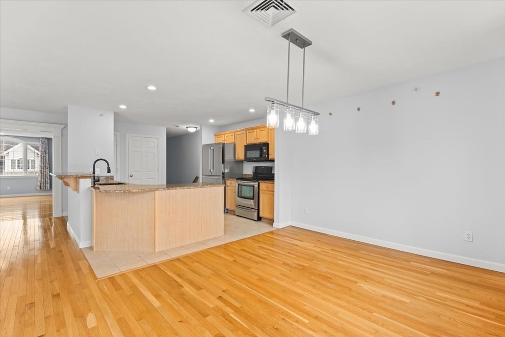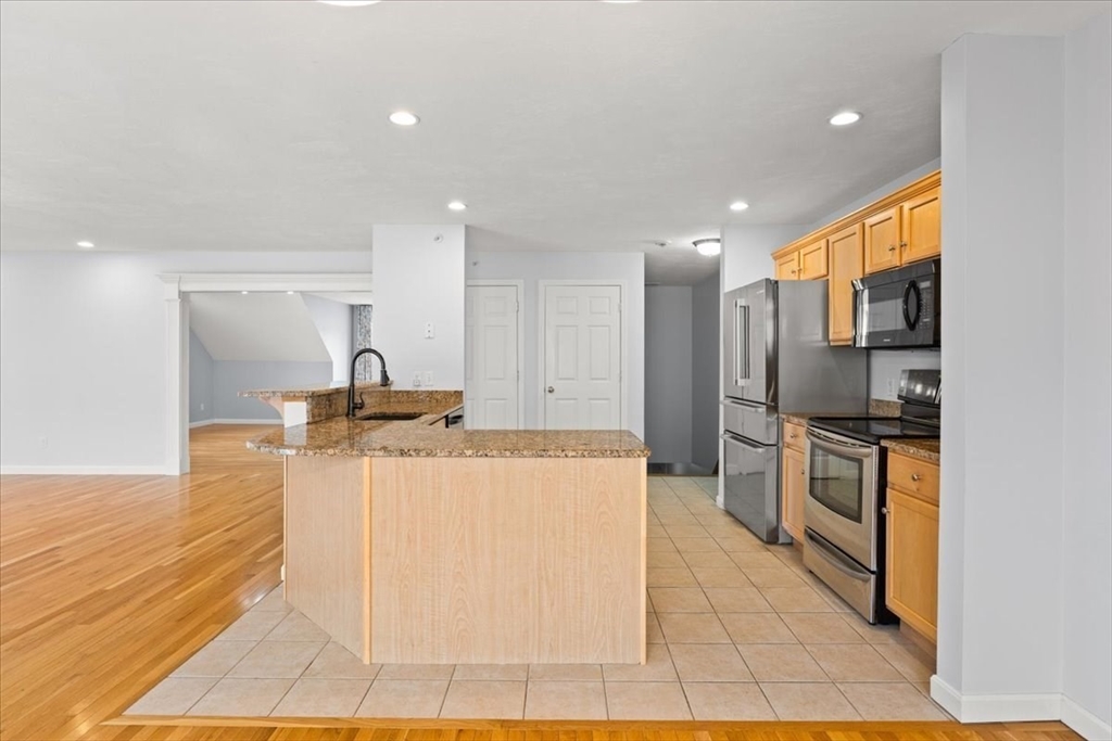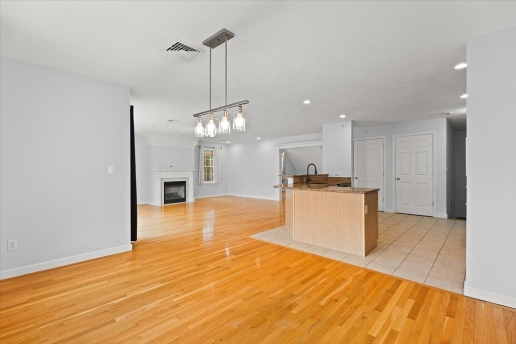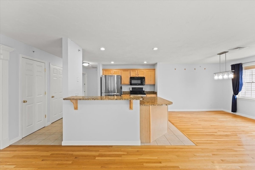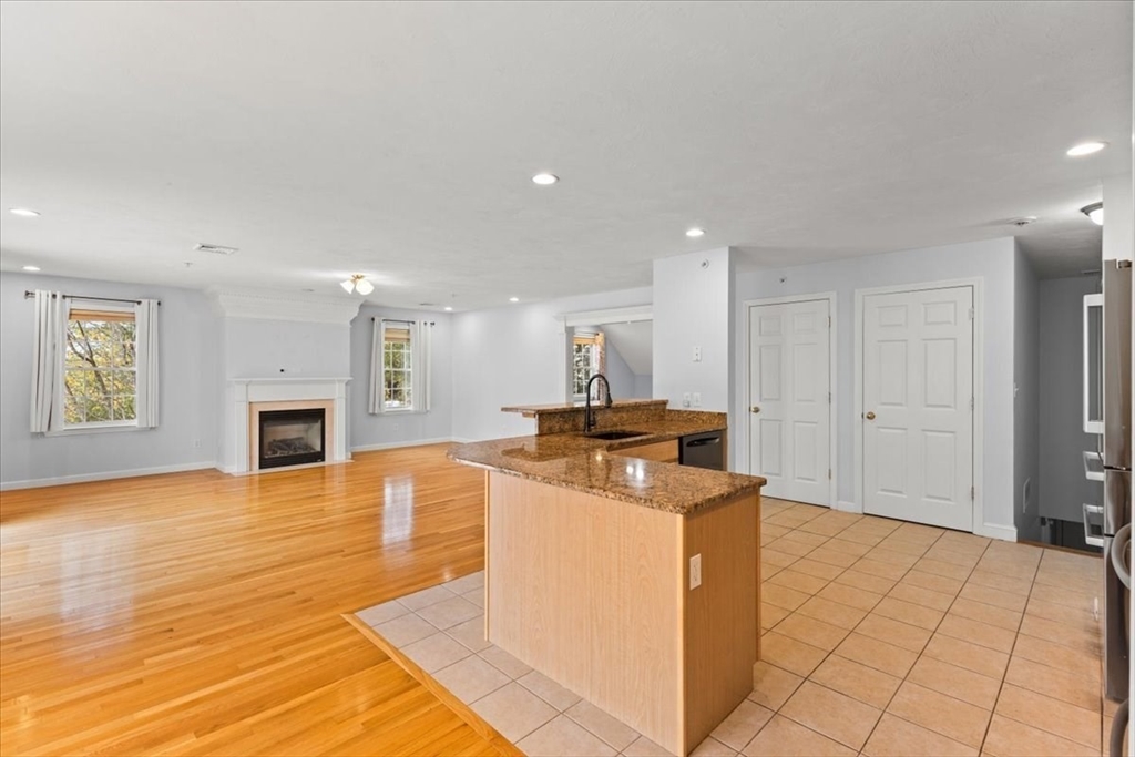 Welcome to the Gables where you'll find this stunning two-bed, two-bath penthouse condo. This home features an open floor plan with gleaming hardwood floors and tons of natural light throughout. The inviting living room, complete with a cozy gas fireplace, creates a warm ambiance for relaxing. Adjacent is a spacious family room, offering flexibility for every buyer. The kitchen is ideal for entertaining as it a large center island with a convenient breakfast bar in addition to shaker cabinets and granite countertops. The primary bedroom offers an en-suite bathroom, while the second bedroom is generously sized and well-designed. This penthouse unit also includes in unit laundry and a one-car garage providing additional storage options. The complex offers a rec room, putting green, tennis courts and more. The location makes this the perfect spot for commuters to both Boston and Providence!
