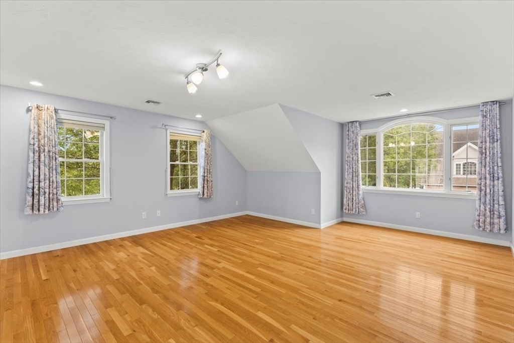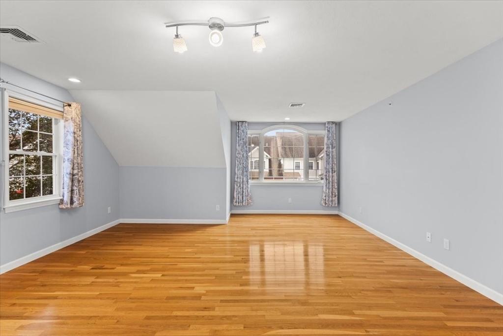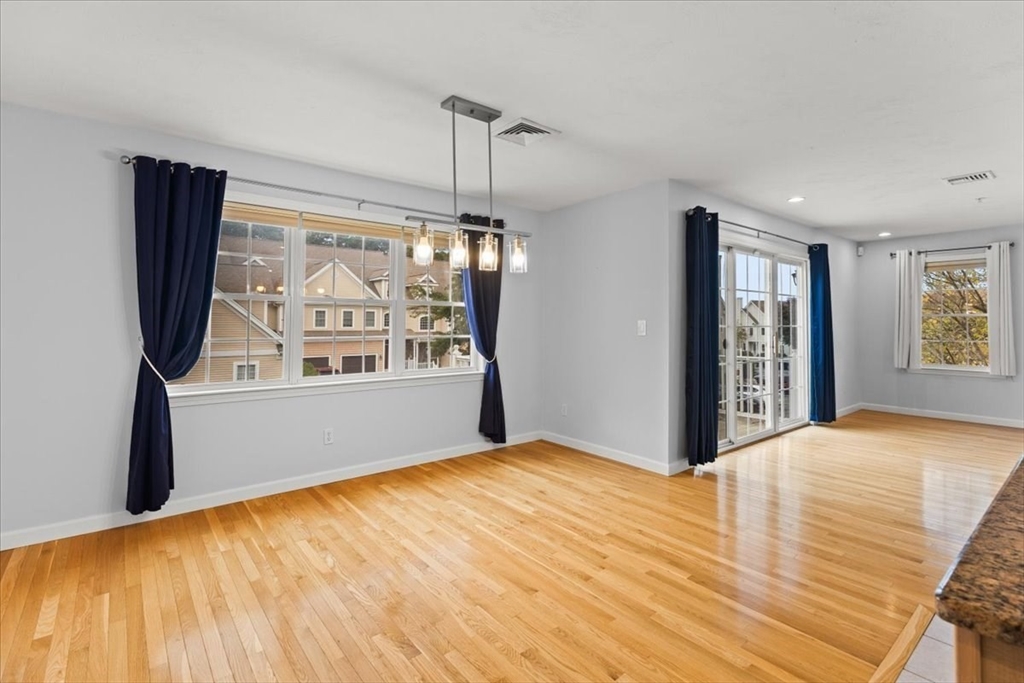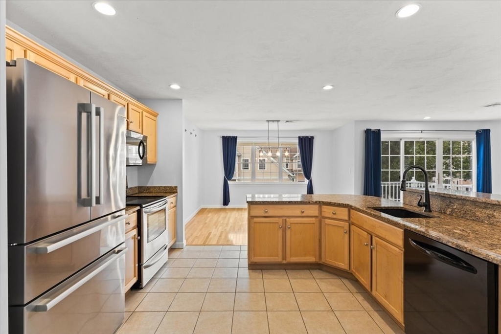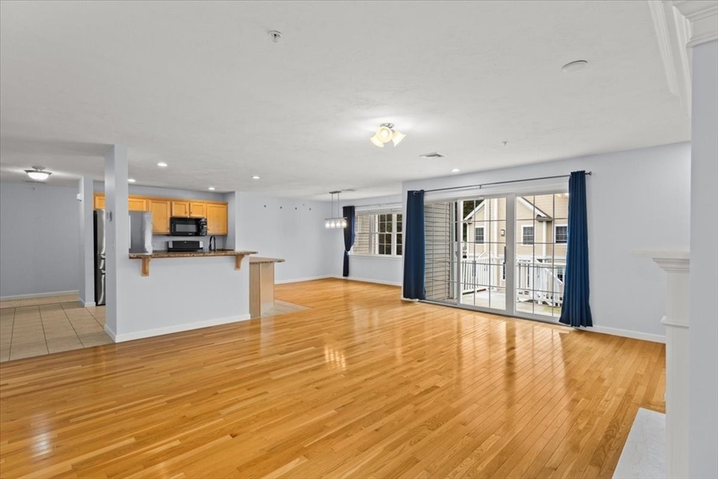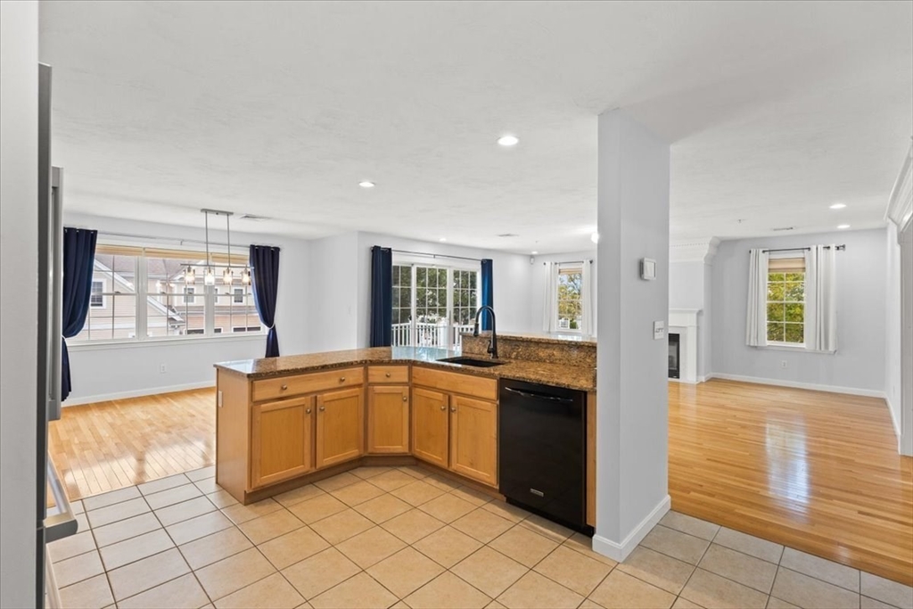 Welcome to the Gables where you'll find this stunning two-bed, two-bath penthouse condo. This home features an open floor plan with gleaming hardwood floors and tons of natural light throughout. The inviting living room, complete with a cozy gas fireplace, creates a warm ambiance for relaxing. Adjacent is a spacious family room, offering flexibility for every buyer. The kitchen is ideal for entertaining as it a large center island with a convenient breakfast bar in addition to shaker cabinets and granite countertops. The primary bedroom offers an en-suite bathroom, while the second bedroom is generously sized and well-designed. This penthouse unit also includes in unit laundry and a one-car garage providing additional storage options. The complex offers a rec room, putting green, tennis courts and more. The location makes this the perfect spot for commuters to both Boston and Providence!