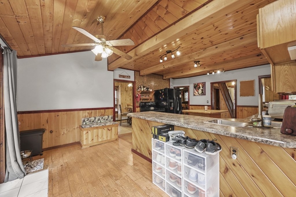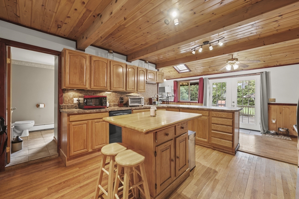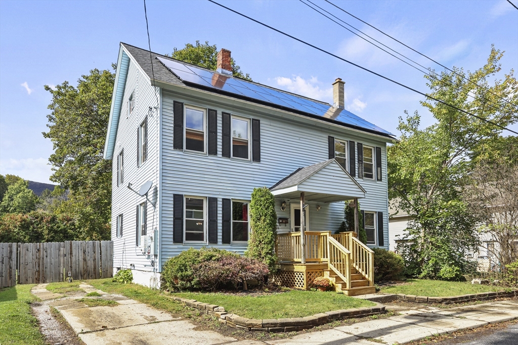 Move-in ready and thoughtfully upgraded, this spacious home combines comfort, efficiency, and convenience. Recent improvements include a brand new roof, solar panels, updated 200-amp electric, & a high-efficiency natural gas heating system with multiple zones. The bright kitchen features an island, new skylight & new French doors to a large back deck. The living room offers a cozy gas fireplace insert, while two updated bathrooms plus first-floor laundry add everyday ease. Enjoy excellent attic storage, a newly built front porch, and a private, fenced backyard with a stone patio & indoor/outdoor bar area, ideal for entertaining. A two-car garage provides added storage & convenience. This home is the perfect blend of smart updates & inviting spaces, ready for you to move in & enjoy