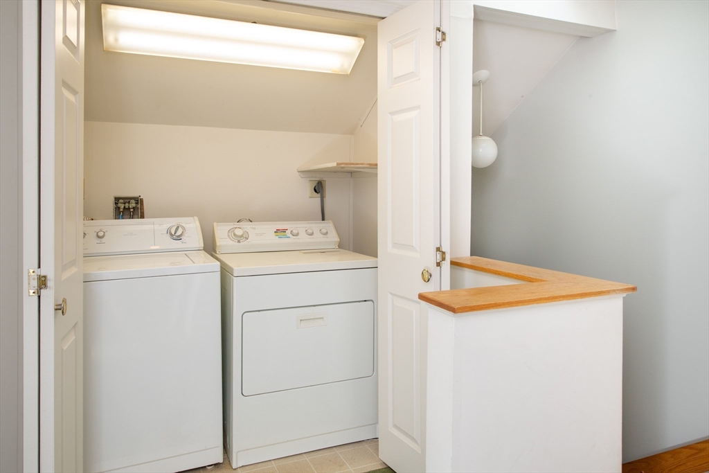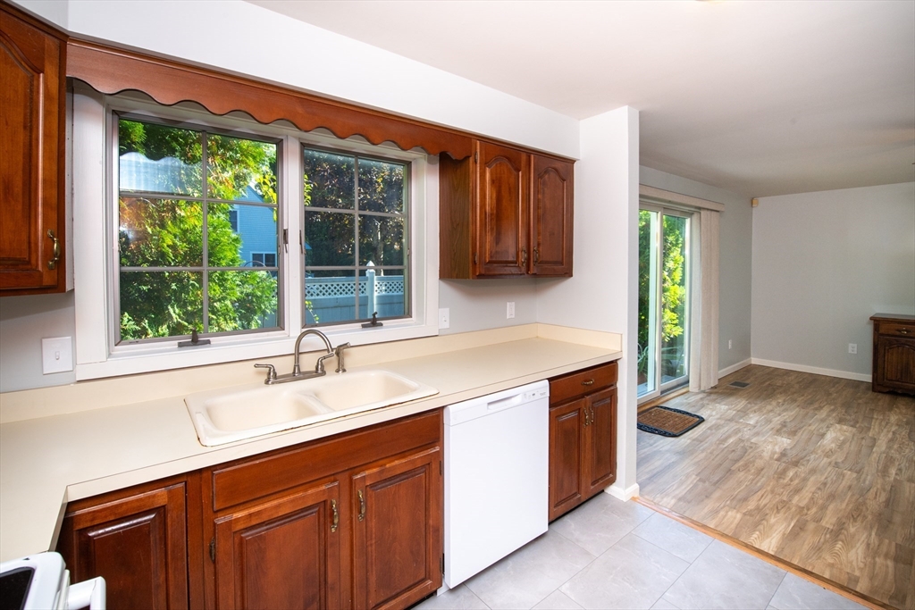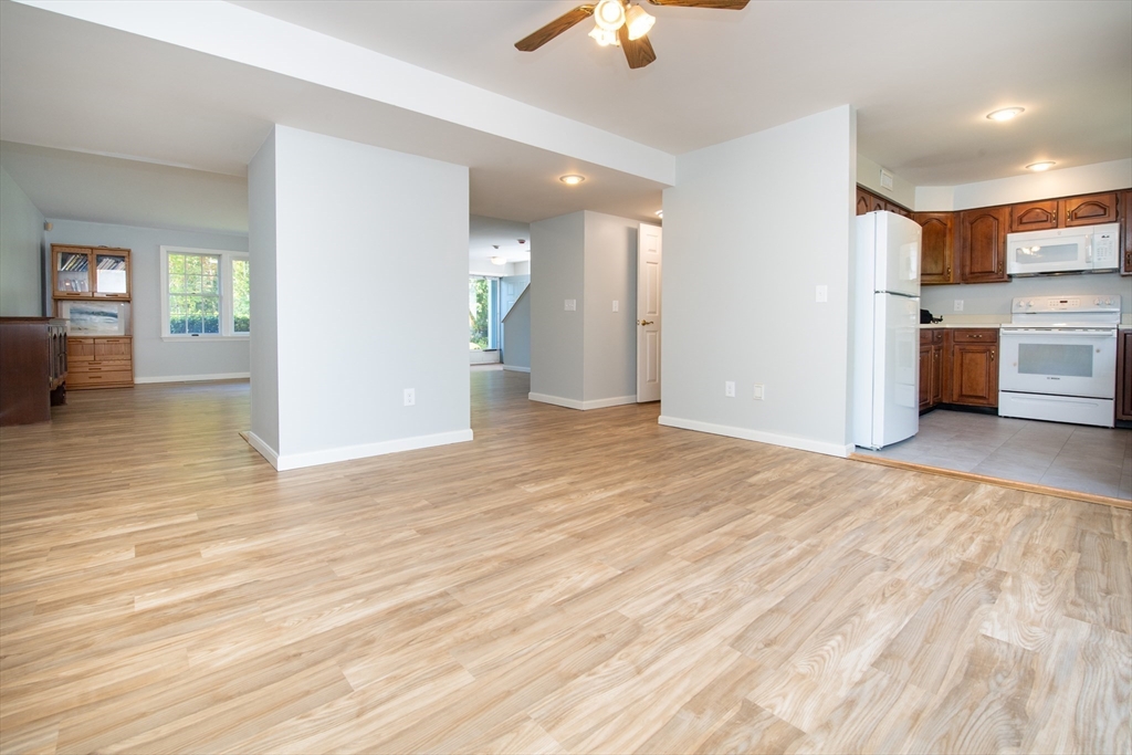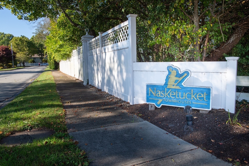 This bright and inviting townhouse is perfectly tucked away off the main road in a private community of just 26 homes. The first level offers an open floor plan with charming bay window. Updated flooring, a cozy fireplace and half bath create a warm, welcoming, and convenient living space, while the dining area and kitchen feature a slider that opens to your own private backyard retreat. Upstairs, you’ll find two comfortable bedrooms, including a spacious primary suite with an en-suite bath. The second floor is drenched in sunlight from multiple skylights. A key feature is the second floor laundry area located the near the bedrooms, plus an additional bathroom for flexibility. Recent updates include a newer heating system and a brand-new hot water heater. Two assigned parking spaces complete this desirable home. Do not miss your opportunity to live in the Nasketucket Townhouses!