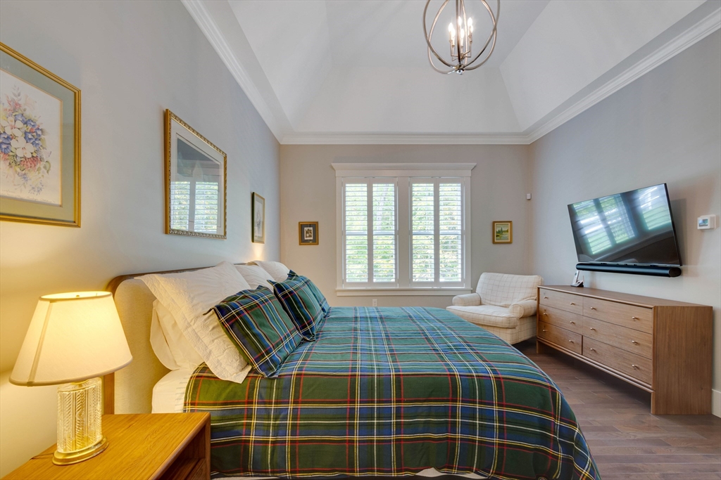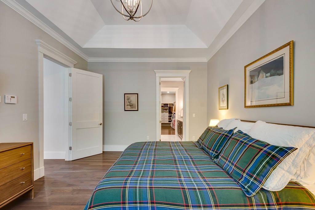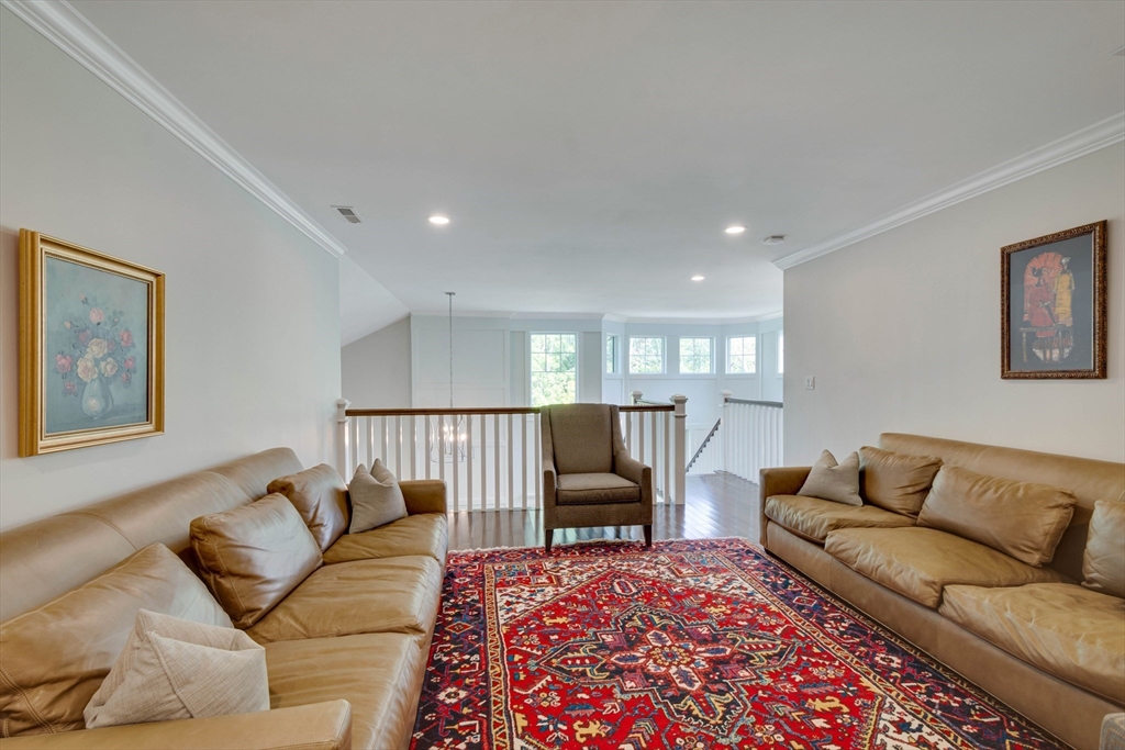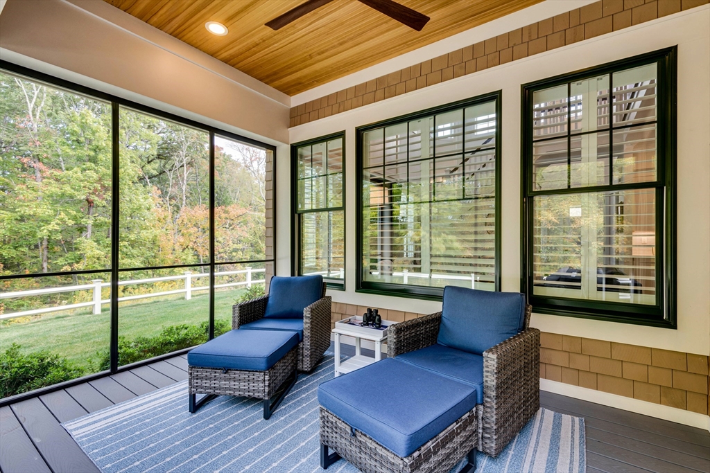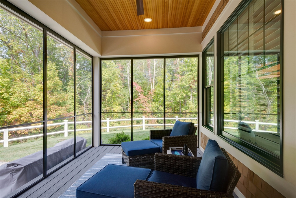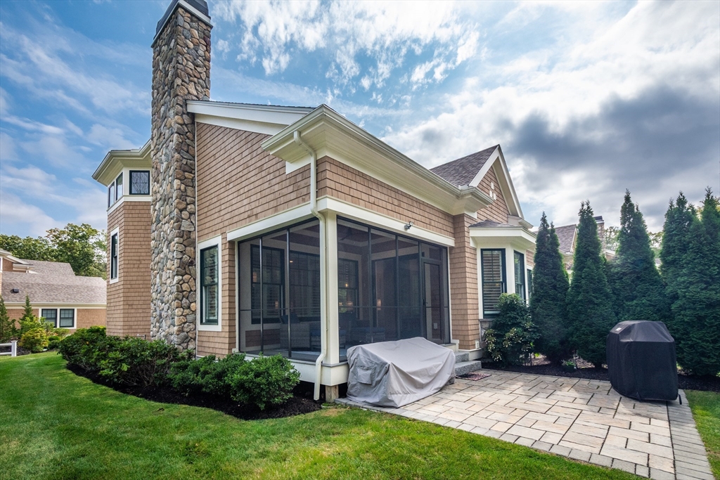 Welcome to Winning Farm, an award-winning 55+ community in Winchester, just 8 miles North of Boston. This stunning 3 bedroom, 2.5 bath home offers thoughtful design and exceptional attention to detail throughout. Step inside to soaring ceilings, hardwood floors, and an inviting open floor plan perfect for entertaining or relaxing by the fire. The first-floor primary suite provides comfort and convenience, while a private home office with coffered ceilings and a versatile loft area make working from home effortless. Enjoy seamless indoor-outdoor living with a screened-in porch, patio, and sun-drenched rooms that fill the home with natural light. The finished lower level offers abundant space for extended living as well as generous storage options. This custom townhome combines elegance and functionality in a premier, private end unit location, surrounded by the serenity and peacefulness of Winning Farm.