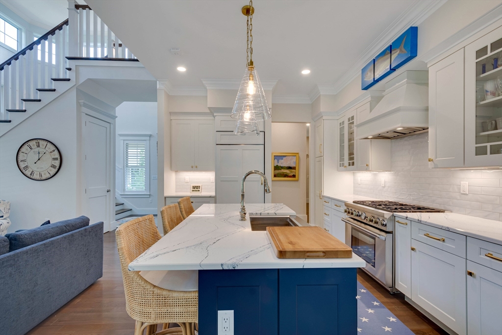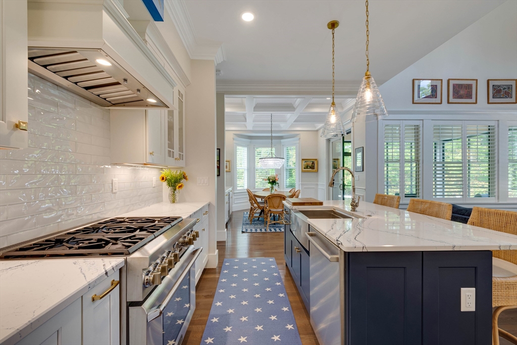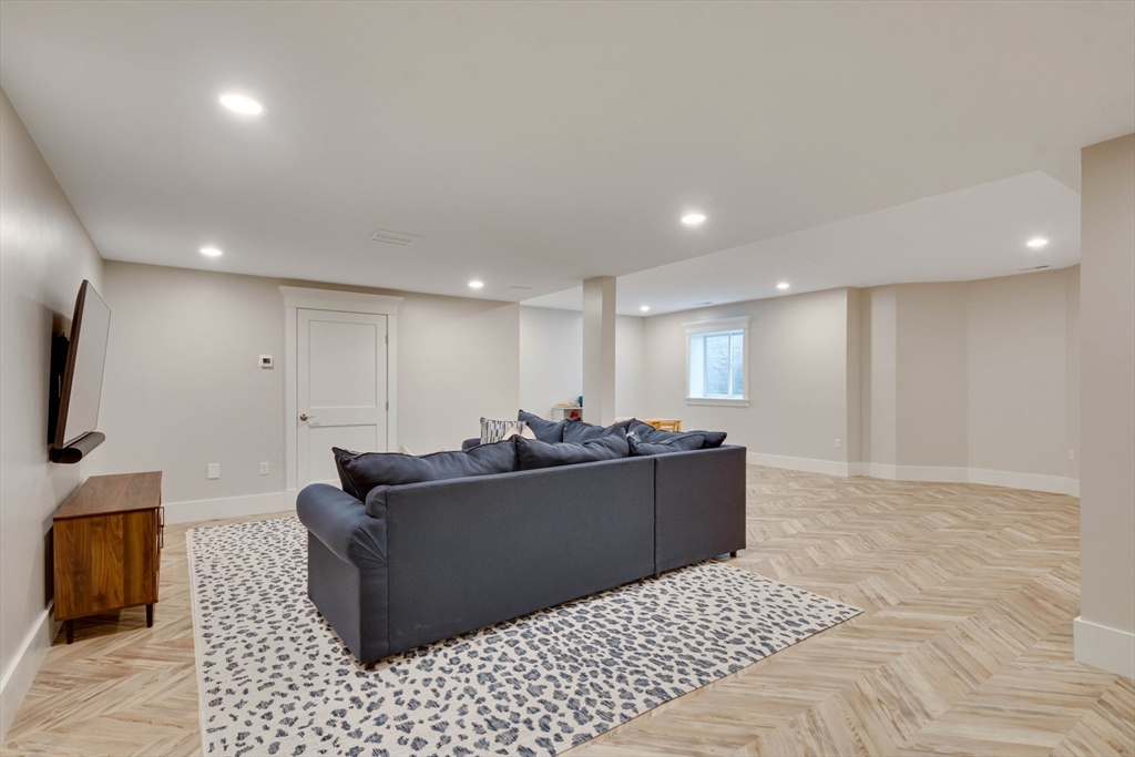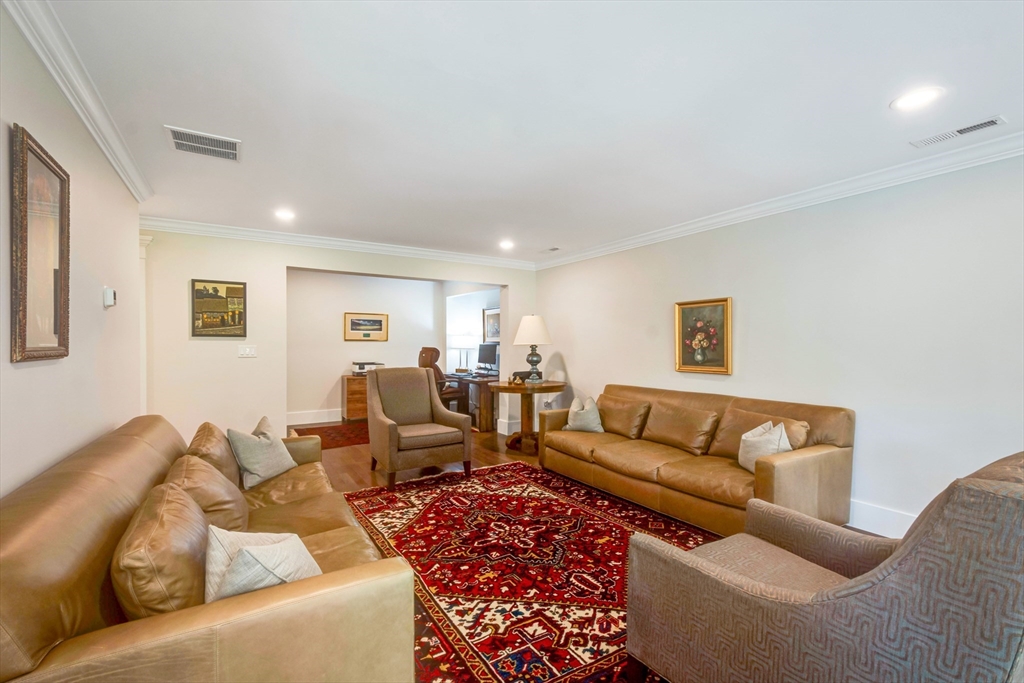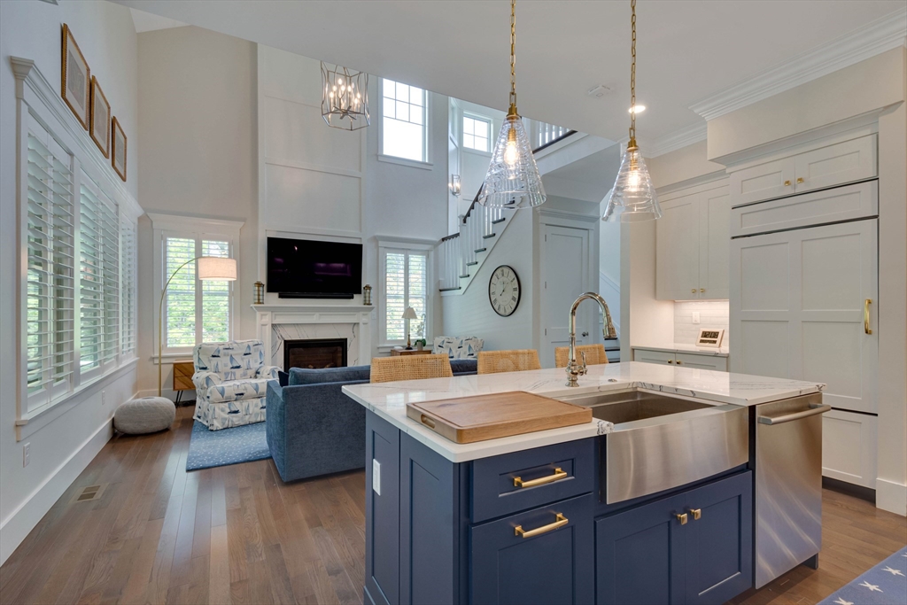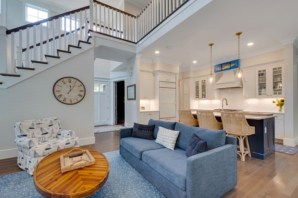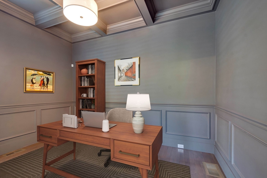 Welcome to Winning Farm, an award-winning 55+ community in Winchester, just 8 miles North of Boston. This stunning 3 bedroom, 2.5 bath home offers thoughtful design and exceptional attention to detail throughout. Step inside to soaring ceilings, hardwood floors, and an inviting open floor plan perfect for entertaining or relaxing by the fire. The first-floor primary suite provides comfort and convenience, while a private home office with coffered ceilings and a versatile loft area make working from home effortless. Enjoy seamless indoor-outdoor living with a screened-in porch, patio, and sun-drenched rooms that fill the home with natural light. The finished lower level offers abundant space for extended living as well as generous storage options. This custom townhome combines elegance and functionality in a premier, private end unit location, surrounded by the serenity and peacefulness of Winning Farm.