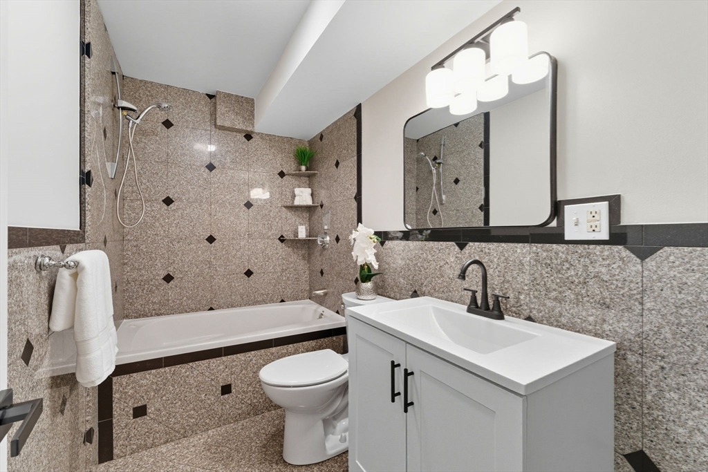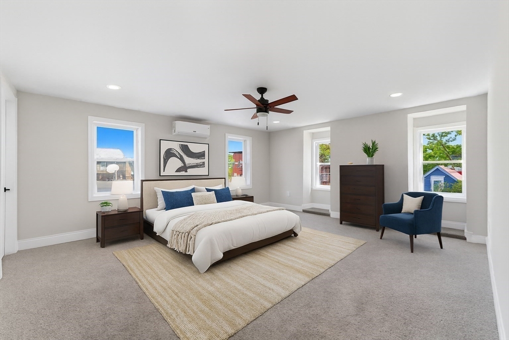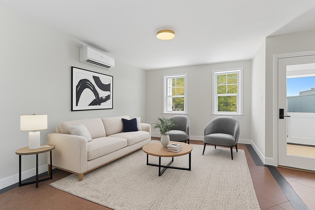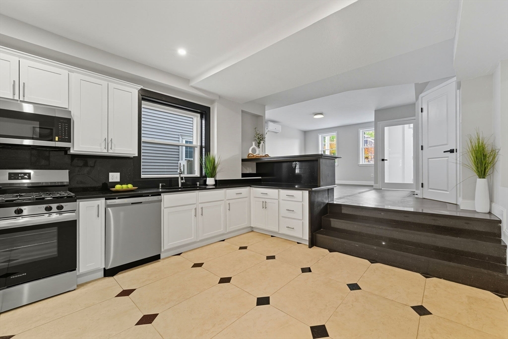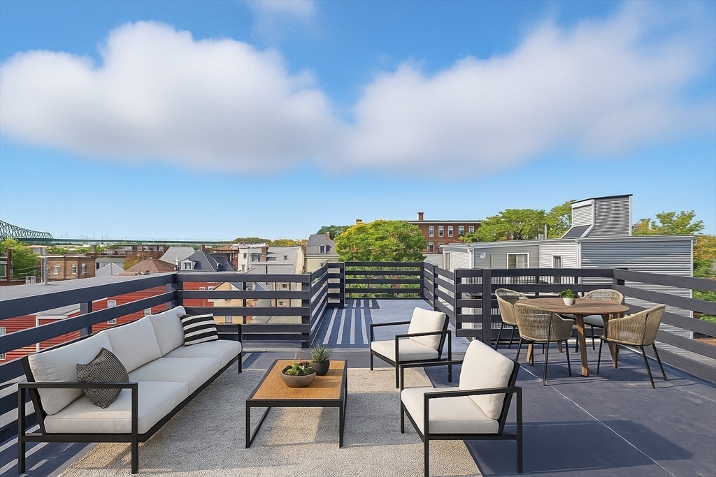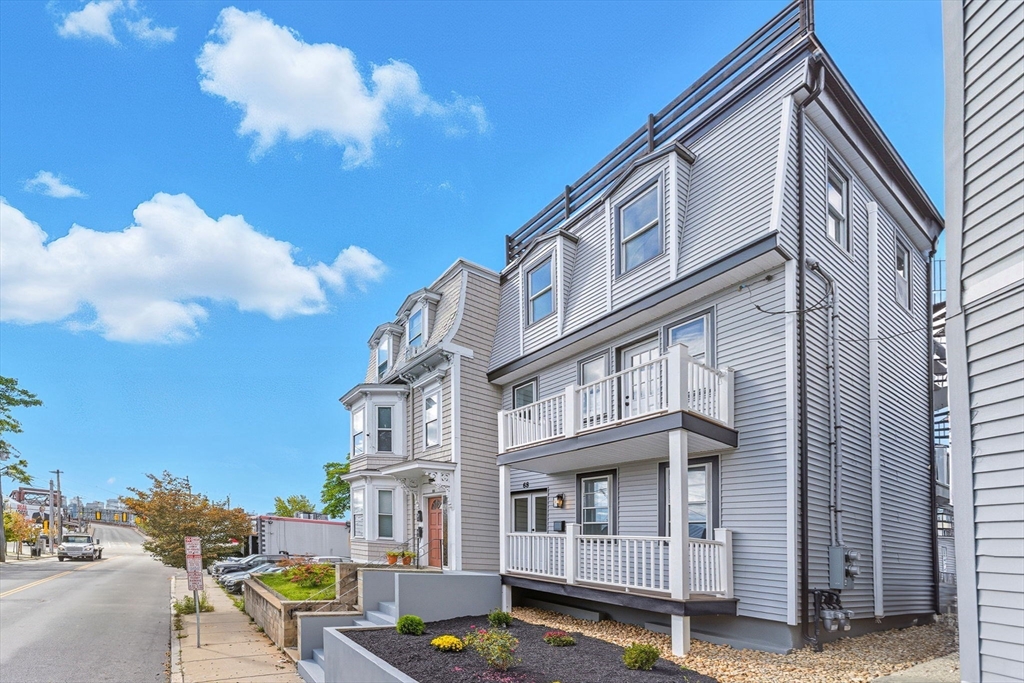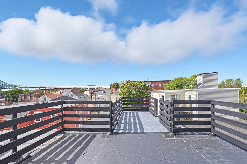 Experience city living at its best in this Chelsea attached single family! This home has the potential to be converted into a 2-family in the future with 2 gas meters, 2 electric meters already existing. Currently boasting 4 bedrooms, 3 full baths, & a luxurious top-floor primary suite w/spacious bath & laundry. Deck/Balconies off the bedrooms offer versatile living, while the updated kitchen with new appliances makes entertaining a breeze. At the top of the spiral staircase a private roof deck awaits for fabulous city views or enjoy the stylish private paver patio w/ low maintenance exterior. A spacious paver stone driveway touches the back street & includes exclusive parking for 6 cars! Just minutes to Boston, this home combines comfort, convenience, & modern style. Freshly painted, some new flooring, new carpeting, new energy efficient ductless splits, new siding, new asphalt roof (rubber roof is young) new vanities, this home has been completely refreshed! Move in & enjoy the views