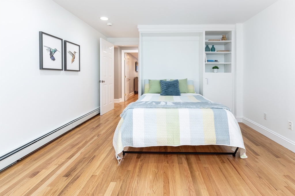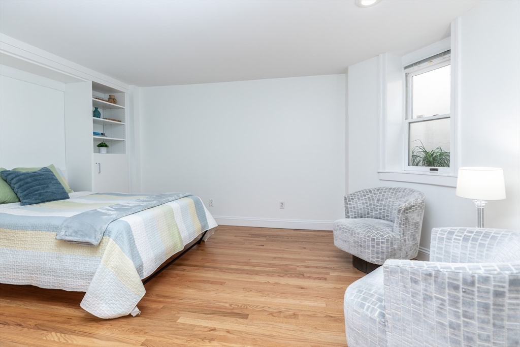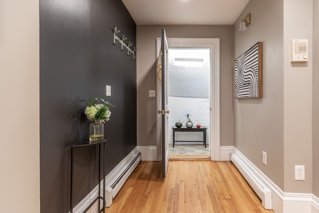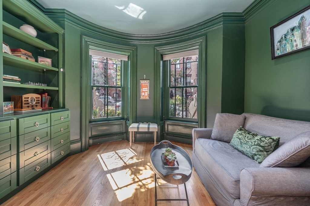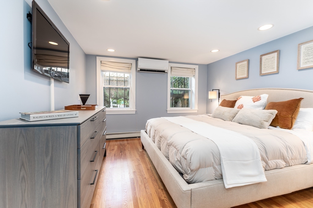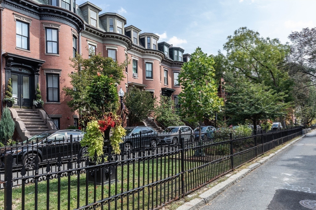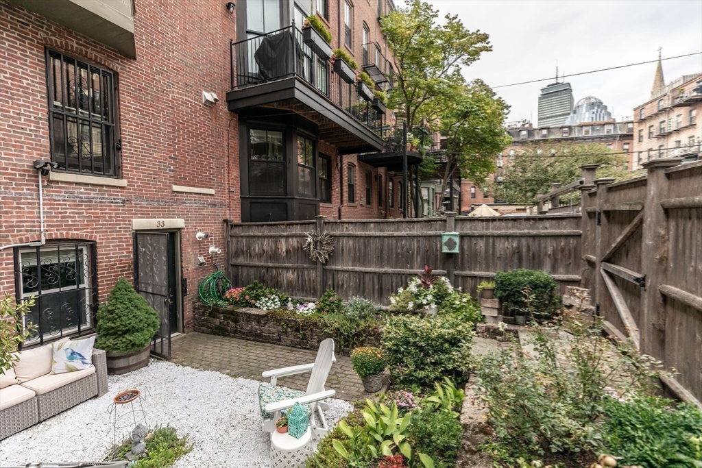 Welcome to Historic Concord Square, a jewel of the South End framed by lush gardens and two grand cast-iron fountains. From the front door of Number 33, beauty and charm greet you at every turn. Inside, elegance unfolds across two levels: a sun-splashed living/dining area with original marble mantle, a cozy library perfect as a home office, a chic powder room for guests, and a chef’s kitchen with new, premium appliances provide for effortless entertaining. The garden level offers a serene primary bedroom, large bath, guest bedroom with walk-in closet, in-unit laundry, and a bonus room used as a bedroom but which could easily serve as a nursery, or home office. Outdoors, a large, landscaped private patio is your retreat for morning coffee or evening cocktails, with convenient direct access to one parking space. Blending historic character with modern luxury, this rare offering delivers the ultimate South End lifestyle delivered with a low condo fee in a perfect location.