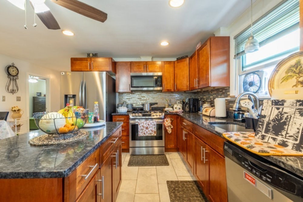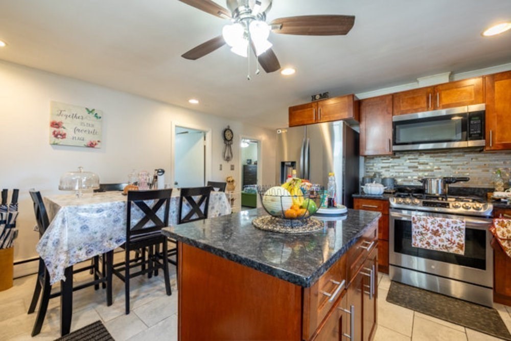 Beautifully renovated 5-bedroom home in a sought-after Lynn neighborhood on a quiet DEAD-END street! Exterior recently painted & the masonry front entry was thoughtfully redesigned, creating an elegant approach while also providing an additional parking space. Updated kitchen features granite counters, stainless steel appliances & ceramic tile. Living room offers abundant natural light, hardwood floors & fireplace. Finished basement nearly doubles the home’s footprint with 2 bedrooms, 1.5 baths & a spacious laundry room with sink—bringing the home’s total to 5 bedrooms & 2.5 baths. Garage parking, plenty of storage including enhanced attic space, & a backyard with potential for 2 patio areas complete this move-in ready property. A blend of modern updates, comfort & convenience!