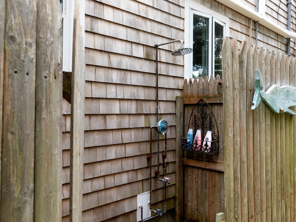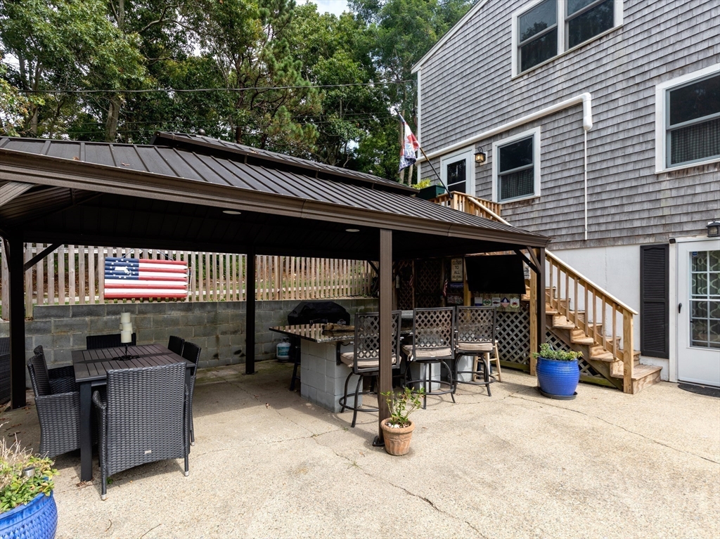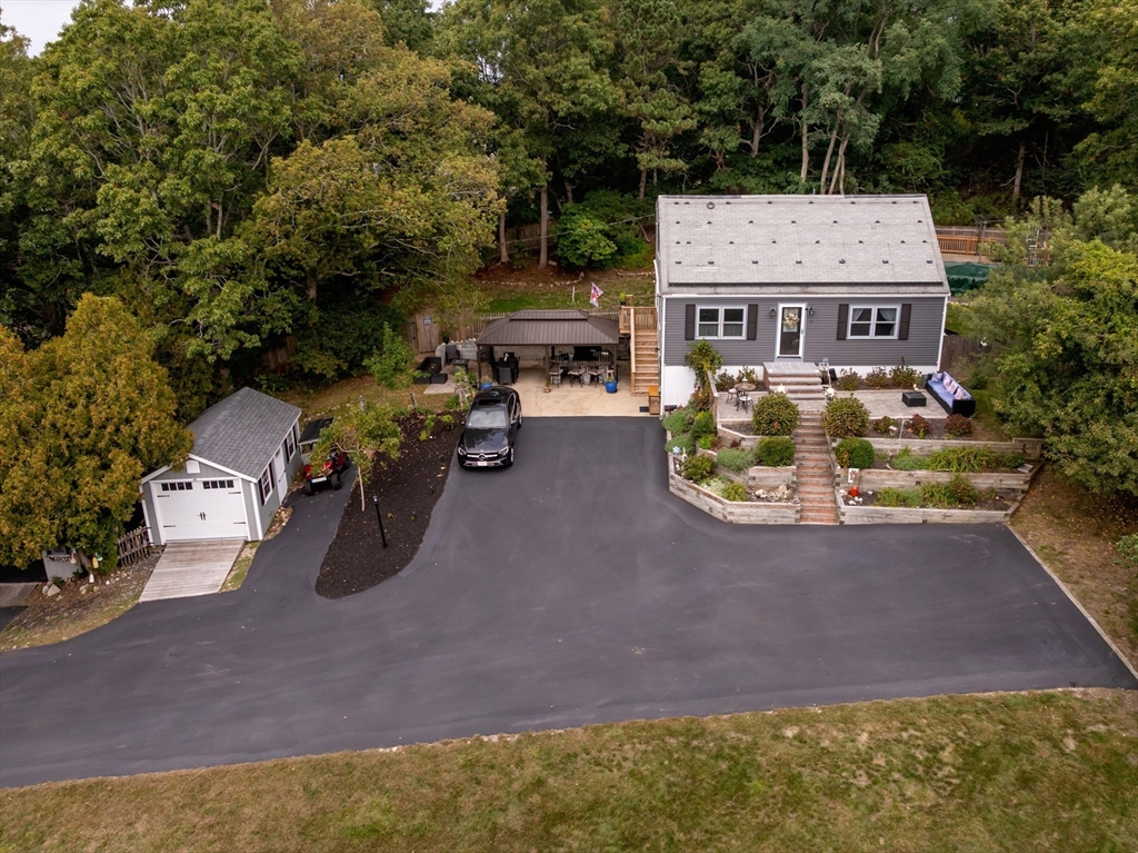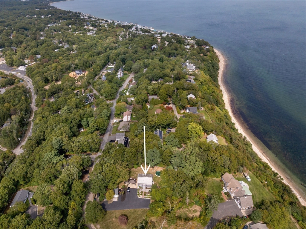 Situated one house away from a 115 ft ocean bluff, this home is where everyone wants to be. Made for entertaining, the home's exterior offers privacy and space w/multiple seating areas, including an elevated paver patio off the front entrance w/ terraced flower beds, expansive lower patio w/ new retaining walls, granite topped bar that seats 8+, outdoor TV & is part. covered w/ metal roofed gazebo, and the fenced in back yard has an above ground pool with decking & an outdoor shower. A newer 1 car garage w/ power has an exterior space for RV parking & the newly paved oversized driveway can accommodate a crowd. The home's exterior has new cedar shingles. The interior offers 3 floors of living space -a bright kitchen & dining area, first floor bedroom and full bath, and large living room. Second floor has the primary bedroom with walk-in closet, large 3rd bedroom, laundry room, and full bath. The ground floor has an office off the mudroom w/ separate entrance, bonus rm, and utility rm.