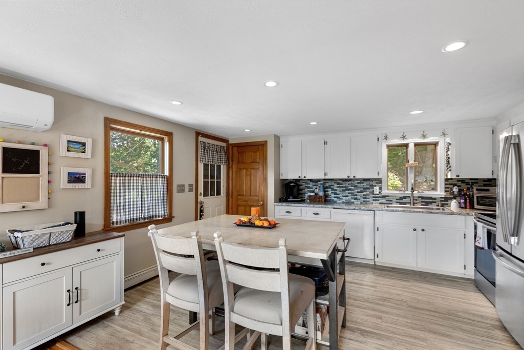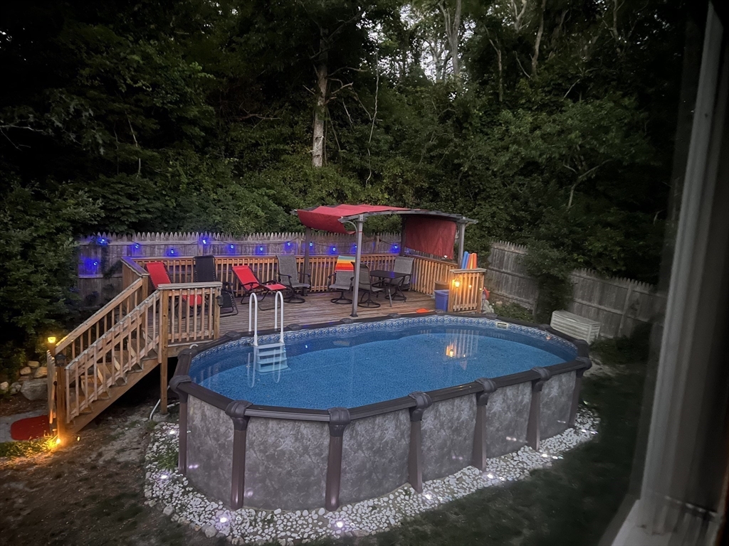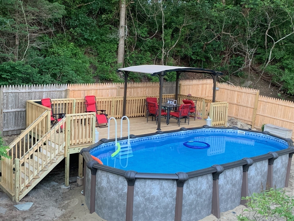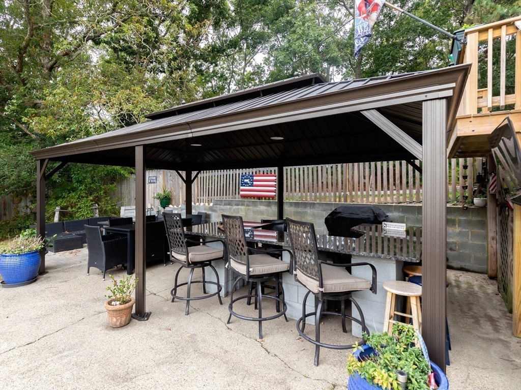 Situated one house away from a 115 ft ocean bluff, this home is where everyone wants to be. Made for entertaining, the home's exterior offers privacy and space w/multiple seating areas, including an elevated paver patio off the front entrance w/ terraced flower beds, expansive lower patio w/ new retaining walls, granite topped bar that seats 8+, outdoor TV & is part. covered w/ metal roofed gazebo, and the fenced in back yard has an above ground pool with decking & an outdoor shower. A newer 1 car garage w/ power has an exterior space for RV parking & the newly paved oversized driveway can accommodate a crowd. The home's exterior has new cedar shingles. The interior offers 3 floors of living space -a bright kitchen & dining area, first floor bedroom and full bath, and large living room. Second floor has the primary bedroom with walk-in closet, large 3rd bedroom, laundry room, and full bath. The ground floor has an office off the mudroom w/ separate entrance, bonus rm, and utility rm.