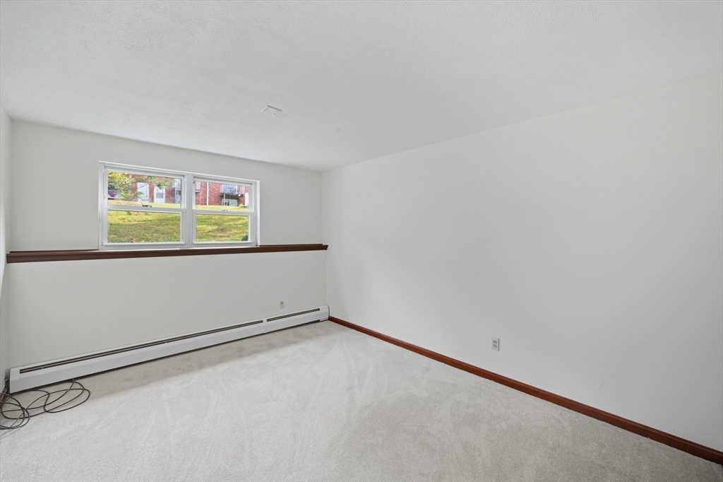 One of the larger units with over 900 square feet of living space and two deeded parking spots, this condo is move in ready with an updated kitchen that has a brand new refrigerator and dishwasher, newer stove, large dining and living area, a primary bedroom with a walk-in closet, a second generous sized bedroom, both with new carpets and a large bathroom with a modern vanity. Ground level unit, makes it easy to bring the groceries in! Condo fee includes heat and hot water! Great location, near shopping and commuting routes.