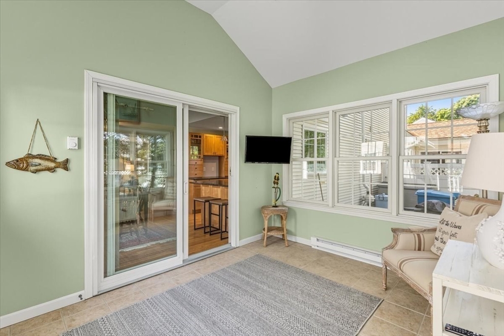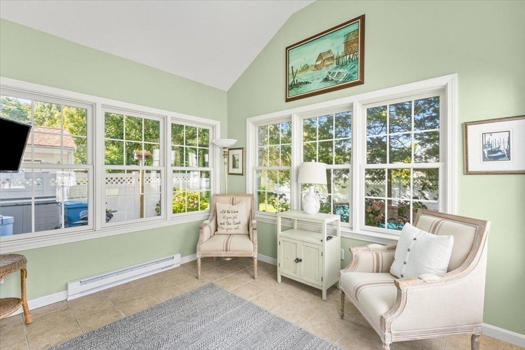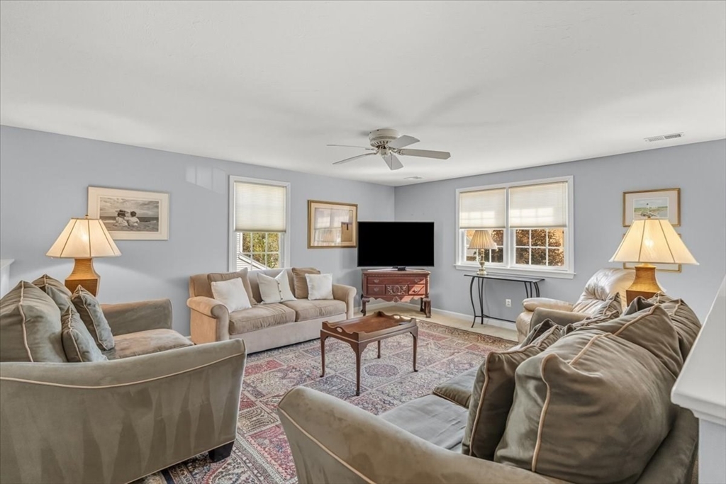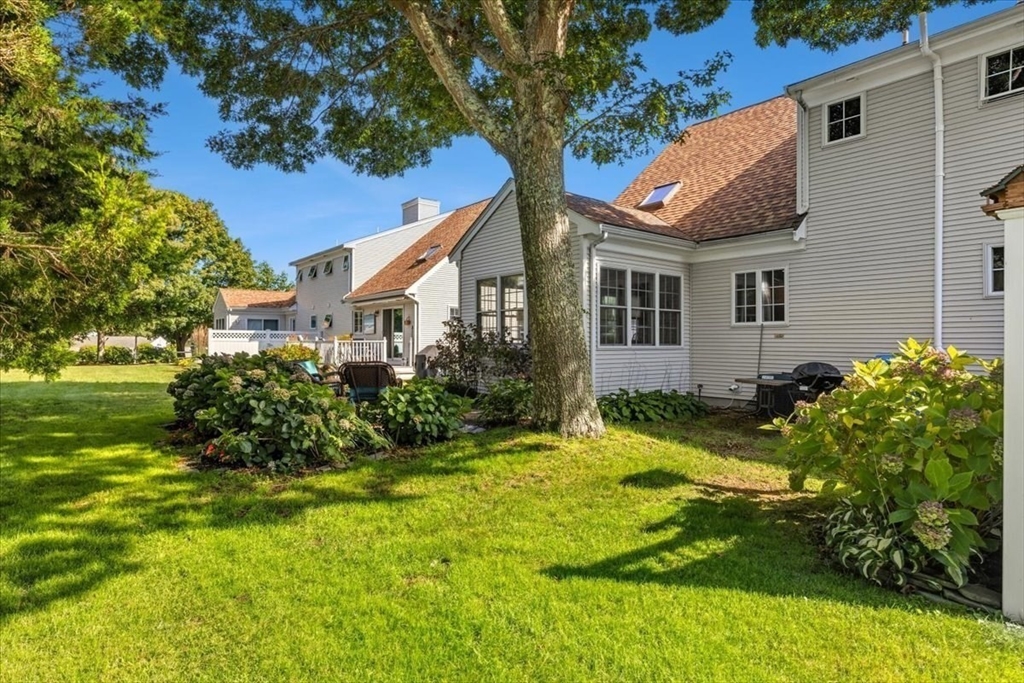 This sweet 2 bed 2.5 bath condo is located in Teaticket Hills, a complex with 8 duplex homes close to all town has to offer. This unit features an impressive kitchen with custom cabinetry, granite countertops and gas stove. The dining area boasts a cathedral ceiling open to the large family room above. Gleaming hardwoods throughout the kitchen, dining area & living room with gas fireplace to keep you cozy in winter and central a/c for summer comfort. An added bonus is the bright & airy sunroom with view of the patio. A bedroom and full bath with laundry completes the first floor. The 2nd floor features an ensuite bedroom with full bath, large closet and a versatile family room with additional half bath for extra guests. Enjoy the outdoors on your front porch or back patio all surrounded by mature landscaping. It's not often you find a place tucked away yet so close to everything all at once!