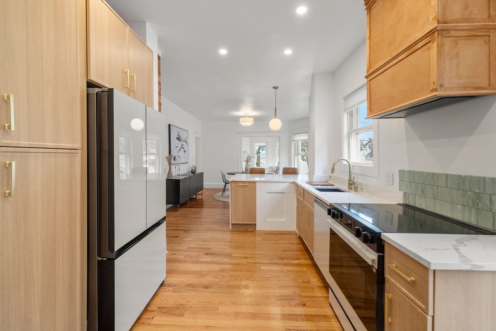 Welcome to 55 Johnson Ave, a beautifully renovated condo offering a clean, modern aesthetic in one of Winthrop’s most sought-after seaside neighborhoods. Just blocks from the beach, this thoughtfully updated home blends comfort, functionality, and coastal charm in a vibrant community setting. Step inside to discover a bright and inviting living space featuring refinished hardwood floors, a completely updated kitchen and bath, and tasteful finishes throughout. The kitchen is the heart of the home, boasting brand-new cabinetry, sleek quartz countertops, and an oversized island—perfect for cooking, dining, and entertaining. With three well-proportioned bedrooms, this unit offers flexible living options, including an upper-level bedroom that makes for an ideal home office or private retreat. The renovated full bathroom features stylish tilework and modern fixtures, adding to the home’s refreshed feel.