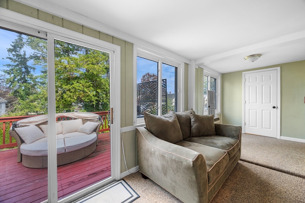Nestled on a quiet, one-way street close to downtown Peabody, this beautifully renovated home perfectly blends modern updates with timeless character. From the moment you step inside, you’ll be greeted by wide pine plank floors and original period details that exude warmth and charm. The open-concept kitchen is a true centerpiece, featuring high-end appliances, updated cabinetry, granite and a seamless flow into the dining and living rooms — ideal for both everyday living and entertaining. A welcoming front porch and a spacious rear deck provide inviting outdoor spaces, while the expansive backyard offers endless possibilities for relaxation, gardening, or play. With 1.5 updated baths and three generously sized bedrooms, this home is thoughtfully designed for comfort and style. Recent updates include a new roof (2020), boiler and hot water heater (2023), new range and dishwasher, interior painting and vinyl flooring in the kitchen. Central AC and off street parking with huge rear yard.
