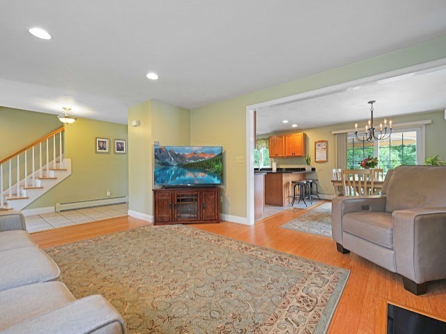 Beautifully maintained 3 bedroom, 2 bath situated in a desirable and convenient location in the far north end. The open floor plan offers an inviting atmosphere with bamboo flooring and a gas fireplace. Comfort is assured year round with efficient mini split for heating and cooling. The kitchen boast granite countertops and ample cabinetry. A finished room in the basement offers additional living space perfect for home office or playroom. Large master bedroom with vaulted ceilings and 2 walk-in closets. Outside the matured yard is equipped with a full sprinkler system making lawn care effort less . This home offers the perfect blend of comfort and convenience. Do not miss your chance to own this well maintained home in an established neighborhood just minutes from shopping, train, schools and highway