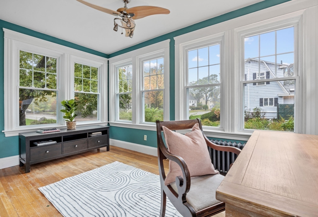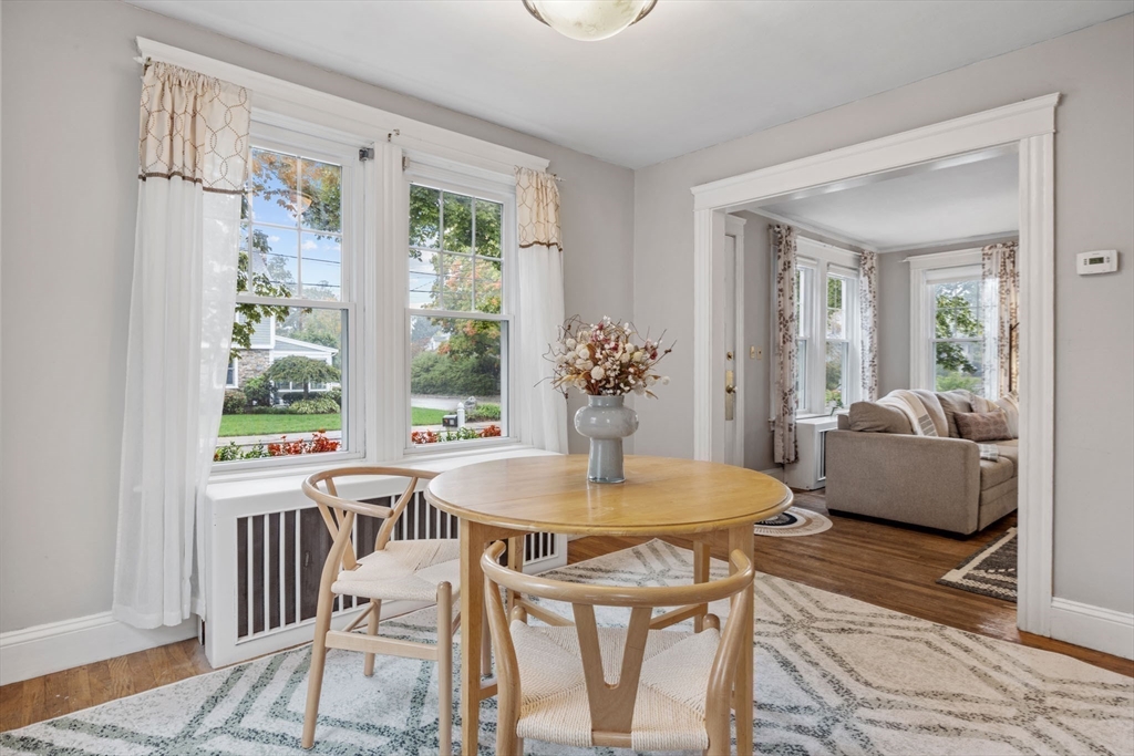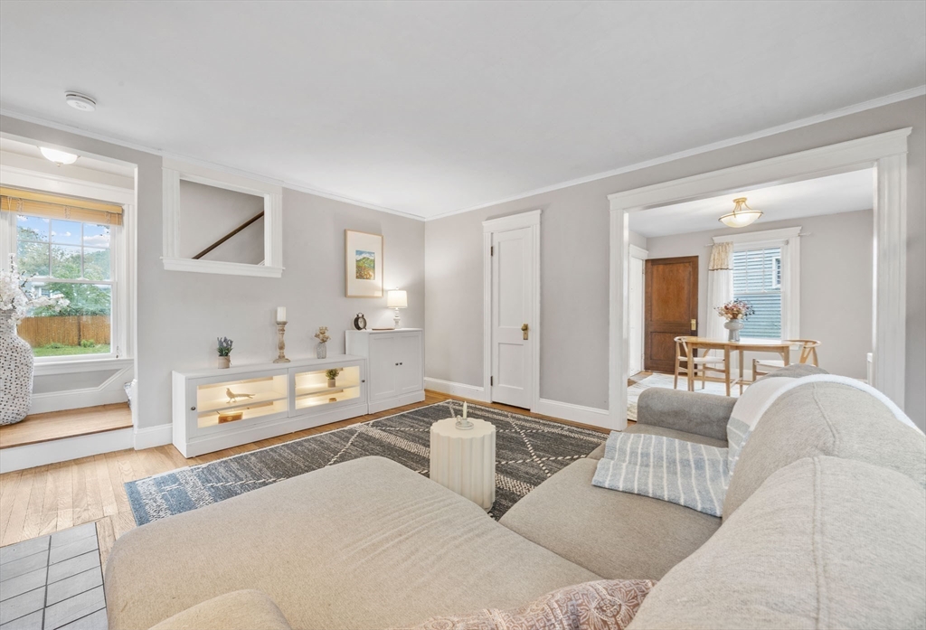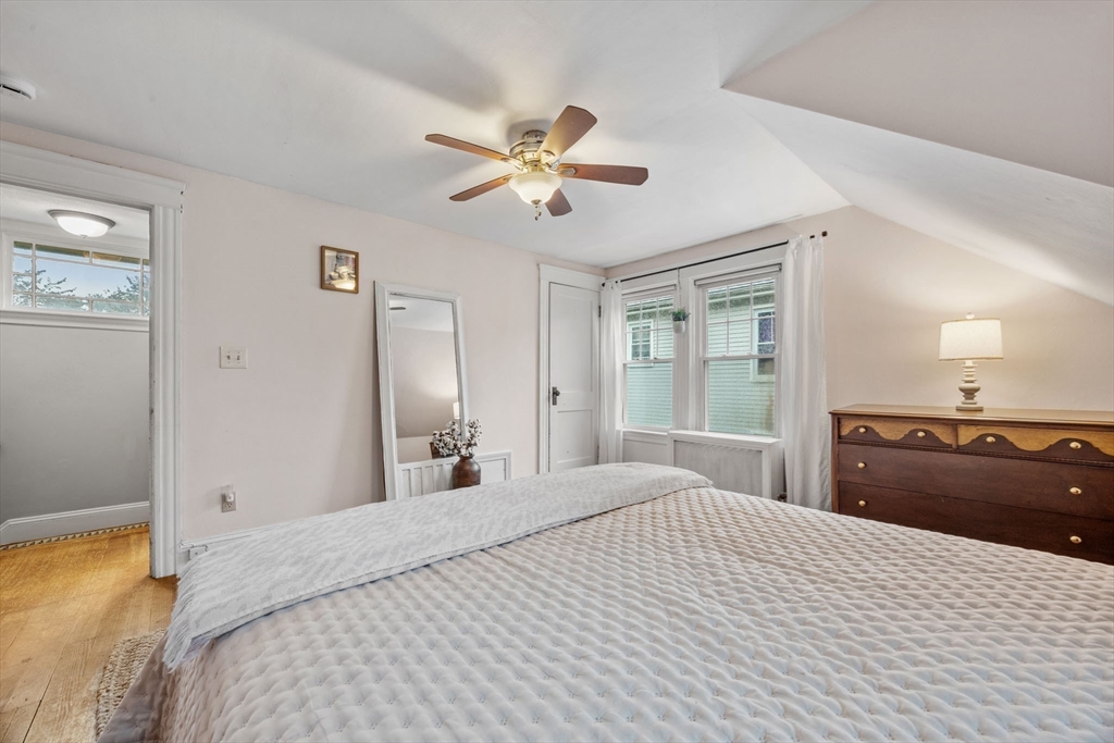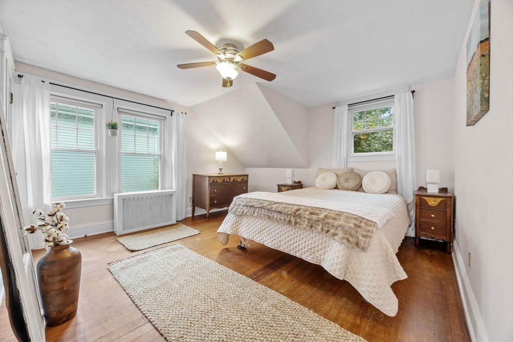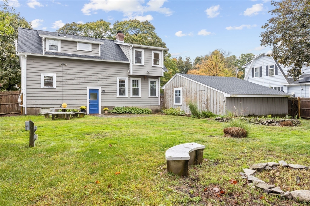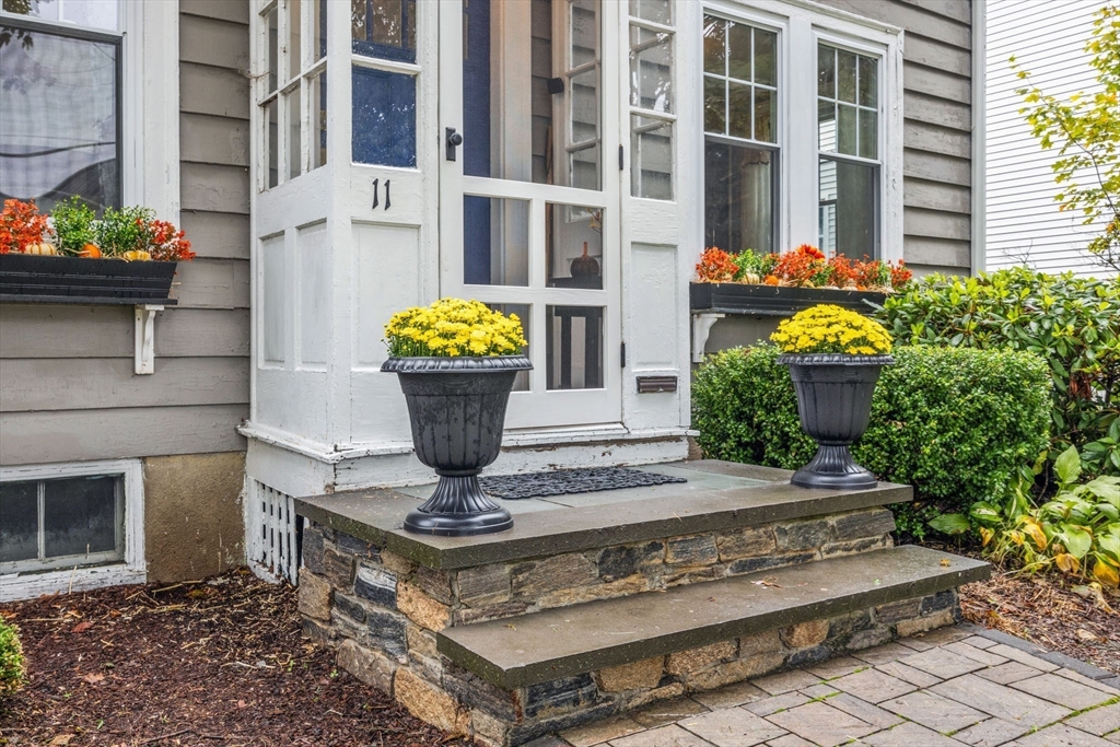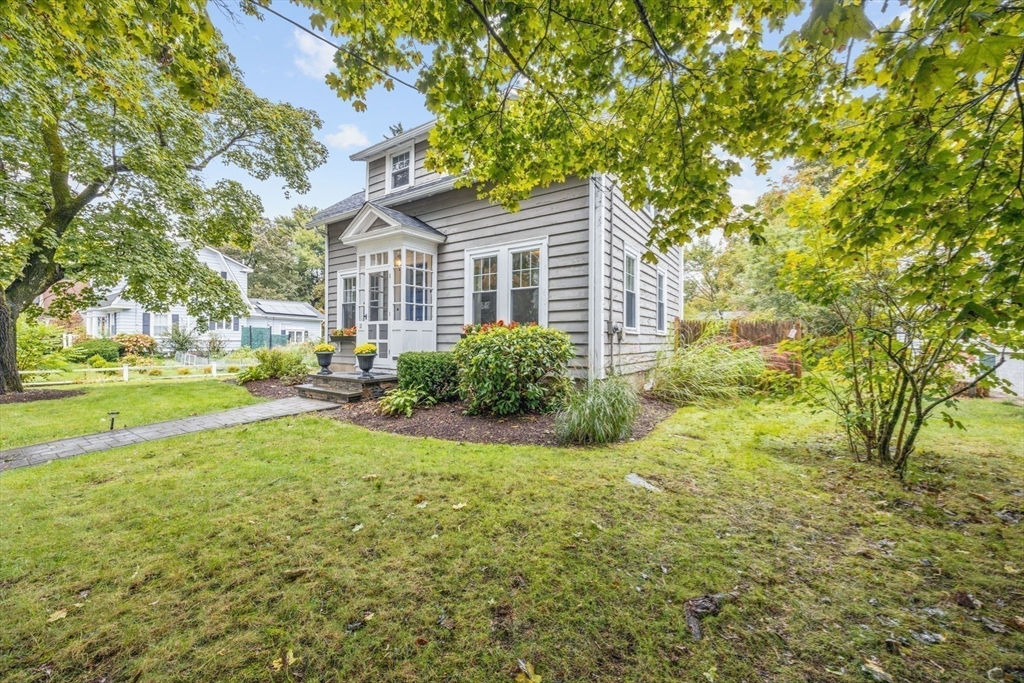 Desirable "Mortgage Hill" tree lined neighborhood, where the sidewalks lead to the historic downtown. This is the best of the suburbs with city culture at your fingertips! This 3 bedroom home exudes character with delightful curb appeal and a great fenced-in backyard. Featuring; a charming entry, high ceilings, inviting fireplace and a sunroom filled with natural light. Sunroom makes a great office, den or playroom. Upstairs boasts 3 good sized bedrooms. The cathedral, front to back bedroom will impress. Private yard has patio, fire pit, mature plantings and plenty of space for pets, gatherings, relaxation & gardening. 2 car garage offers great storage & workspace. New; kitchen SSL appliances & floor, front steps, walkway, gutters & some paint/trim/fixtures/doors/windows. 2023 Roof. 2020 Water heater. 2017 Furnace. 13miles to Providence, 36miles to Bos & 5 min to 2 highways/train make this an ideal location! Bring exterior paint & refresh hardwood floors to make 11 Payson your own!