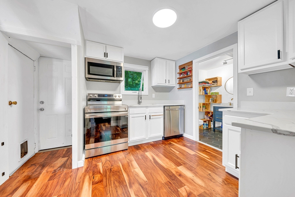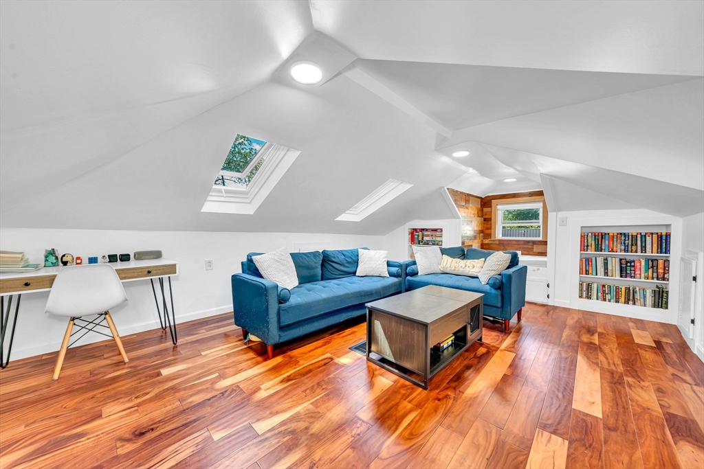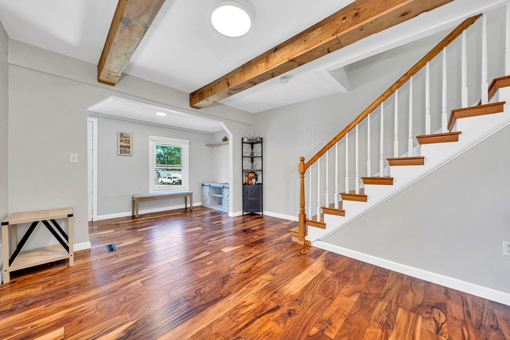 Welcome to this updated Bradford Bungalow. The first floor features 2 bedrooms with ample closets, a dining area, living room, and a refreshed kitchen and bath with laundry. Hardwood floors runs throughout. Upstairs offers versatility—currently a family room, office, and cozy nook. New gas furnace and central air (2020). Windows (2023). Outside includes a deck, shed, and parking for 5+. Convenient to RT 495, shops, dining, and just 15 minutes to NH.