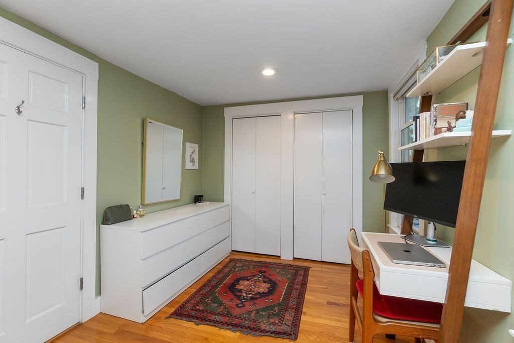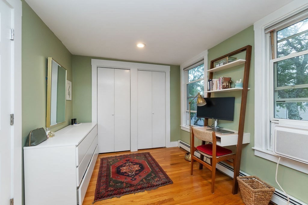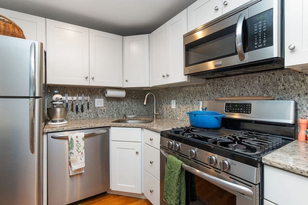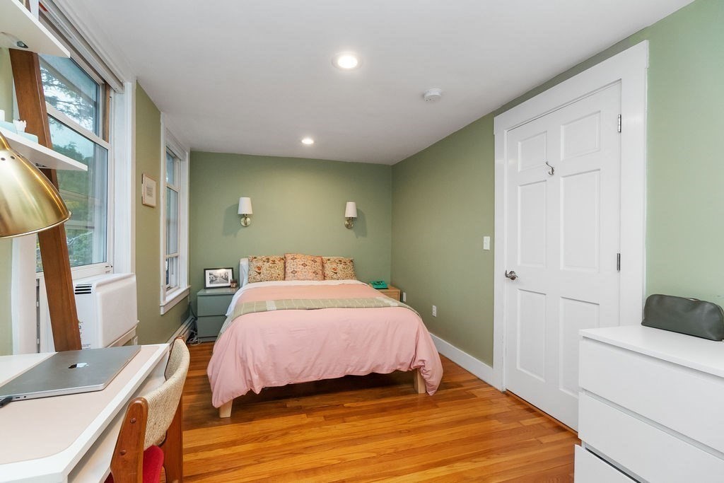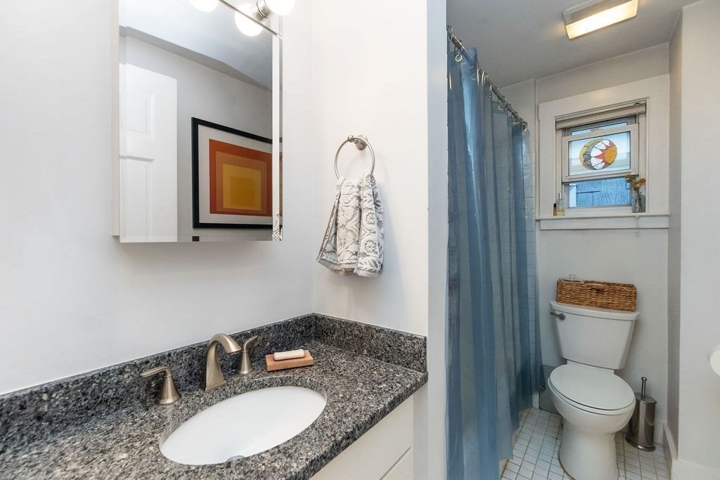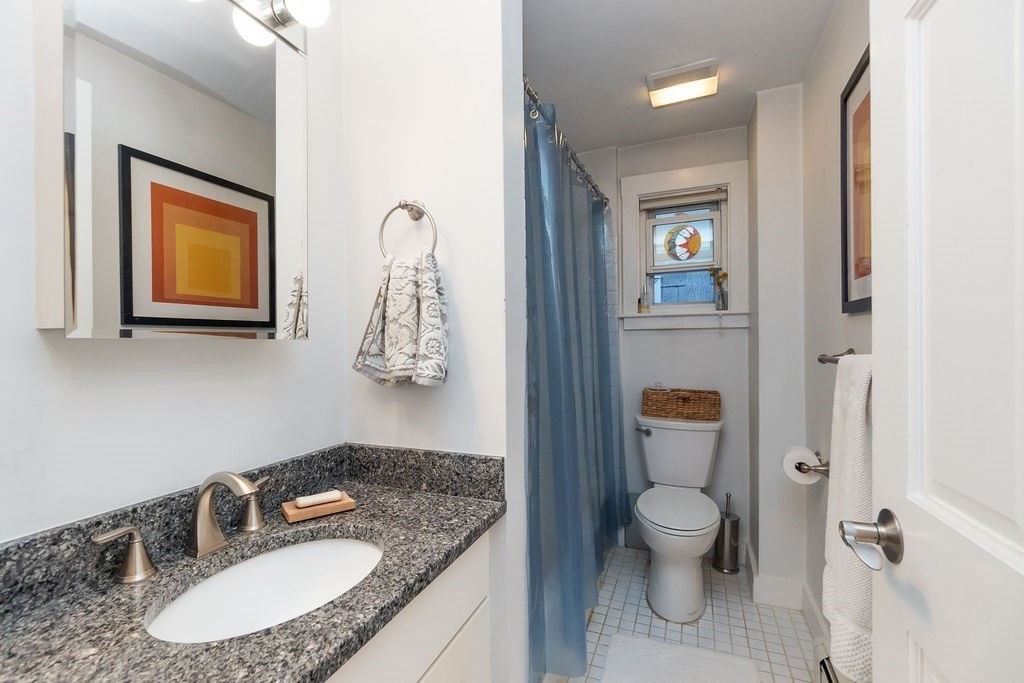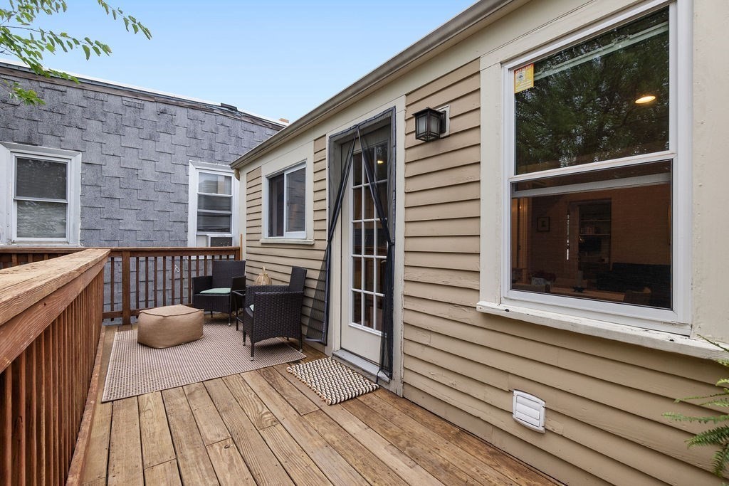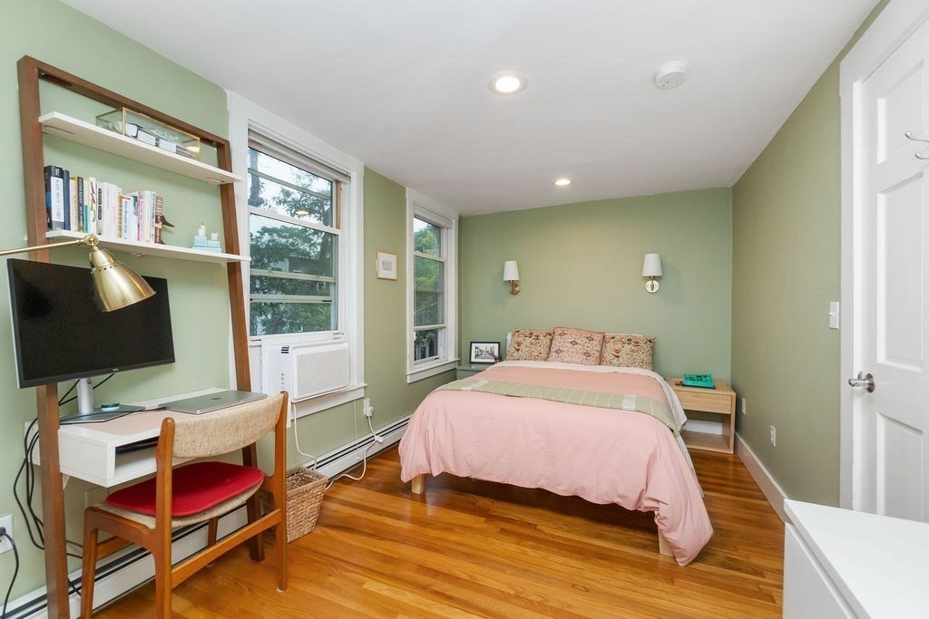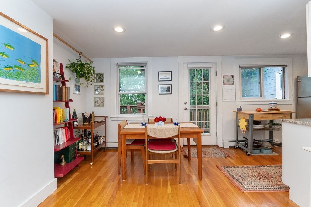 Welcome to pied-à-Trenton, a charming top-floor 1BR/1 BA, 558 SF home in historic Eagle Hill. Renovated in 2017, this light-filled unit boasts vaulted ceilings, hardwood floors, and an open living/dining layout. The alcove kitchen is outfitted with classic shaker cabinets, granite counters, stainless appliances, and gas cooking. The spacious front-facing bedroom accommodates a queen bed, desk, and features large closets. Enjoy a private 120 SF rear deck overlooking the shared yard with patio space, perfect for entertaining. Practical touches include deeded basement storage, common laundry, and a remarkably low $163/month condo fee. Nestled among the trees in one of East Boston’s most historic neighborhoods, this residence blends modern updates with timeless character, offering both comfort and convenience, but in the center of it all- just blocks to Airport, MBTA blue line for 15 minute commute downtown, pocket parks, and local eateries! Owner managed association that allows pets