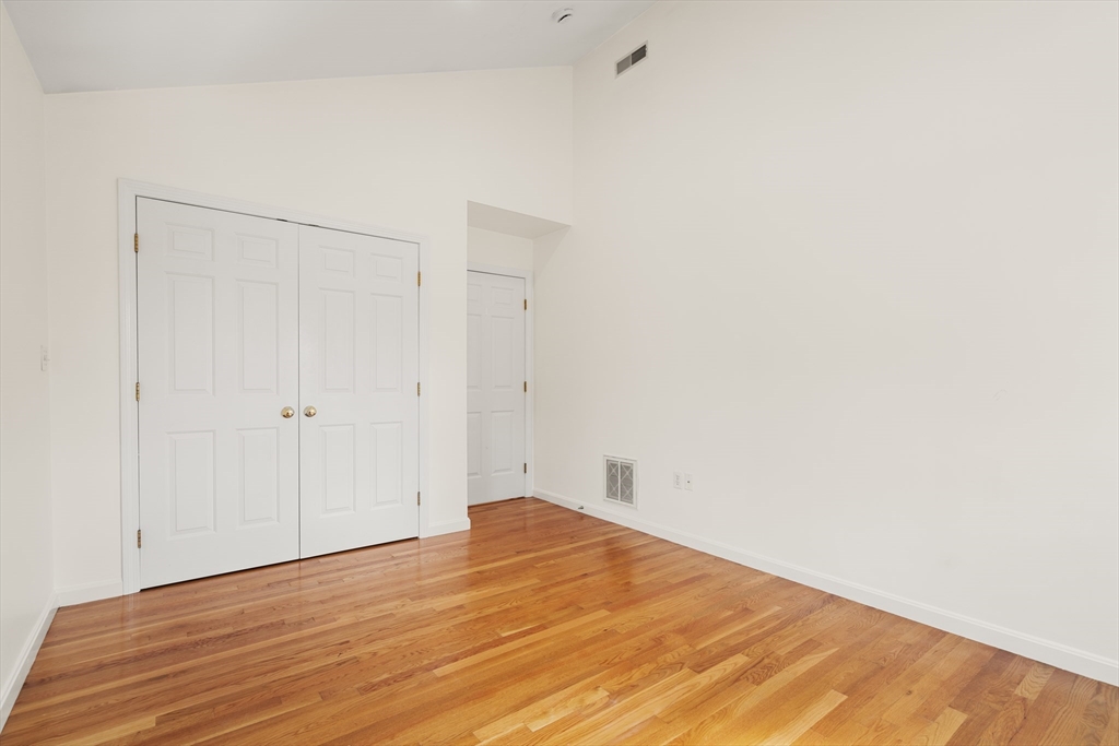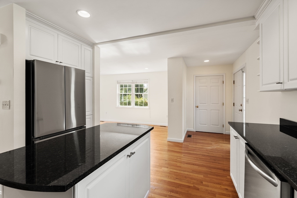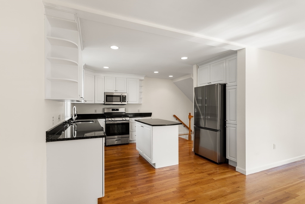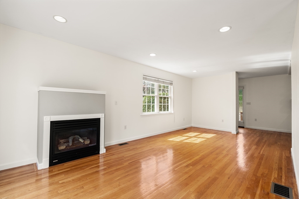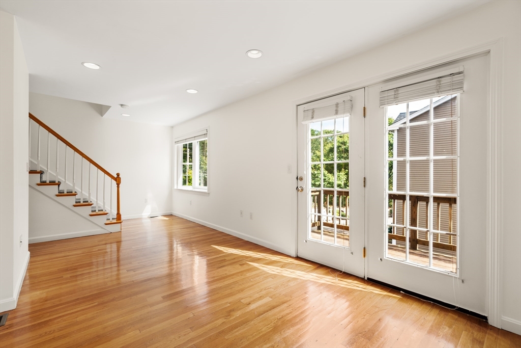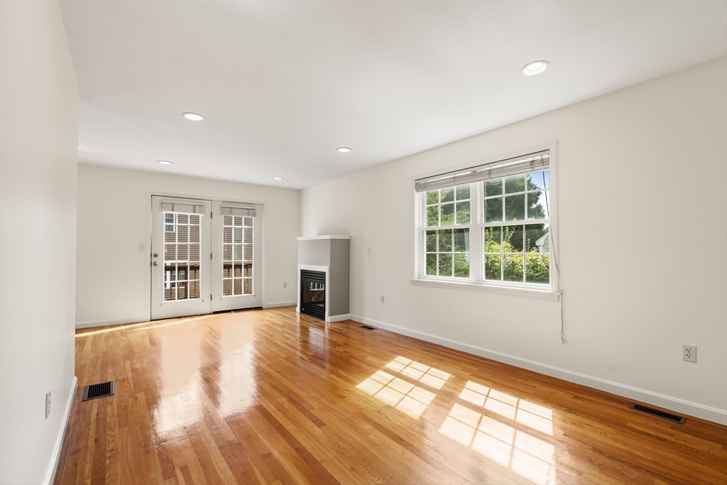 MOVE RIGHT INTO THIS PRISTINE END UNIT IN DESIRABLE TERRACES CONDOMINIUM COMPLEX! This 3 bedroom, 3.5 bath home with open floor plan, hardwood floors, central air conditioning and garage parking is convenient to 95, Cambridge and Boston! The main level features an updated kitchen with granite counter tops and stainless steel appliances, dining room, gas fireplace, living room with access to a private deck, and a powder room. The open floor plan allows for seamless flow between the living, dining, and kitchen areas, creating a comfortable and inviting atmosphere. The second level will impress with a spacious cathedral ceiling primary bedroom suite with palladium window, master bath, walk in closets, an additional spacious bedroom and bath, and in unit laundry. The lower level greets you with a welcoming foyer and garage access along with the first floor ensuite bedroom and full bath. The home is Pet friendly! (one dog or cat under 50 lbs).