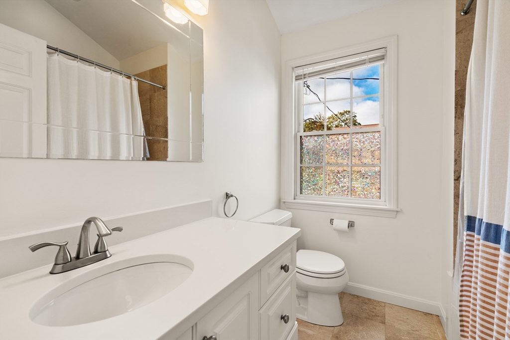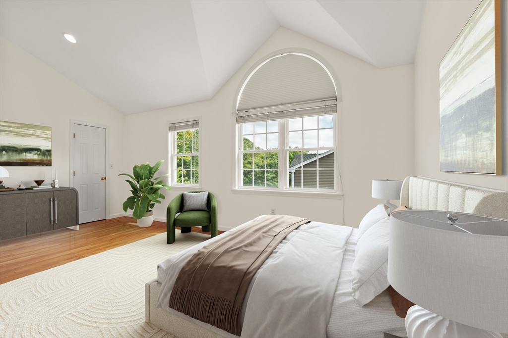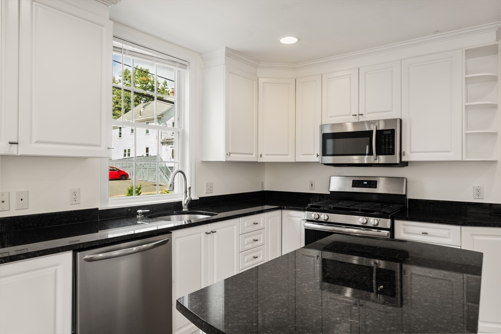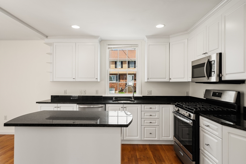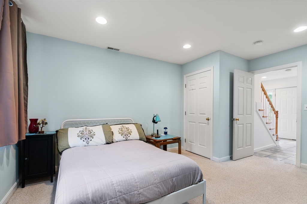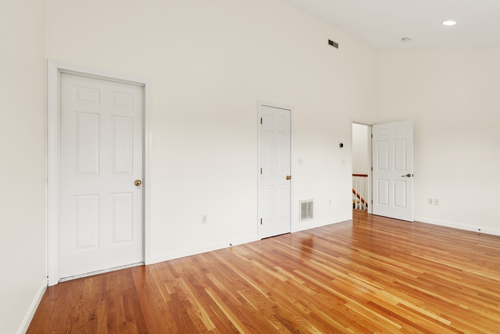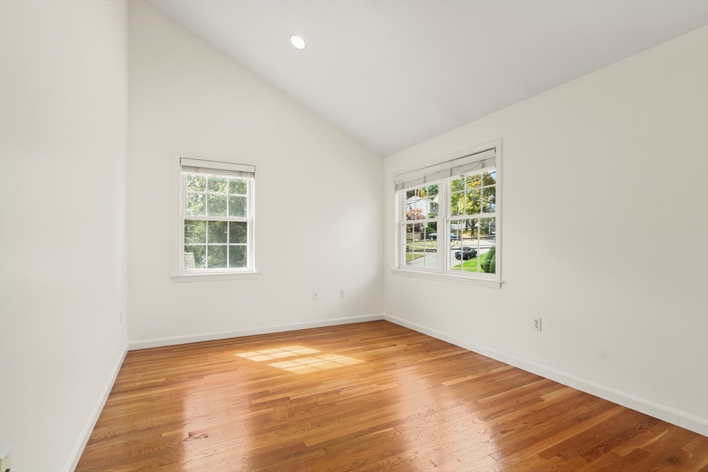 MOVE RIGHT INTO THIS PRISTINE END UNIT IN DESIRABLE TERRACES CONDOMINIUM COMPLEX! This 3 bedroom, 3.5 bath home with open floor plan, hardwood floors, central air conditioning and garage parking is convenient to 95, Cambridge and Boston! The main level features an updated kitchen with granite counter tops and stainless steel appliances, dining room, gas fireplace, living room with access to a private deck, and a powder room. The open floor plan allows for seamless flow between the living, dining, and kitchen areas, creating a comfortable and inviting atmosphere. The second level will impress with a spacious cathedral ceiling primary bedroom suite with palladium window, master bath, walk in closets, an additional spacious bedroom and bath, and in unit laundry. The lower level greets you with a welcoming foyer and garage access along with the first floor ensuite bedroom and full bath. The home is Pet friendly! (one dog or cat under 50 lbs).