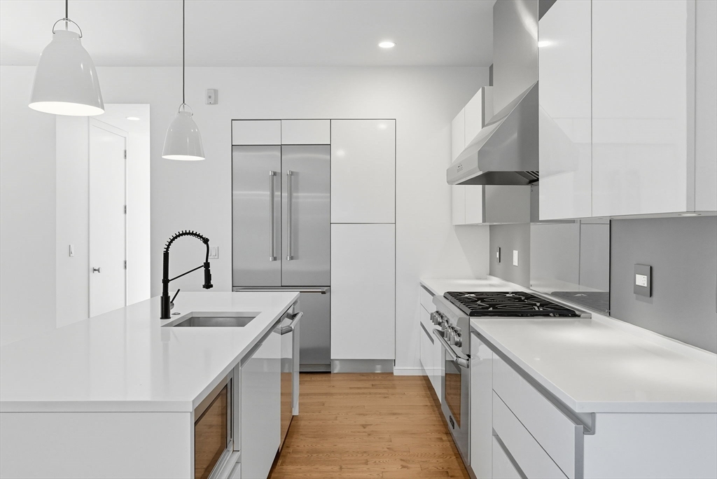 Great Opportunity for a buyer to obtain an incredible value for this oversized 3Bed 2.5Bath condo w/Deeded Garage Parking. Pet-Friendly, 2015 Construction, boutique elevator building with only nine units, located within close proximity to Seaport. Highly desirable location directly along the Harborwalk, two blocks to E Broadway, three blocks to Medal of Honor Park, & one mile to Carson Beach. Tucked on a residential street, moments away from all the action with easy access to 93 & Mass Pike. This condo impresses with a spacious floor plan that offers a great layout for entertaining between the large living room, sleek kitchen, dining area, & three-season room. The kitchen is equipped with Thermador appliances, has casual seating at the island for up to 4 stools, plus a formal dining area. All three bedrooms are expansive and offer custom closets, including a 400sf primary bedroom w/ensuite bath offering double vanity. W/D in unit, C/AC, towering ceilings, & loads of natural light!