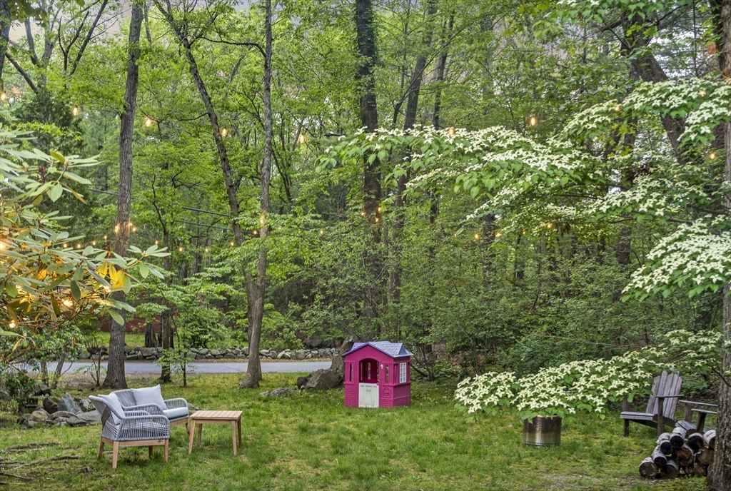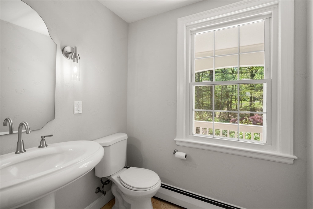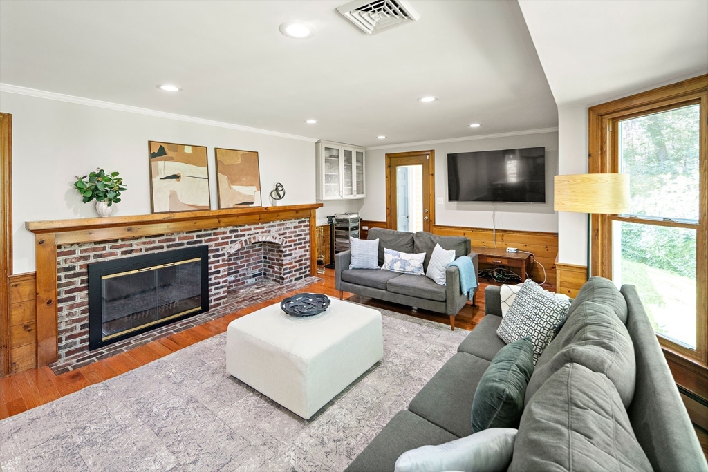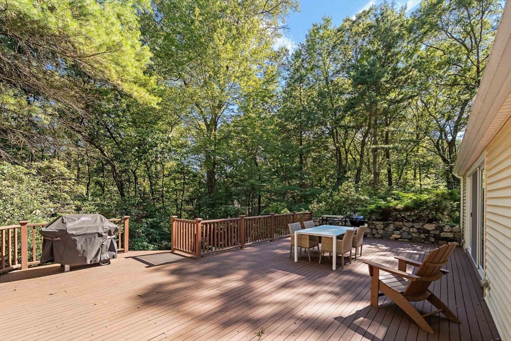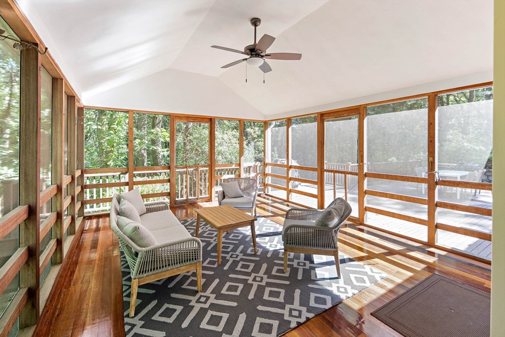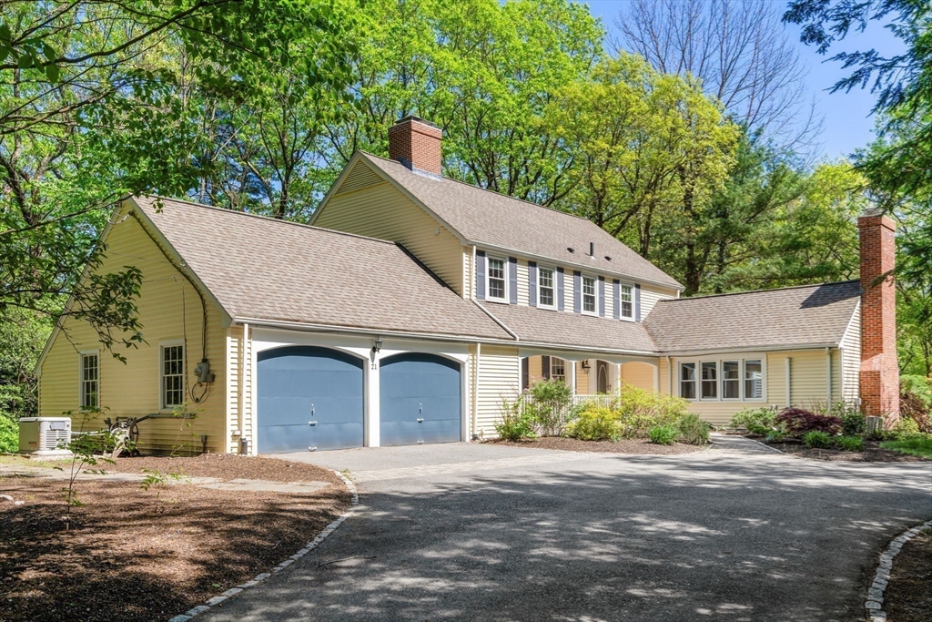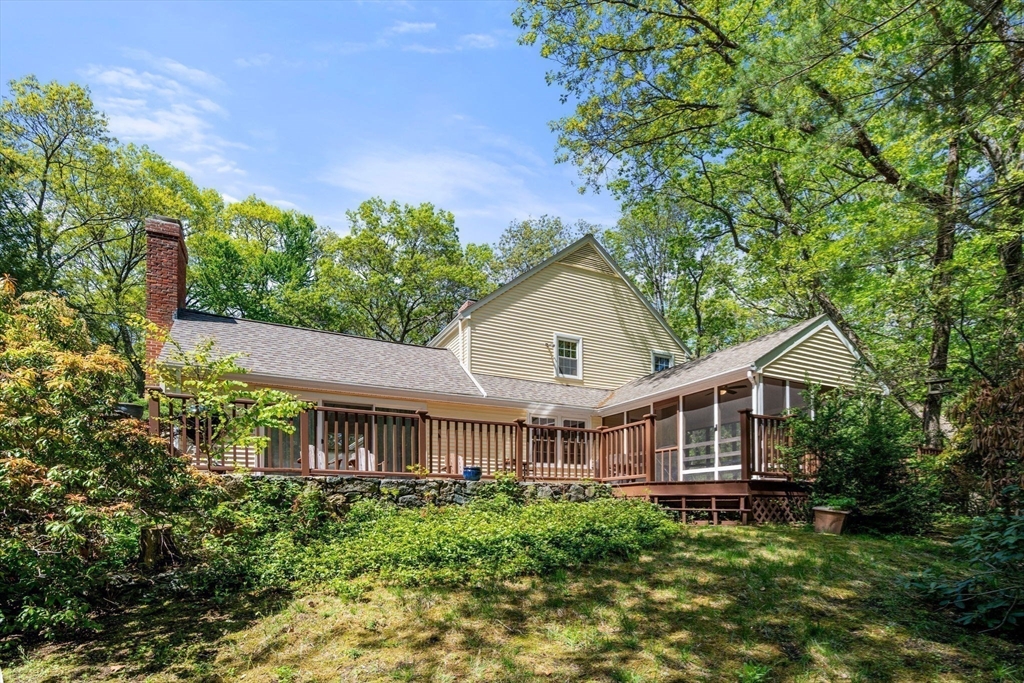 Welcome to the tree top oasis! Nestled in one of Wayland’s most desirable neighborhoods, just .2 miles away from the expansive walking trails in the Jericho Town Forest. This beautifully maintained Colonial with recent updates offers the perfect blend of peaceful living and unbeatable convenience. A classic Farmer’s Porch welcomes you into a thoughtfully designed home with a sun-drenched living room seamlessly flowing to an expansive deck and attached screened porch with cathedral ceilings and mahogany flooring. The updated center-island kitchen opens to a cozy family room with a fireplace. Upstairs are four bedrooms with hardwood floors, including a spacious main suite with two closets (one walk-in) and an updated bath. The finished lower level includes a large game room, additional versatile rooms, and a full bath. This home delivers comfort, function, and style in a gorgeous neighborhood setting in the top-rated Claypit Hill school district.