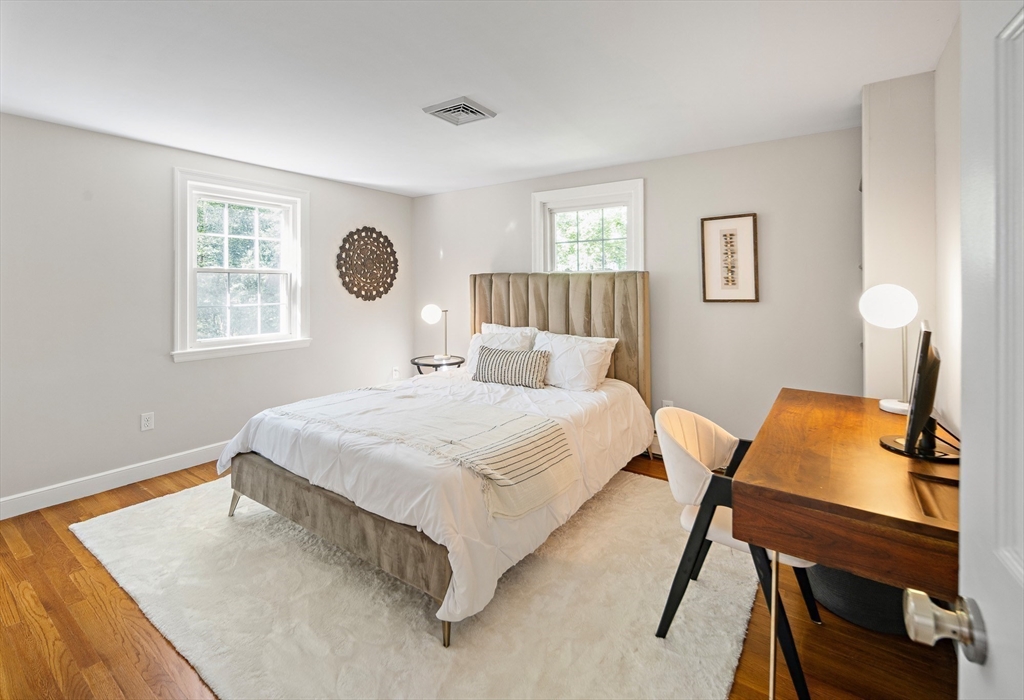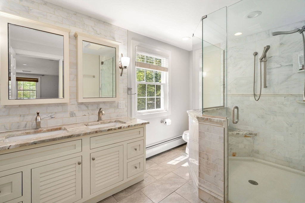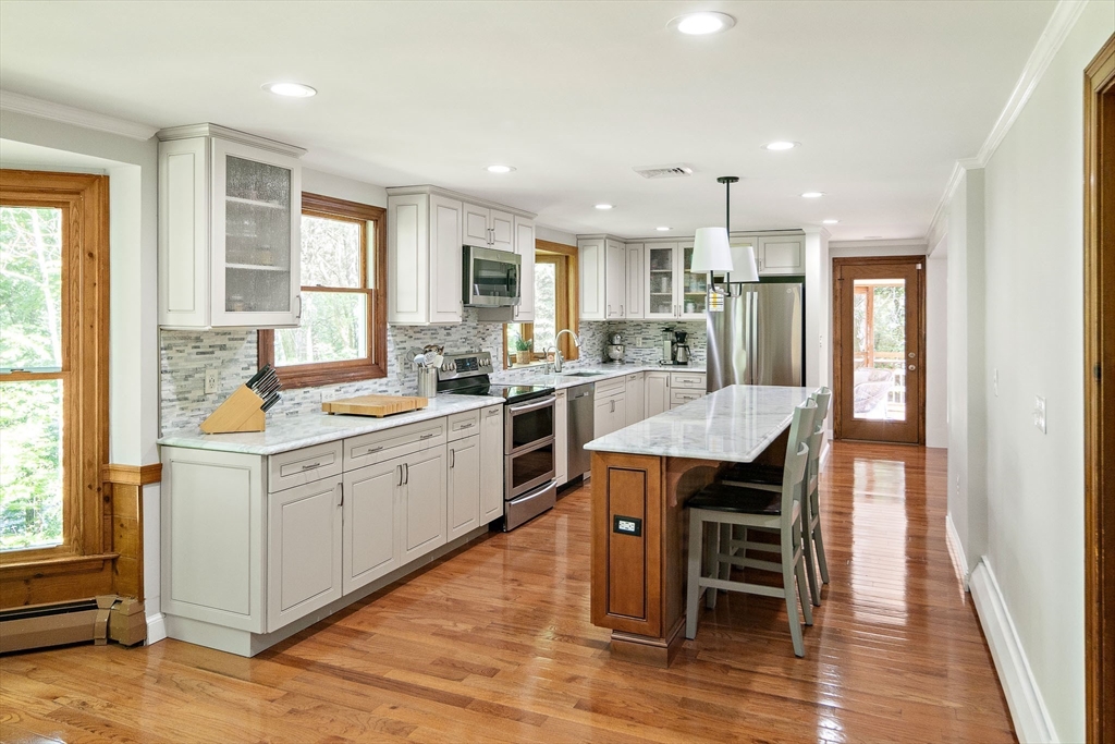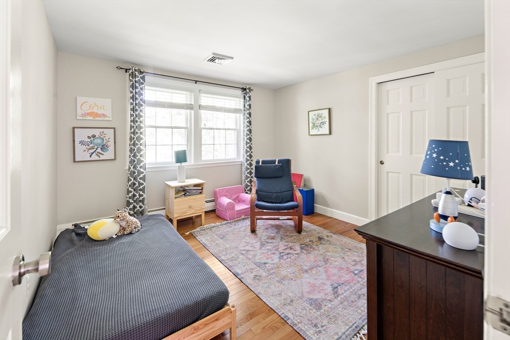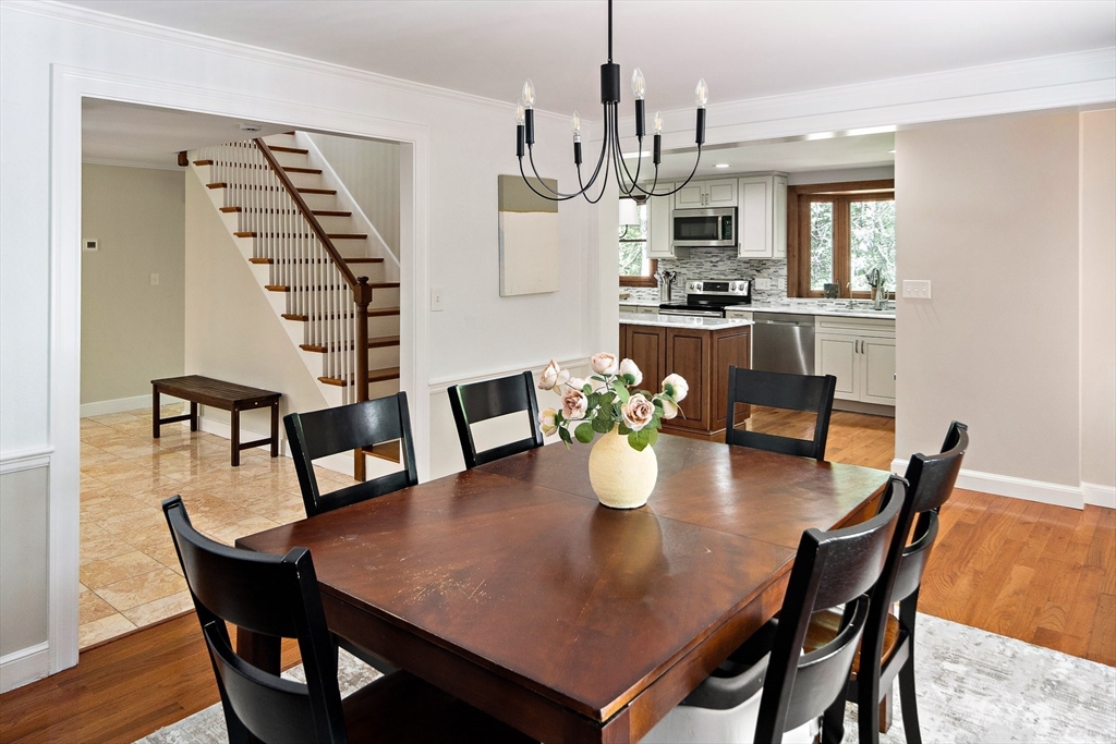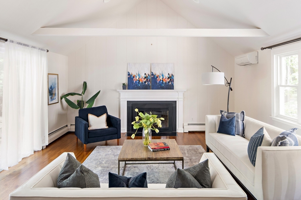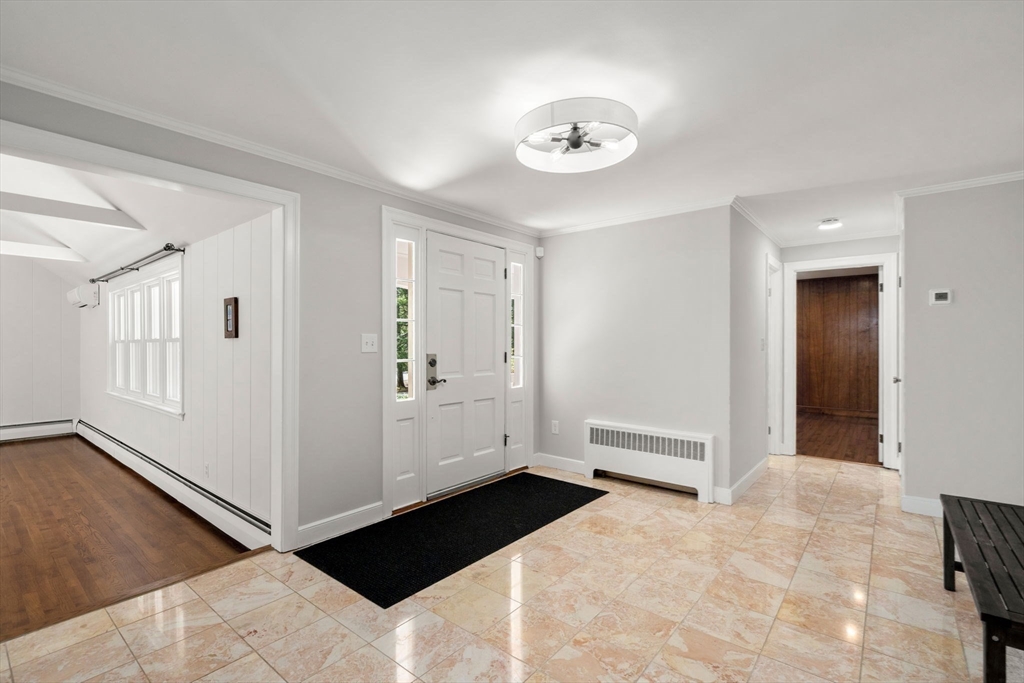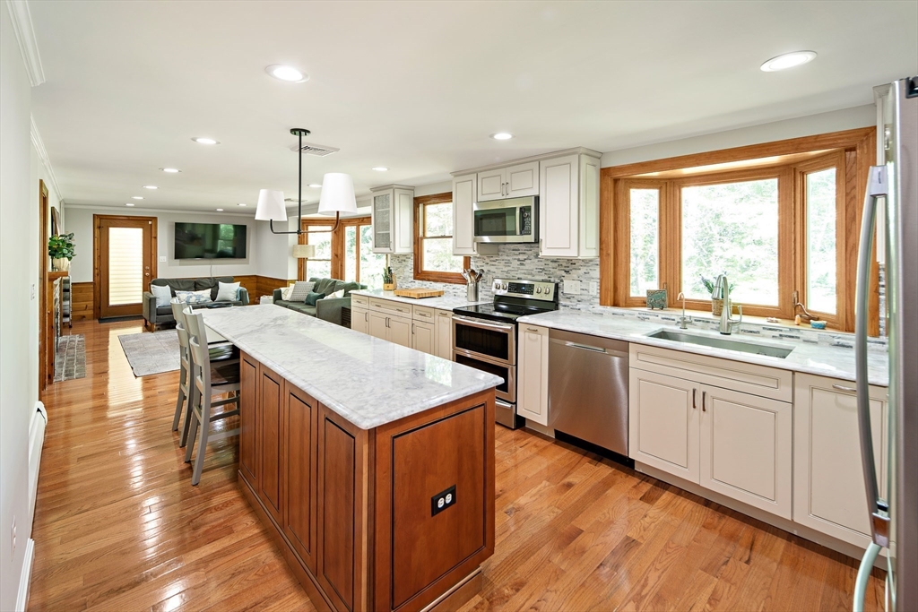 Welcome to the tree top oasis! Nestled in one of Wayland’s most desirable neighborhoods, just .2 miles away from the expansive walking trails in the Jericho Town Forest. This beautifully maintained Colonial with recent updates offers the perfect blend of peaceful living and unbeatable convenience. A classic Farmer’s Porch welcomes you into a thoughtfully designed home with a sun-drenched living room seamlessly flowing to an expansive deck and attached screened porch with cathedral ceilings and mahogany flooring. The updated center-island kitchen opens to a cozy family room with a fireplace. Upstairs are four bedrooms with hardwood floors, including a spacious main suite with two closets (one walk-in) and an updated bath. The finished lower level includes a large game room, additional versatile rooms, and a full bath. This home delivers comfort, function, and style in a gorgeous neighborhood setting in the top-rated Claypit Hill school district.