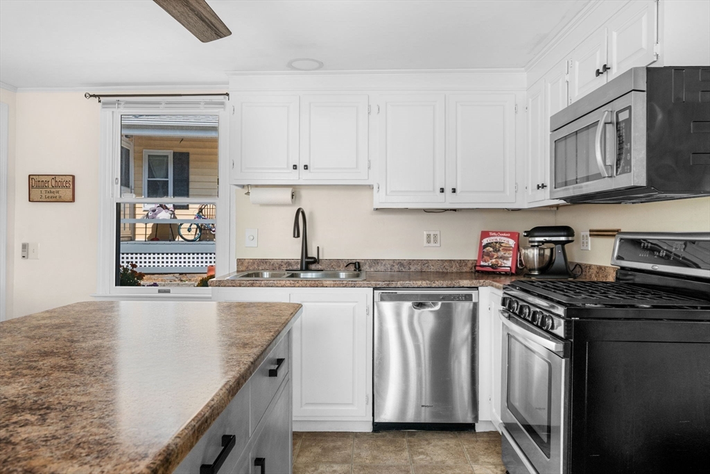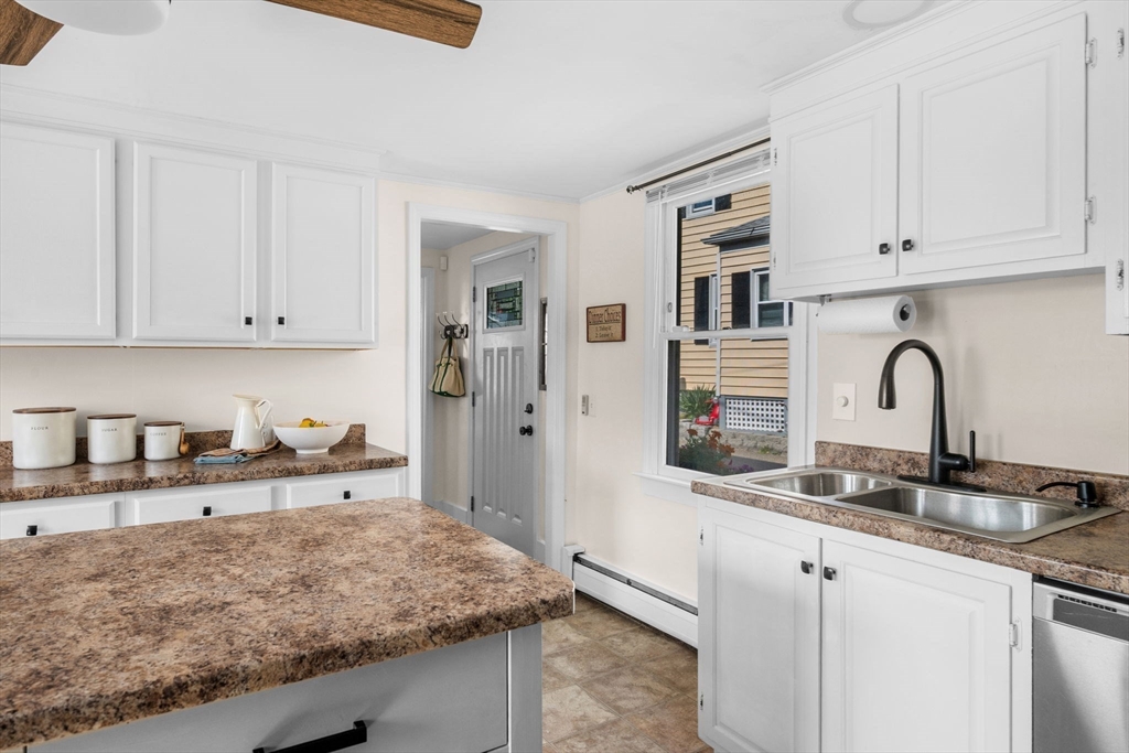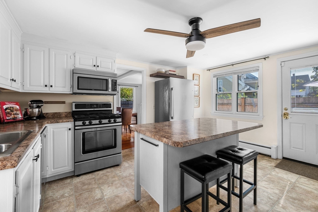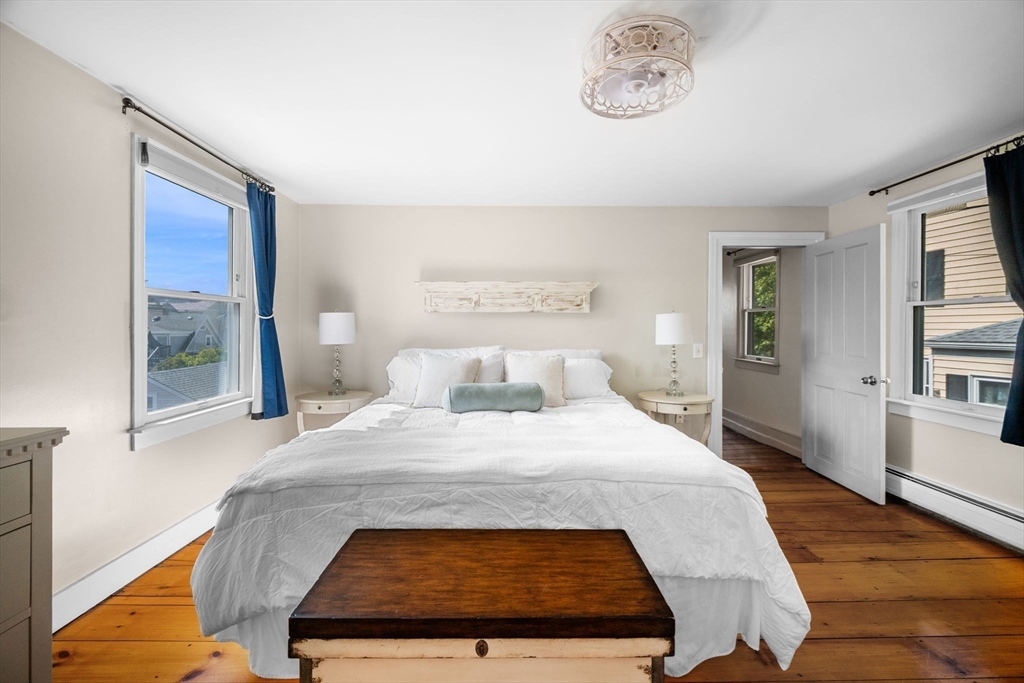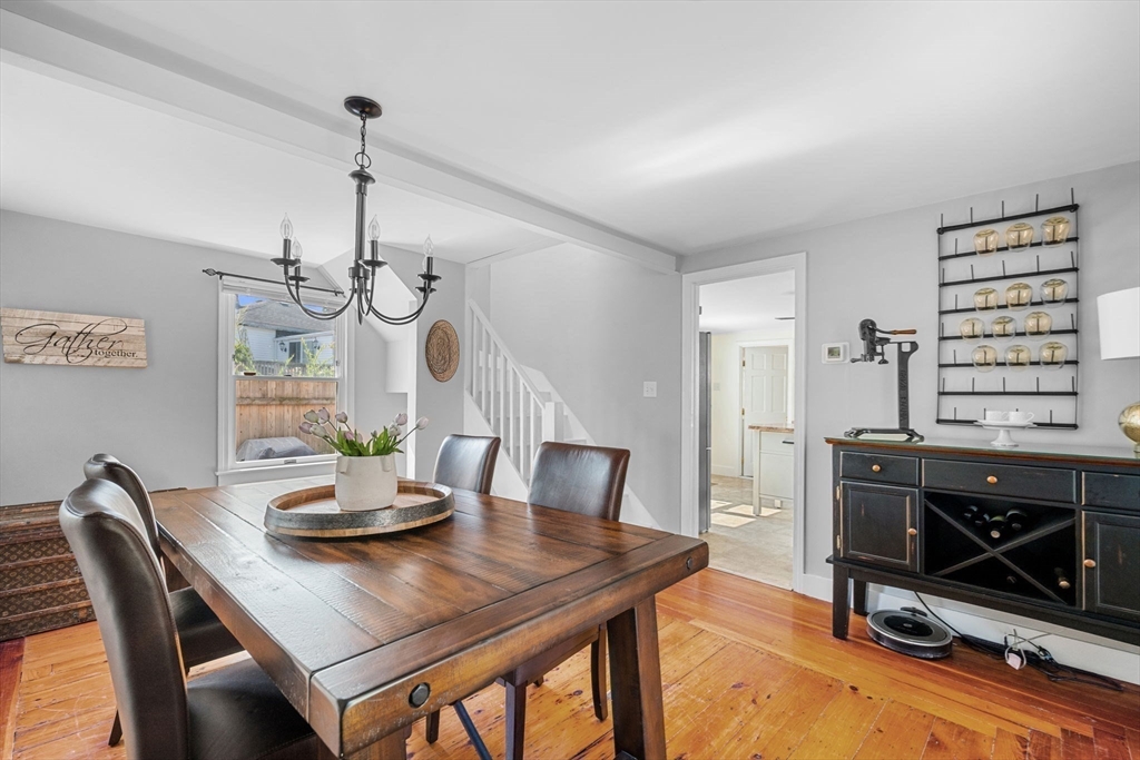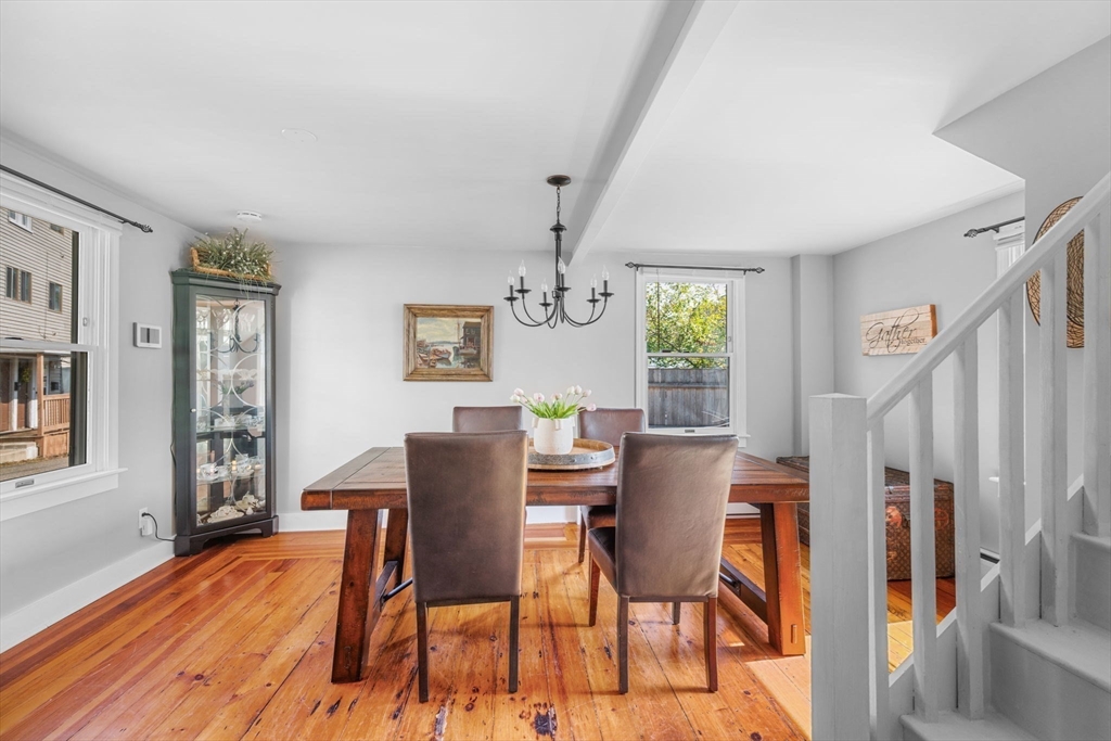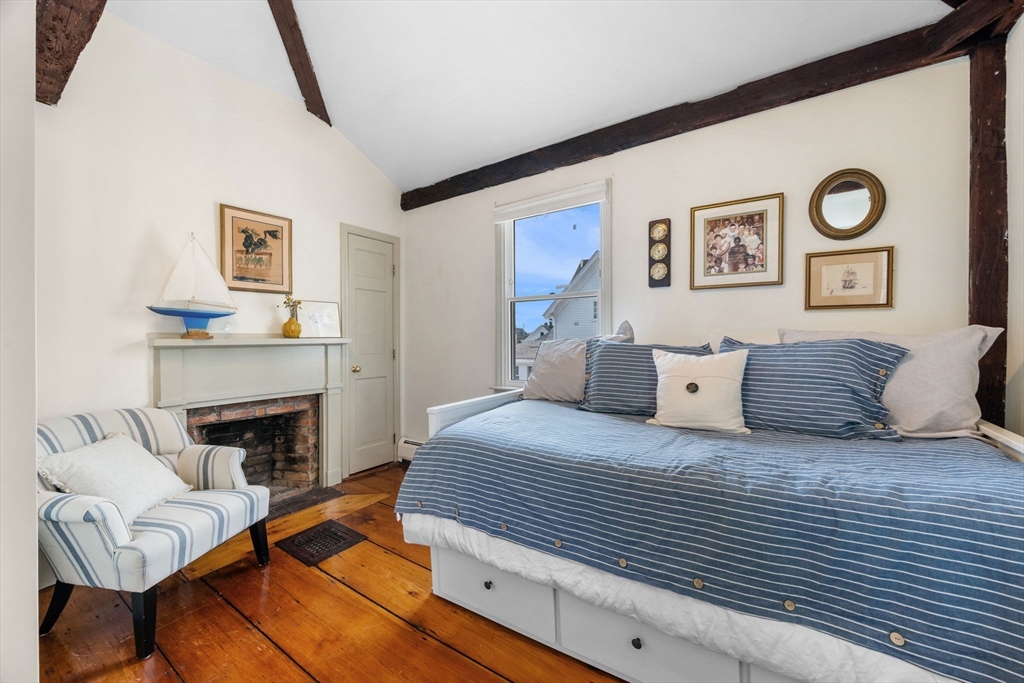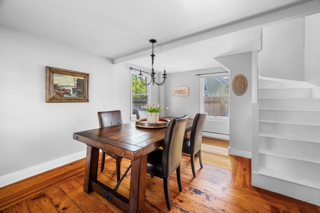 Nestled on a quiet street in downtown Gloucester, this meticulously cared-for home is a true gem. It seamlessly blends original period details like refinished pine floors, 2 fireplaces, & hand-hewn beams with modern aesthetics & many essential updates, including a new roof & boiler. At its heart, the sunlit kitchen with island serves as the perfect gathering spot, flowing effortlessly into a spacious dining room for shared meals, or out to the patio to enjoy the refreshing sea breeze. Cozy evenings await in the living room by the fireplace, while a first-floor 1/2 bath with ample laundry space adds practical functionality. The 2nd floor offers 3 generously sized bedrooms & a full bathroom, combining comfort & style. Dual driveways provide ample space for vehicles & adventurous cargo. This prime location ensures easy access to the Commuter Rail, downtown dining and shopping, as well as Good Harbor, Stage Fort, & Route 128, making it an ideal choice for those seeking charm & convenience.