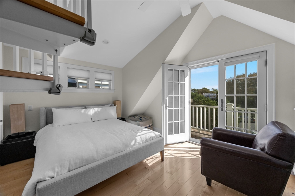 Discover modern elegance in this four-story end unit at Herring Cove Village, one of Provincetown’s most sought-after communities. Built by Cape Associates, this home offers 1,477 sq. ft. of living space and five private outdoor areas. Each of the two bedrooms occupies its own level with spa-like baths and generous storage. The main floor features a chef’s kitchen with granite counters and stainless-steel appliances, a dining area, half bath, and a dramatic great room with a gas fireplace, soaring ceiling, and wall of windows overlooking conservation land. Upstairs, a loft with vaulted ceiling, full bath, and private deck offers flexible use, while a spiral staircase leads to a cupola and roof deck with panoramic harbor, monument, and marsh views. Outdoor living includes multiple decks, a covered porch, and an enclosed outdoor shower. With two parking spaces, central air, laundry, and pet-friendly ownership, this home is as versatile as it is inviting. Rentals permitted.