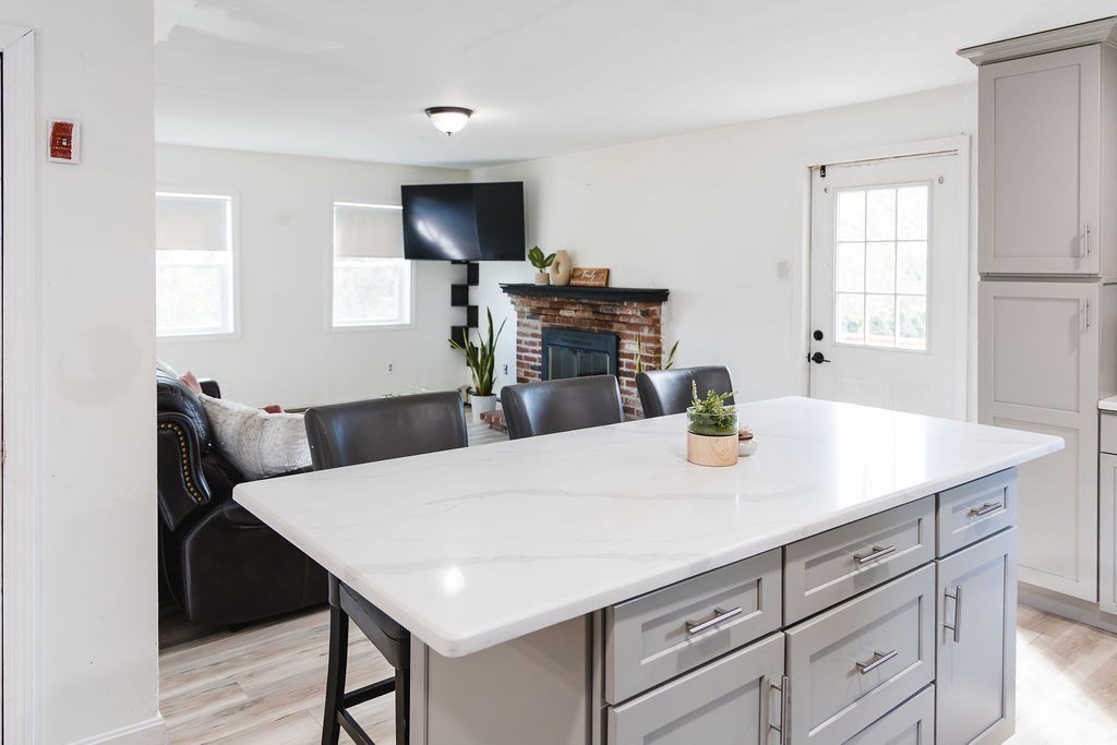 Priced below appraised value! Welcome to 41 Hill Street, this charming cape on over 1/2 acre tucked back from the road. The open concept living room is adorned w/ a wood-burning fireplace and cozy ambiance that flows seamlessly to your newly renovated kitchen featuring a sparkling oversized island, upgraded stainless appliances and ample counter space. Off the main living space there is a bonus private room great at an office, playroom or guestroom. The second level greets you with a spacious front-to-back primary bedroom, full bath and two additional bedrooms. Entertain or unwind on the back deck overlooking the tree-lined yard, perfect for enjoying your morning coffee or hosting summer barbecues. Located just minutes away from Sholan Farm, indulge in seasonal events & outdoor activities. Upgraded Buderus furnace, water heater, windows, roof and siding were all replaced in 2023!