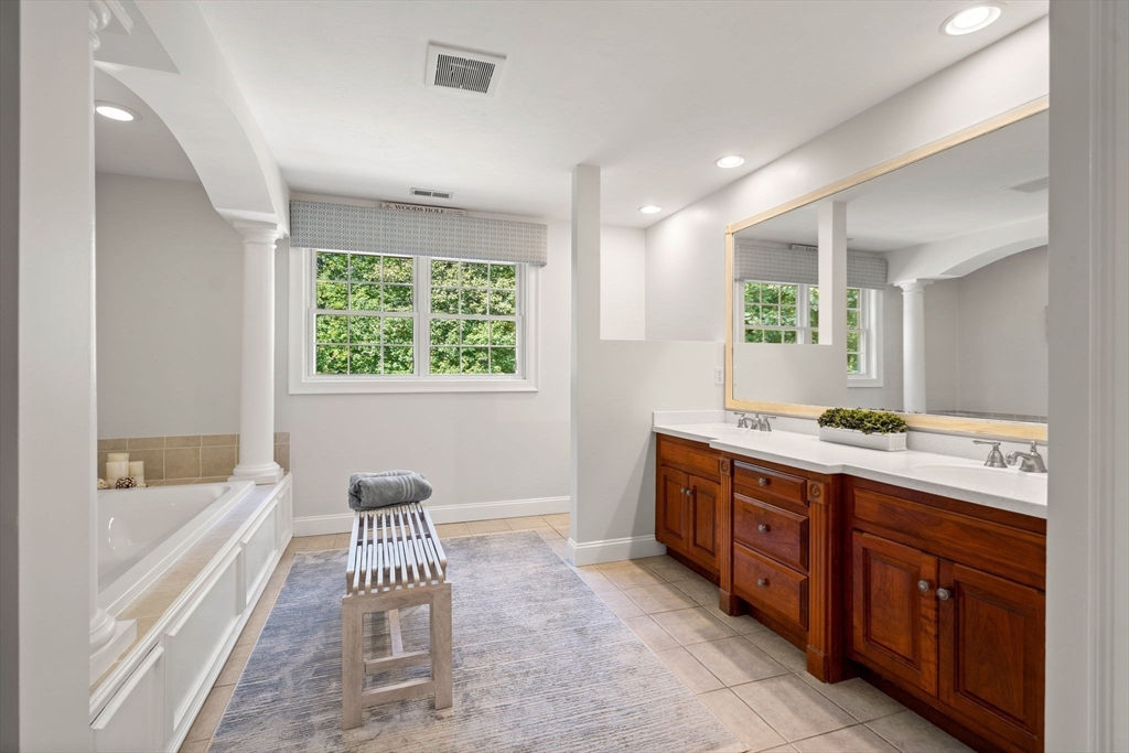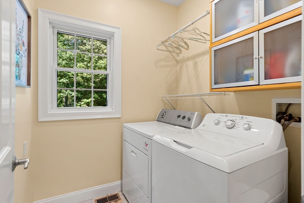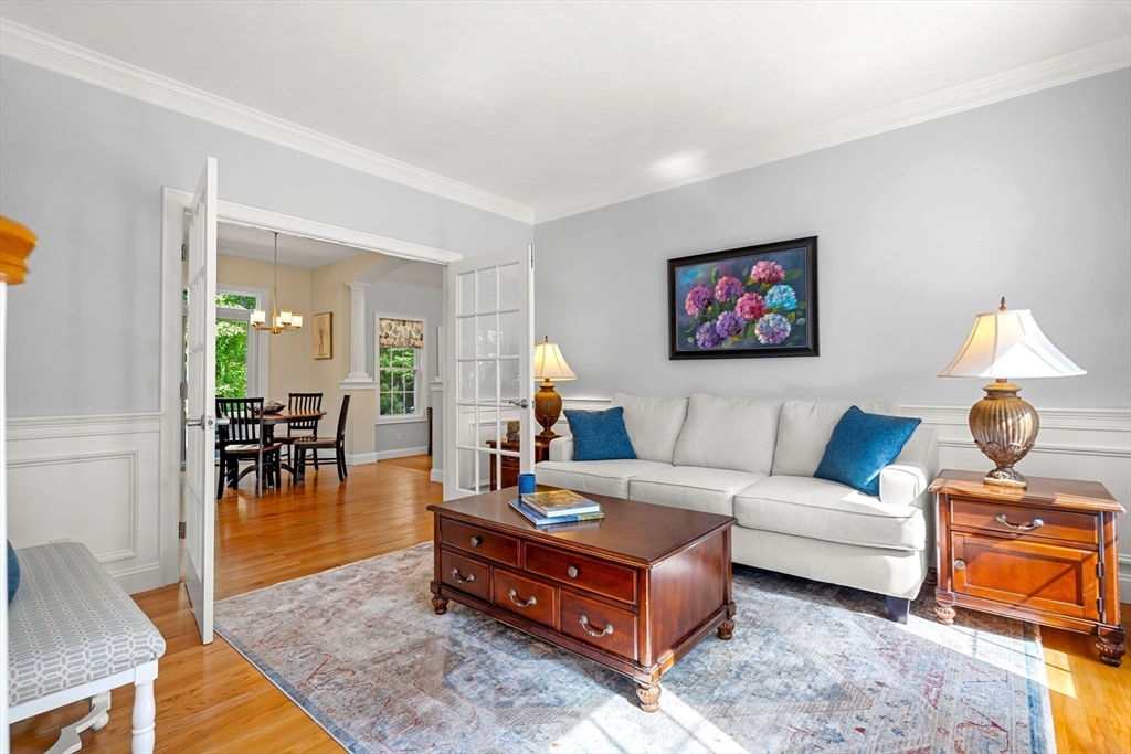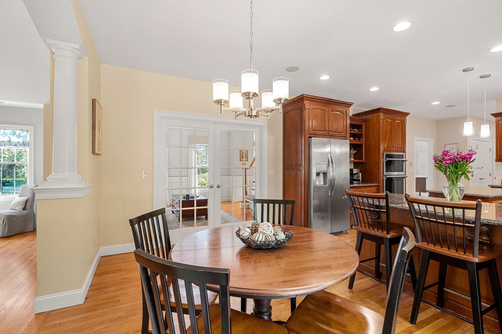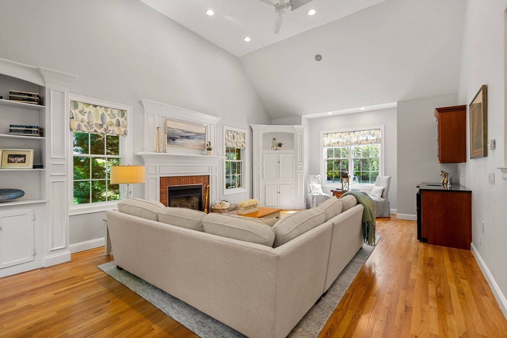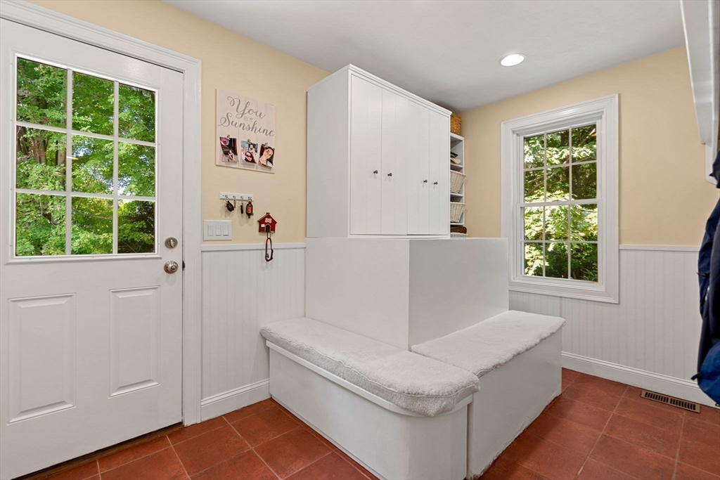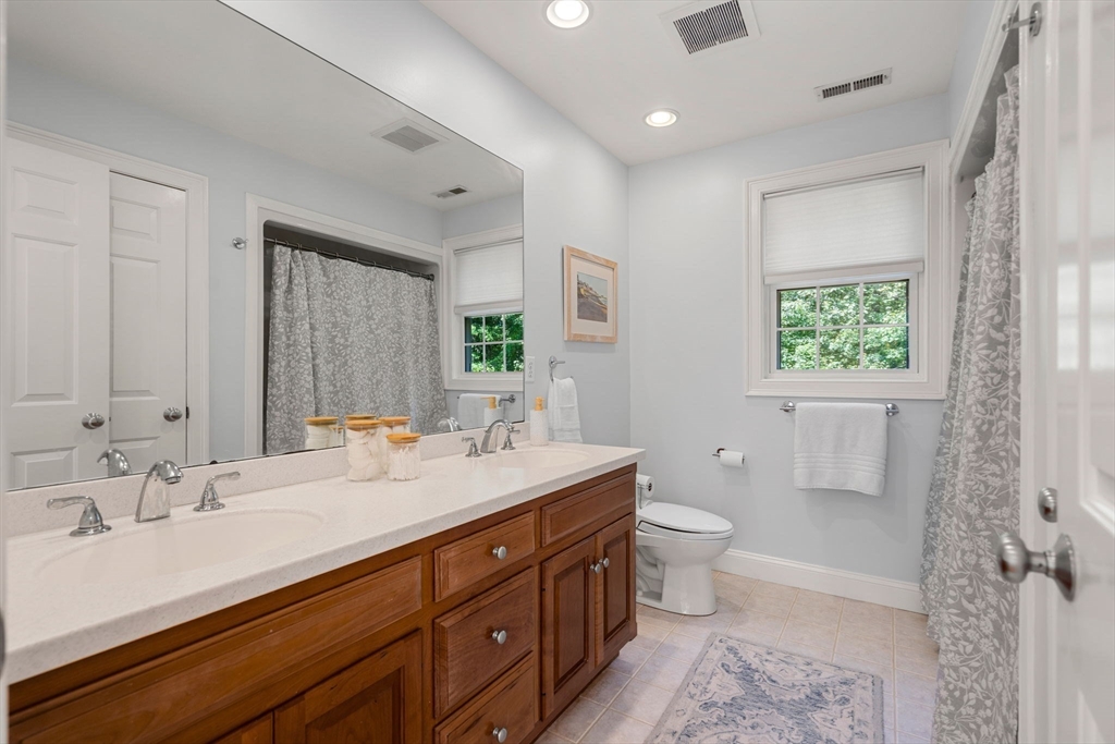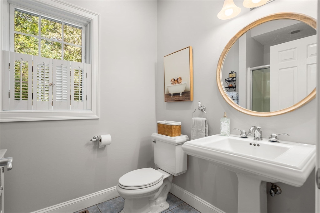 Located in a sought-after neighborhood, this custom-built home offers charm, privacy, and convenience to shopping, dining, and major routes. The grand two-story foyer leads to a formal living room and a sunlit kitchen with hardwood floors, granite counters, and custom cabinetry. Sliding doors open to a mahogany deck and patio with a built-in fireplace—perfect for outdoor entertaining. The vaulted family room features a fireplace and wet bar. The main level also includes a full bath, laundry, mudroom, and a 5th bedroom or office. Upstairs, the spacious primary suite includes a luxurious en suite bath and walk-in closet. Three additional bedrooms share a full bath. Oversized windows fill the home with natural light. The full unfinished basement offers expansion potential. Enjoy peace of mind with a one-year "everything under the roof" warranty included.