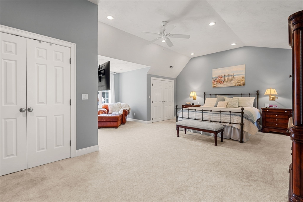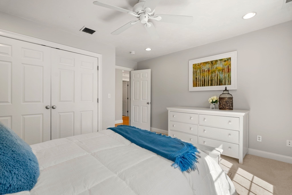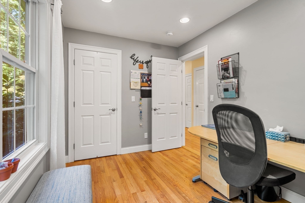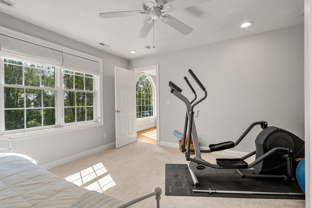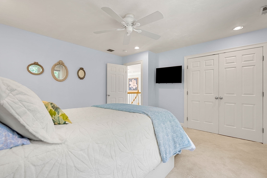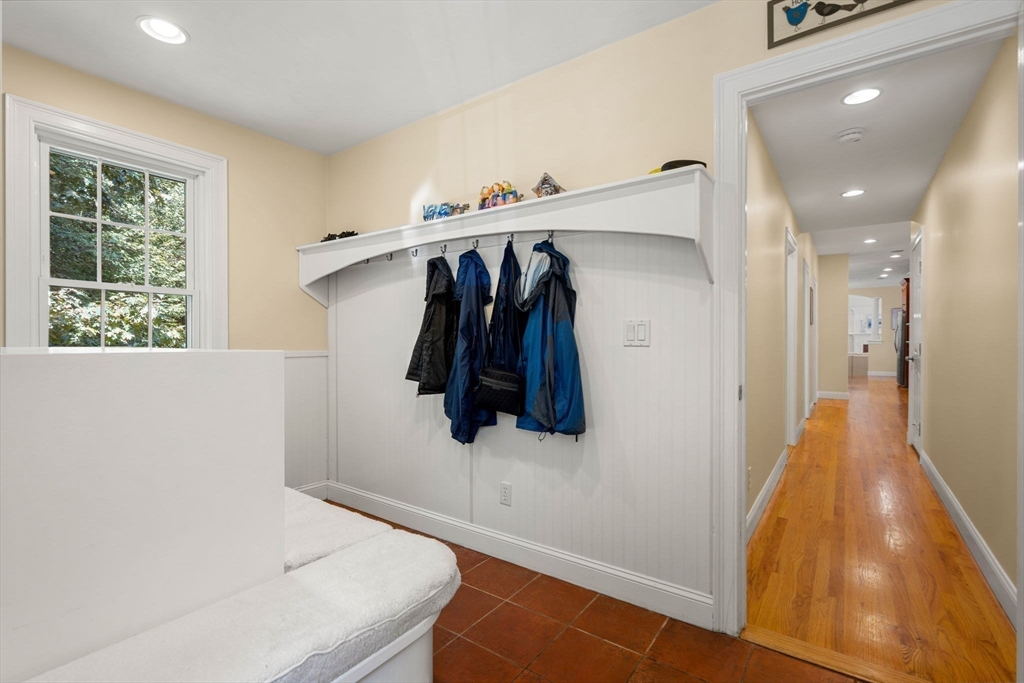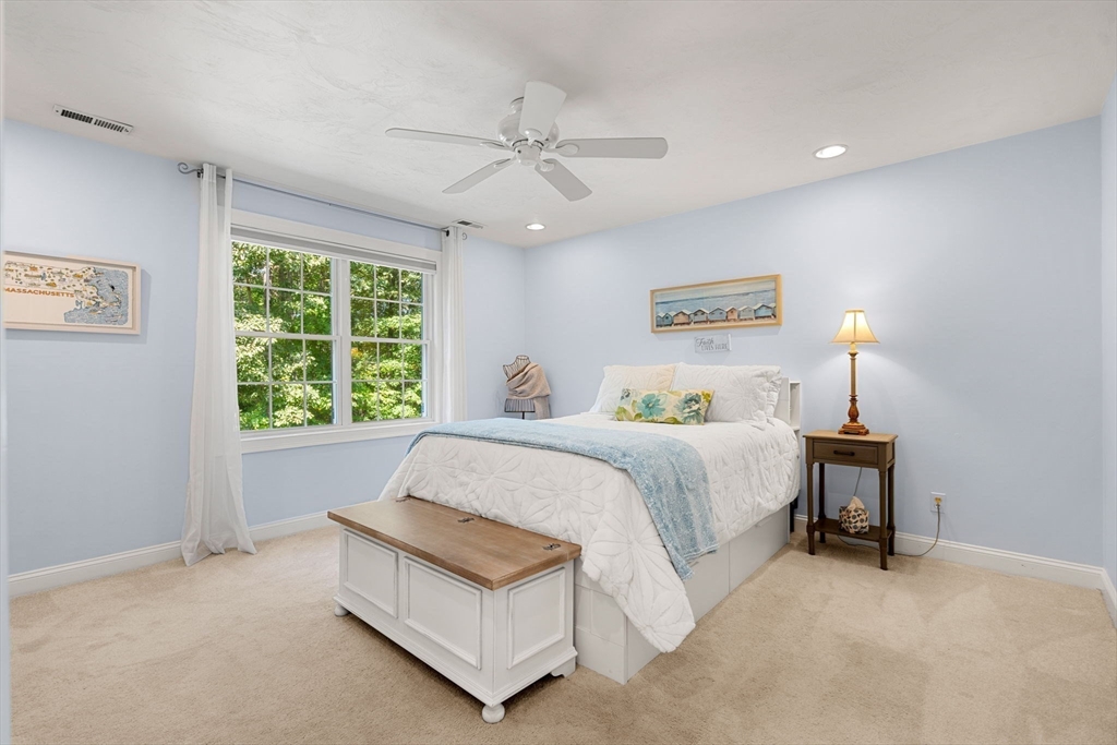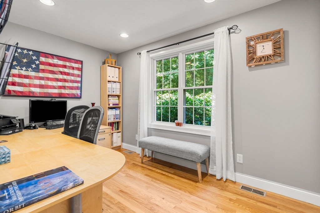 Located in a sought-after neighborhood, this custom-built home offers charm, privacy, and convenience to shopping, dining, and major routes. The grand two-story foyer leads to a formal living room and a sunlit kitchen with hardwood floors, granite counters, and custom cabinetry. Sliding doors open to a mahogany deck and patio with a built-in fireplace—perfect for outdoor entertaining. The vaulted family room features a fireplace and wet bar. The main level also includes a full bath, laundry, mudroom, and a 5th bedroom or office. Upstairs, the spacious primary suite includes a luxurious en suite bath and walk-in closet. Three additional bedrooms share a full bath. Oversized windows fill the home with natural light. The full unfinished basement offers expansion potential. Enjoy peace of mind with a one-year "everything under the roof" warranty included.