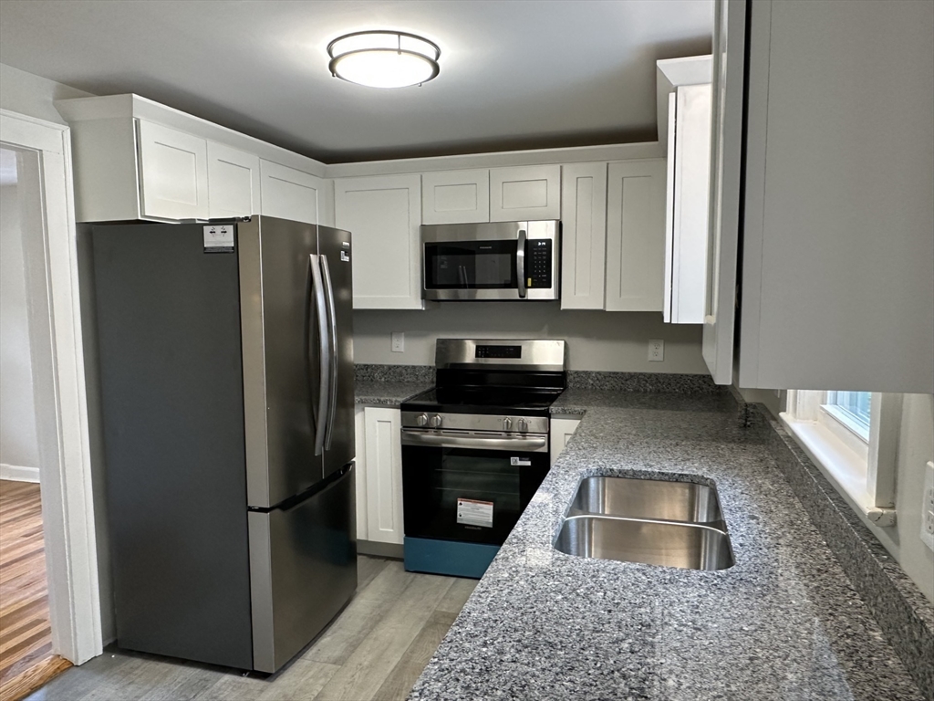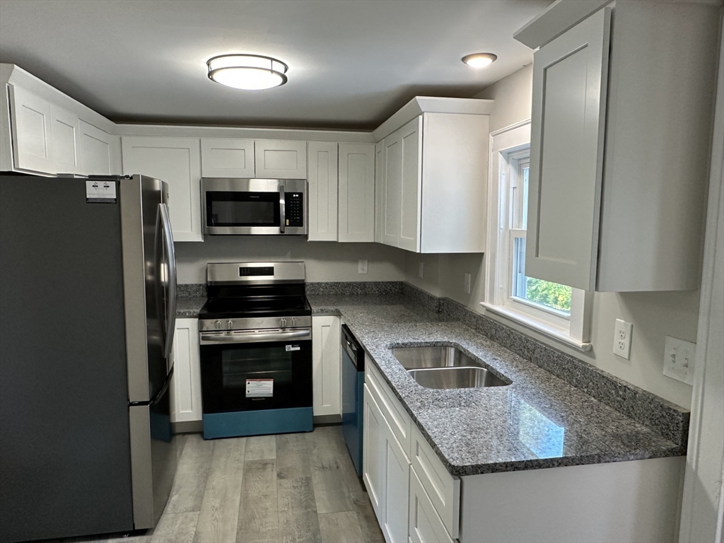 Amazing Opportunity to own this 3 Bedroom 1 Full Bath, 1 New half Bath Colonial set on over 1/4 Acre of Professionally Maintained Landscaping. Features include: A wide open floor plan, Brand New Kitchen with Granite Countertops and New SS Appliances, Formal Dining Room and a Fireplaced Living Room with a Ceiling Fan. There is a Massive 4 Season Enclosed Family Room with access to the Kitchen and Living Room. This room hosts the Oversized Newly Stained Deck overlooking the beautiful backyard!! There are Gleaming Hardwood Floors throughout. All New Windows and Updated Electrical. 1 Car Attached Heated Garage. Minutes from major routes including the MA Pike, Routes 290, 395, 146, 20, and 12!! BRING OFFERS!!