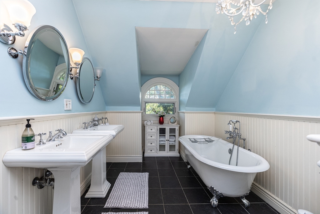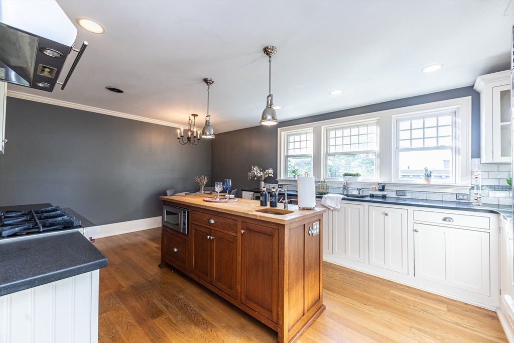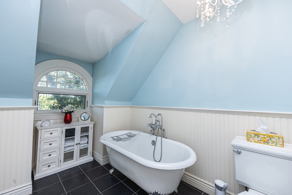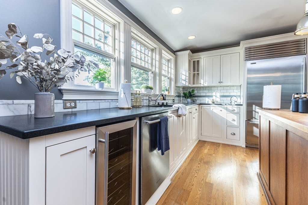 NEW! Entire Top Floor 3-Bed 1.5-Bath Newton Condo in Victorian-style 4-unit building. Step into a charming, sunny, and spacious living room with large vaulted ceilings, a fireplace, and custom window seating surrounded by 5 south-facing windows. The half bath is conveniently situated between the living area and the Breathtaking High-end Kitchen, which features: Sub-Zero refrigerator/freezer, 6-burner Wolf Gas Range, Custom-built Butcher-block Island with a *secondary* Copper Sink + plug-in outlets on the side, Dishwasher, Disposal, and even a Built-in Wine Chiller. Walk-in pantry + Private Porch complete the must-see Kitchen. 2 oversize bedrooms, 1 regular sized. Double-sink Luxury Bathroom with standing shower + soaking tub. Conveniently located in Hunnewell Hill, this condo has the perfect balance of immediate highway access while maintaining the suburban neighborhood feel. 2 off-street parking spots. Laundry closet with hook ups in-unit. Central Air, Surround Sound and much more!