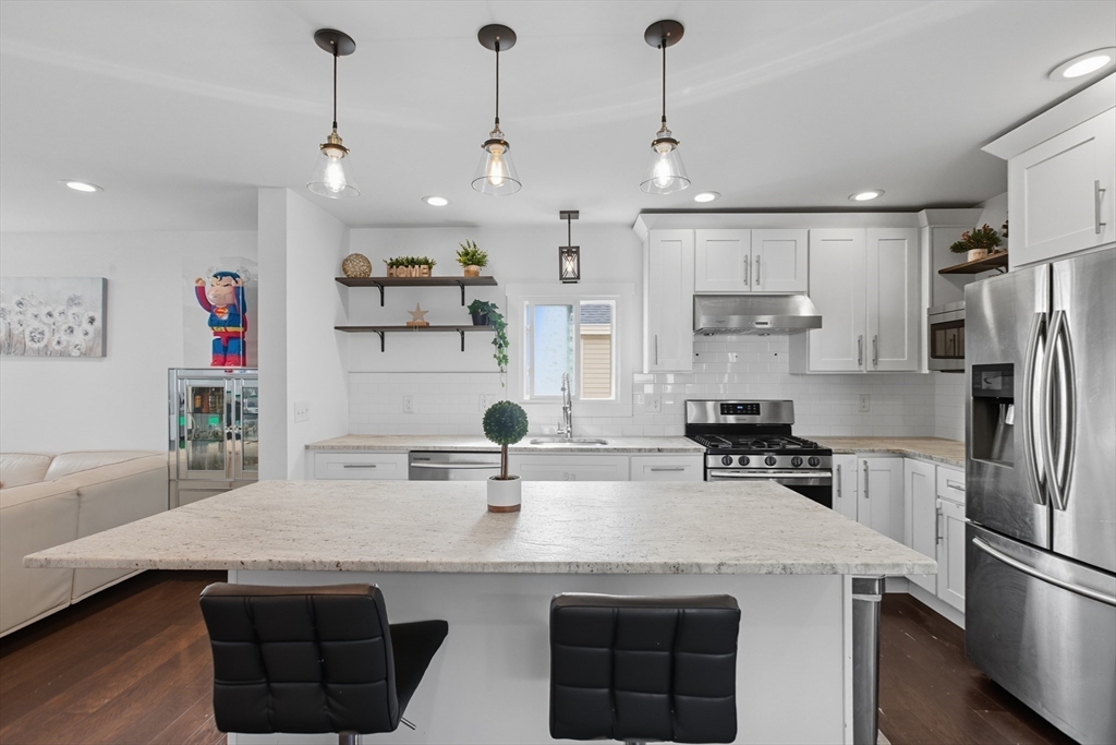 Welcome to 93 Wilson Ave, where modern updates and comfort meet an unbeatable Weymouth location. Gut renovated in 2018 with new roof, siding, electrical, and hot water tank, this home was further improved in 2020 with a new heating system, central A/C, and paved driveway. The sun-filled living room opens to a spacious, modern kitchen, while the primary suite offers a private bath with double vanity and a walk-in closet. The finished basement adds two flexible rooms for guests, office, or playroom. Outdoors, enjoy a deck and gazebo—perfect for family gatherings and summer entertaining. Commuters will appreciate the close proximity to the commuter rail, while Weymouth residents enjoy local beaches, parks, shopping, dining, and easy highway access. Don't miss this fantastic opportunity to own this house. First showing will be at the open house on Saturday 10/4 from 12pm to 2pm.