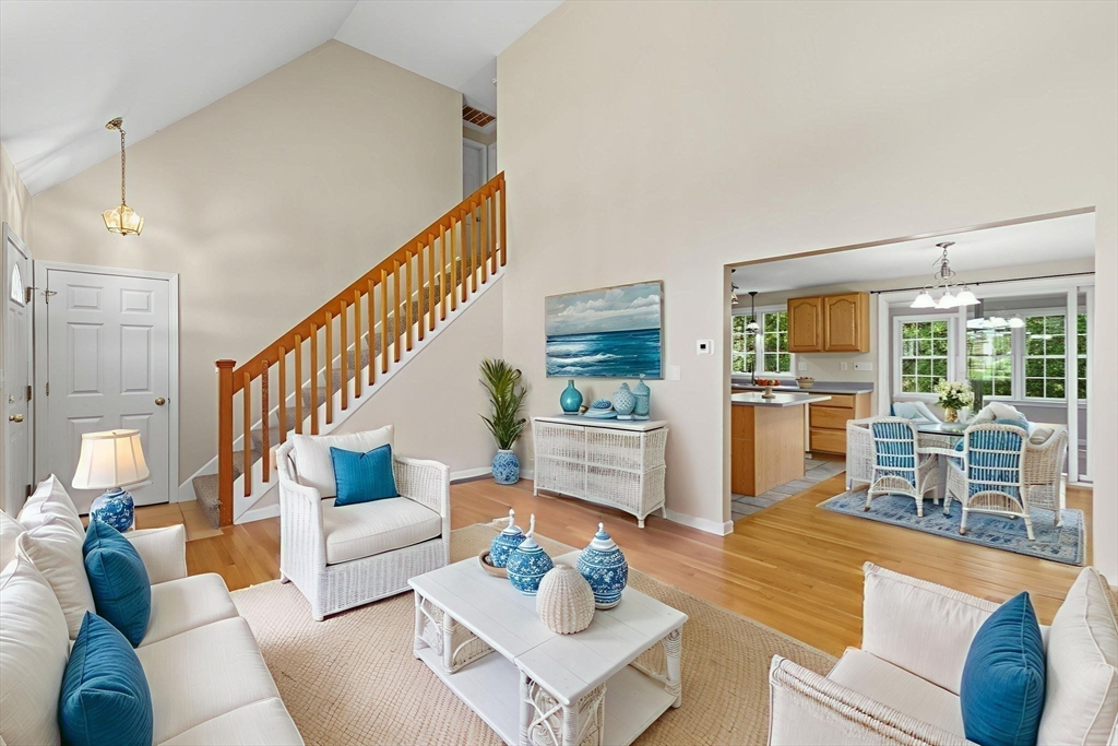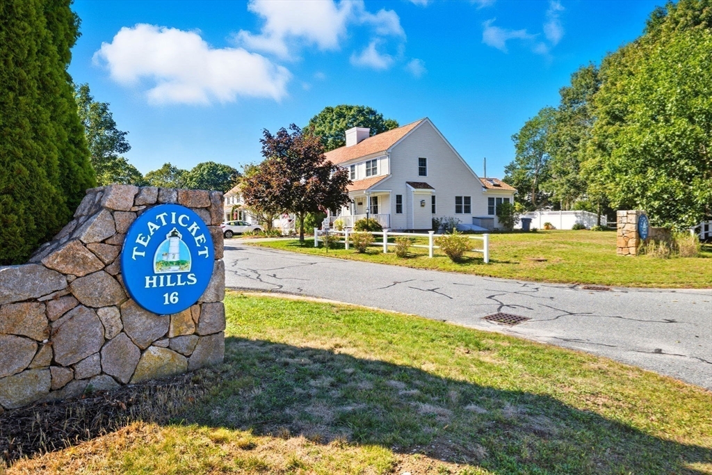 Charming THREE BEDROOM Condo in Teaticket Hills! This spacious 3-bedroom condo offers over 1,600 sq. ft.and can accommodate first-floor living, designed for convenience and comfort. The primary first floor en suite includes a walk-in closet, while the wide-open floor plan enhances the flow of natural light throughout the home. The gas fireplace is a focal point. Enjoy serene mornings in the sunroom overlooking lush greenery. A versatile bonus room can be transformed into a writers’ retreat, extra storage, a cozy "man cave" or what have you! Kitchen island is inviting for chefs helpers. With only 16 units in this desirable community, you’ll appreciate the tranquility and privacy. Located a stones throw from local restaurants and shopping, this condo provides the perfect blend of space, cleanliness, and a most ideal location. Don’t miss your chance to make this exceptional condo your new home!