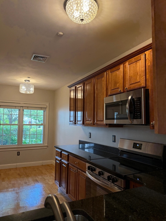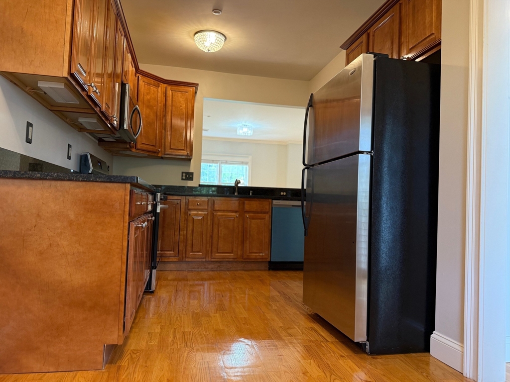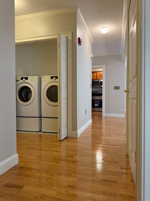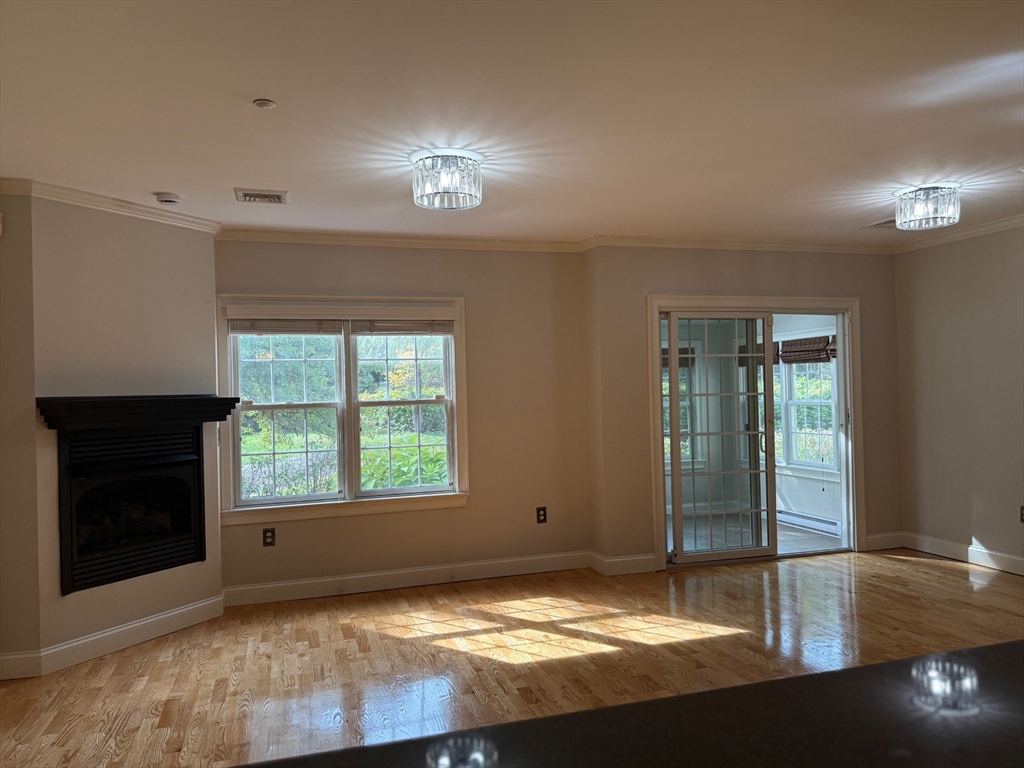 Heron Crest Condos 55+ Community. First-floor unit with an open layout. Rear windows overlook woods and a walking path. Primary bedroom features new LVP flooring and an updated bath with spacious shower, single sink, and new toilet. Second bedroom has new carpet and a large closet. Second bathroom also has a newly installed toilet. Bright main living area includes a gas fireplace and newly refinished oak floors. Crown moulding, oversized trim, tall baseboards, new lighting fixtures and fresh paint throughout, all done in Sept. 2025. Granite kitchen and bath countertops. Bonus sunroom with skylights, vaulted ceiling, and its own baseboard heat. Recent garage door replacement. Utility closet houses HVAC systems and storage; separate laundry closet with washer/dryer included. Wired for alarm system (unused). Very private and quiet setting.