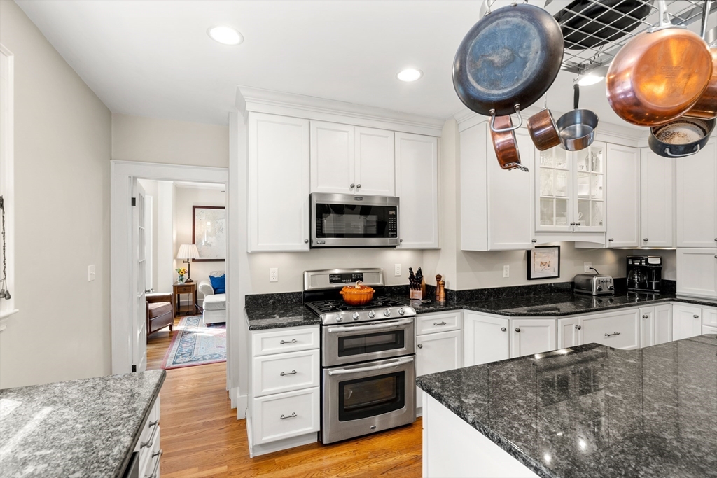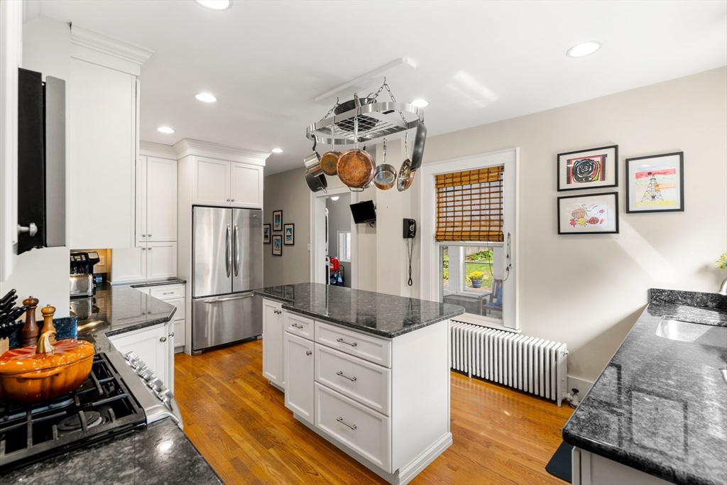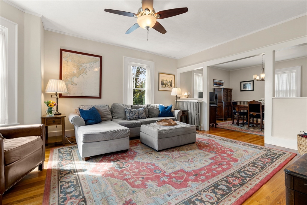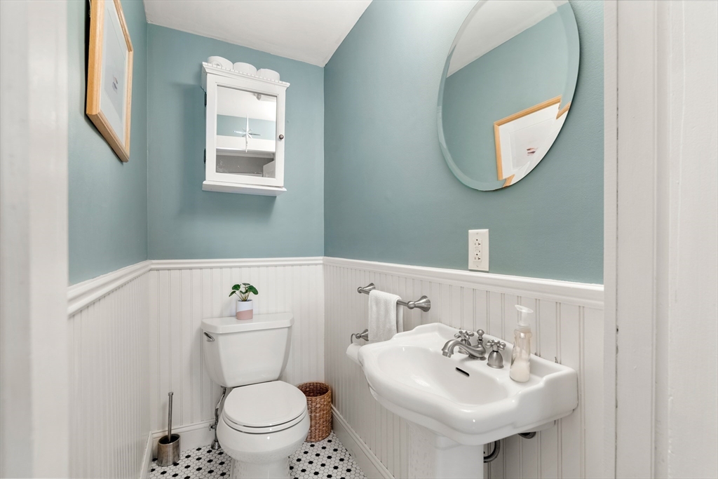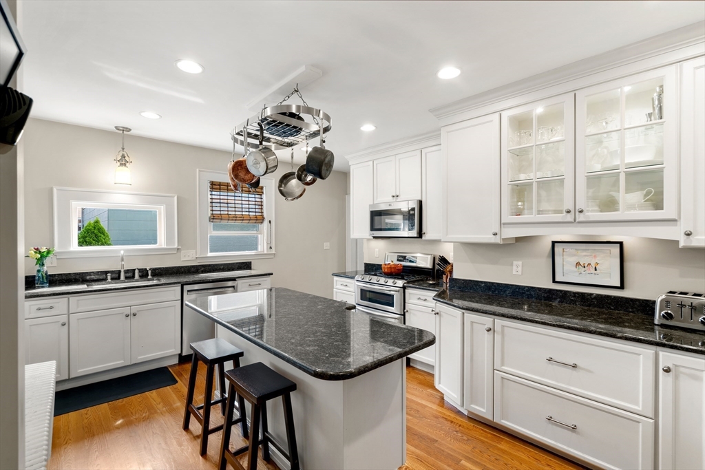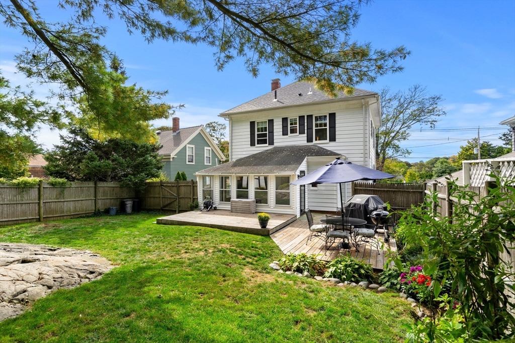 Step into this 3 bedroom, 1.5 bath Colonial and note an abundance of charm!! 51 Lincoln offers a seamless blend of antique features and modern amenities. Hardwood floors, high ceilings, moldings, trim work and stairs with a handsome banister are lovely period details. Granite and stainless kitchen with center island and custom cabinetry, updated baths, opened walls and first floor laundry provide more modern conveniences. Newly hardscaped side entrance with patio, new outdoor shed, interior custom media/bookshelf built-ins, newer roof & windows are some of the many improvements (please see attached list). Additional features include unfinished basement with exterior access and pull-down to attic for storage, driveway for two cars, mud areas in front and back, and a 3-season porch that overlooks the back deck and well-manicured, fenced yard. Mature plantings enhance curb appeal and back view! Close proximity to schools and town for coffee, shopping or to take in a movie!