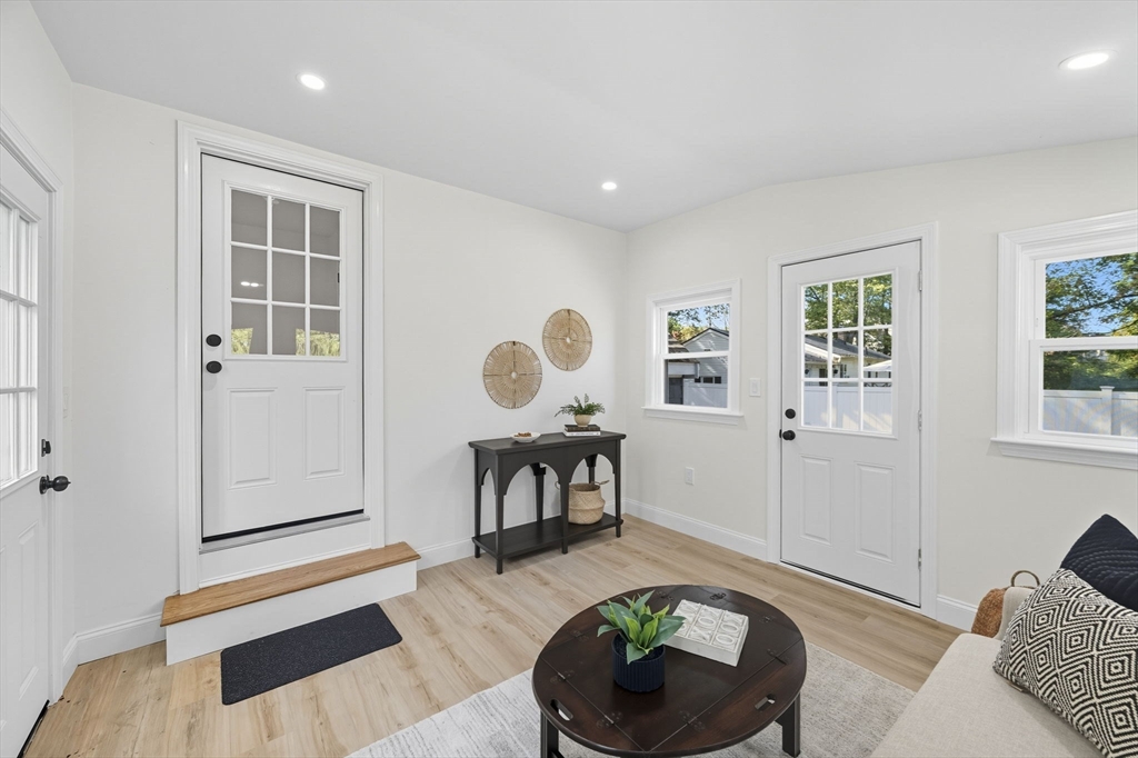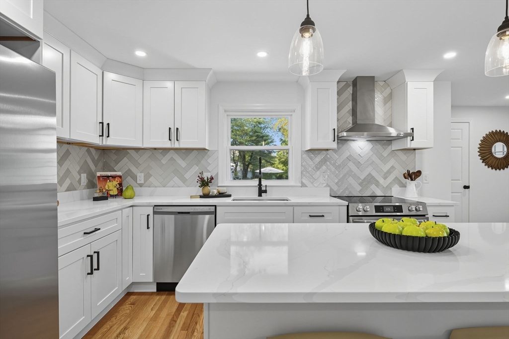 Welcome Home to 2 Bigham Rd in North Reading. Beautifully Remodeled 4 Bed, 2 Bath Cape on a Level Corner Lot. Gleaming Hardwood Floors and Fresh Paint Welcome You as You Enter the Open Concept Main Level. New Kitchen with Shaker Cabinets, Stainless Steel Appliances, Quartz Counters, and Tile Backsplash Make This a Great Space for Entertaining All Year Long. Dining Room, Large Family Room, Mudroom, Full Bath with 1st Floor Laundry, and 2 Bedrooms Round out The Main Level. The 2nd floor features two more bedrooms with a Built-in Dresser and a Full Bathroom. Brand New Heat Pump with 2 Zones, New Hot Water Tank, Upgraded 200 AMP Electrical Service, New Windows, Composite Back Deck, Fresh Exteror Paint and New 4 Bedroom Septic System Round Out the Features of This Move In Ready Home!