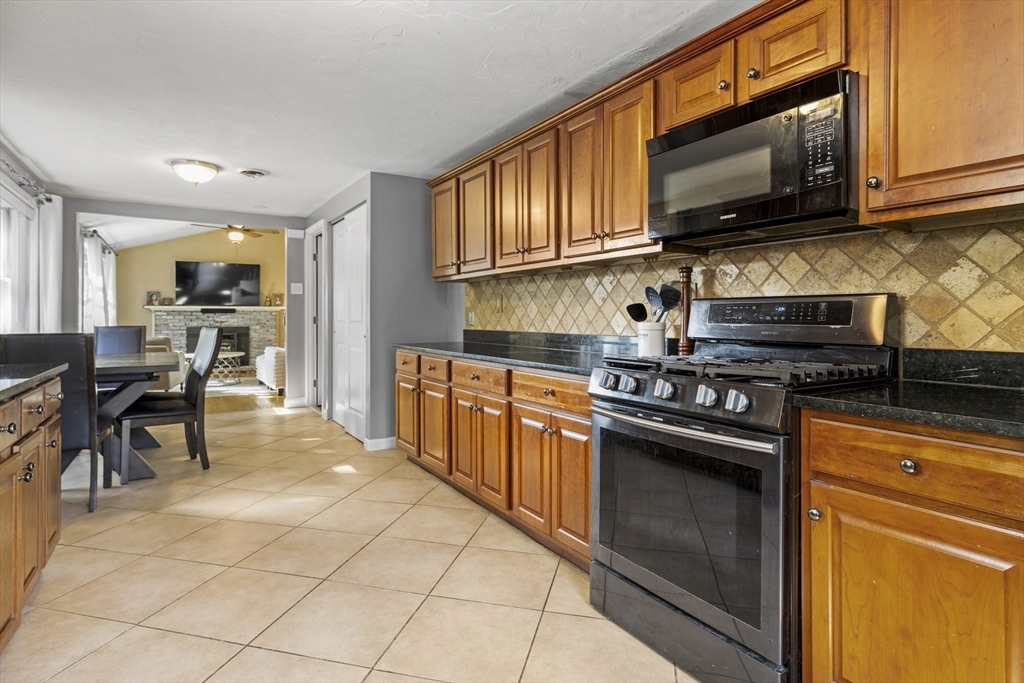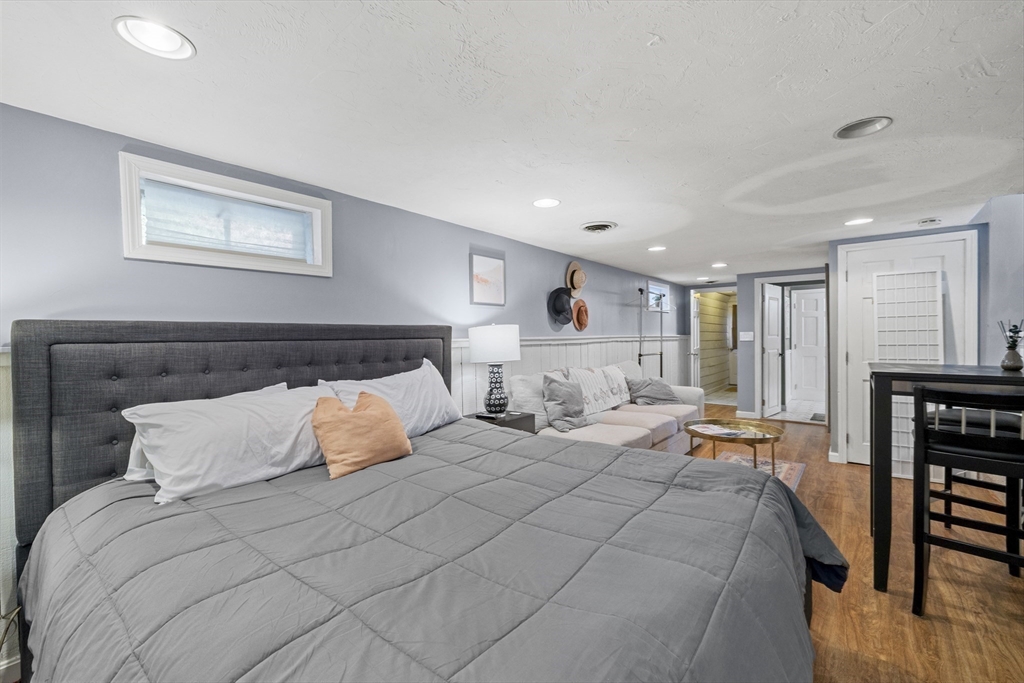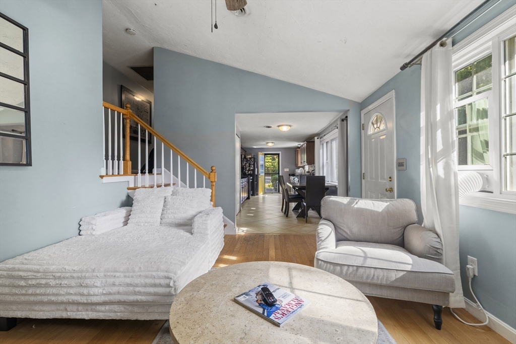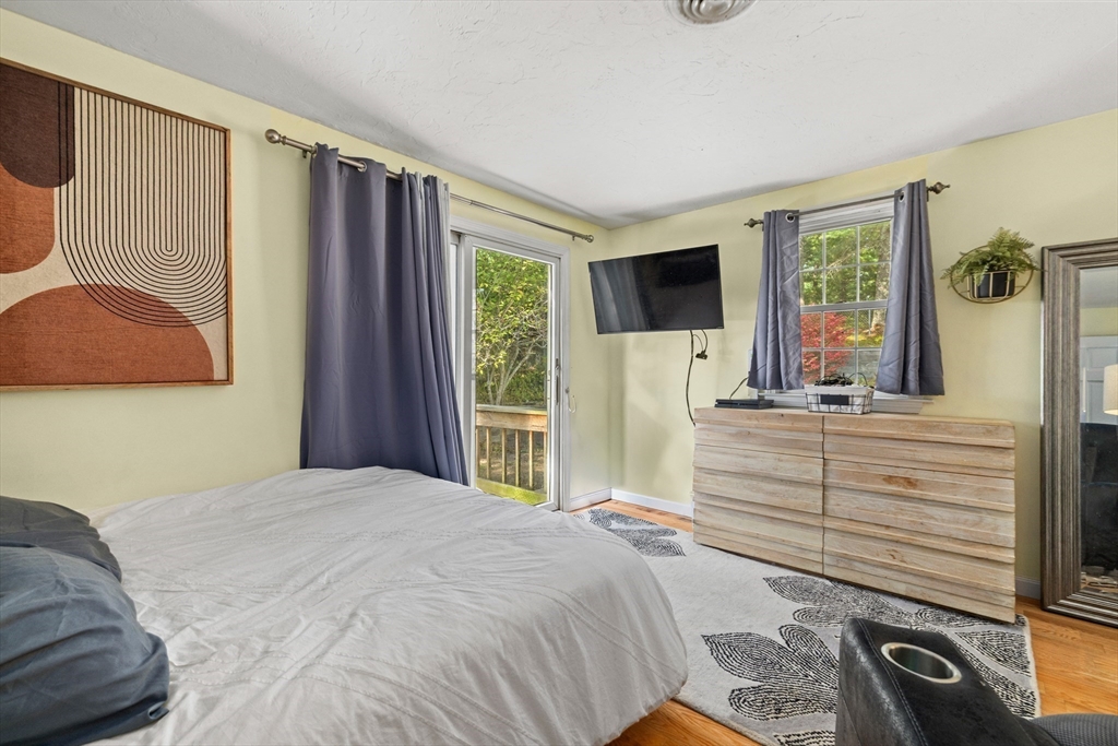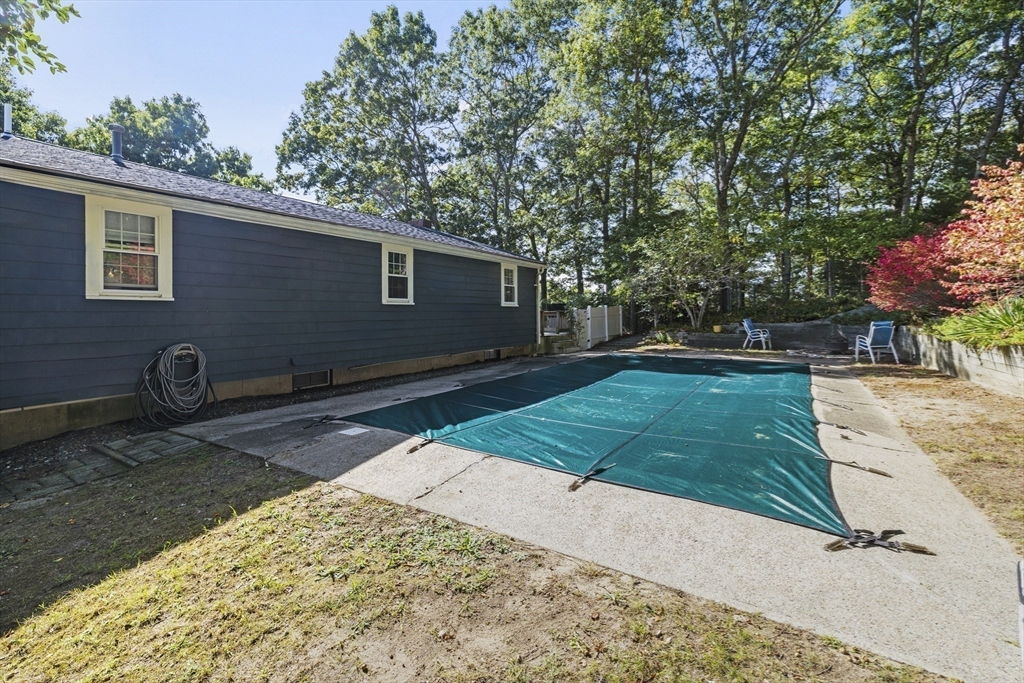 Nestled at the end of a culdesac, this inviting home in Plymouth County presents a ready-to-move-in opportunity. The kitchen welcomes you with beauty and functionality in mind. The living room with vaulted ceiling, offering a sense of spaciousness and airiness that invites relaxation and peaceful moments by the fire. A few steps up to three bedrooms with all new wood/laminate flooring. The primary bathroom offers a tiled walk-in shower that provides a spa-like experience, perfect for unwinding after a long day. The finished basement is setup for Airbnb with a separate entrance; Or opt for a large family room or playroom, perfect for in-law also. The property offers a backyard oasis with a pool and a pump house shed, a deck for entertainment, and a patio for relaxation. Enjoy a woods view from the property, and benefit With two full bathrooms, three bedrooms, and a two-car garage, this single-family residence provides ample space. Close to Route 3.