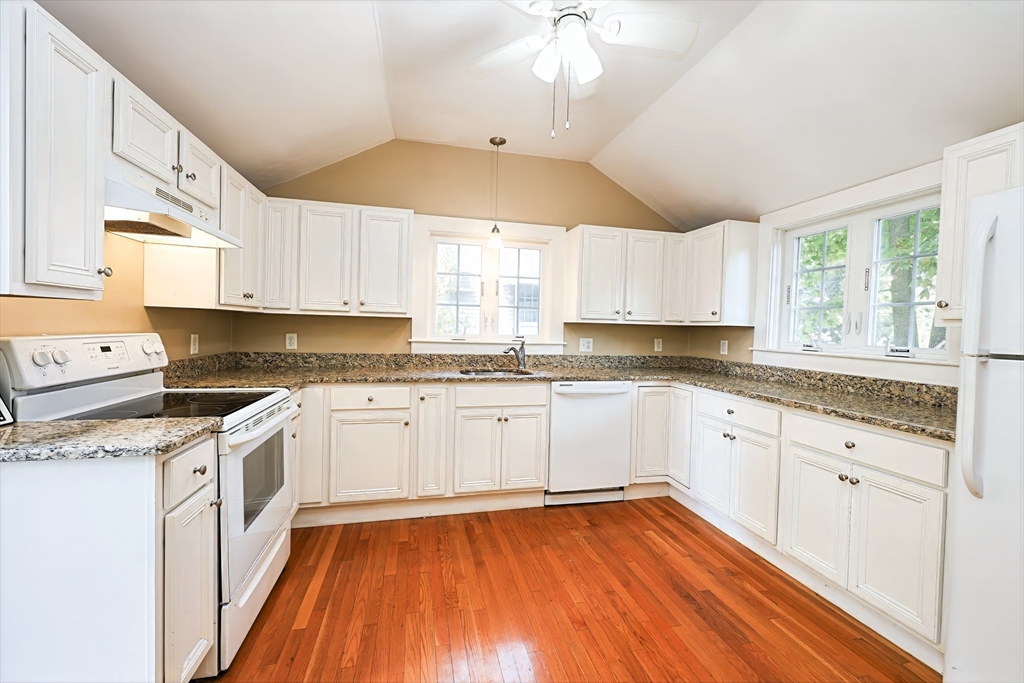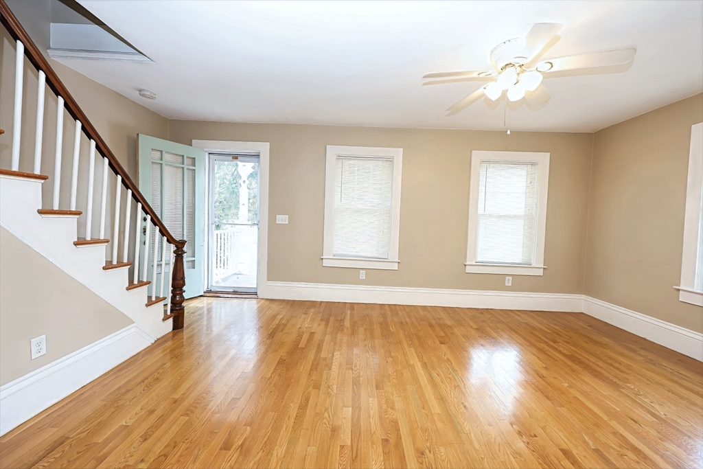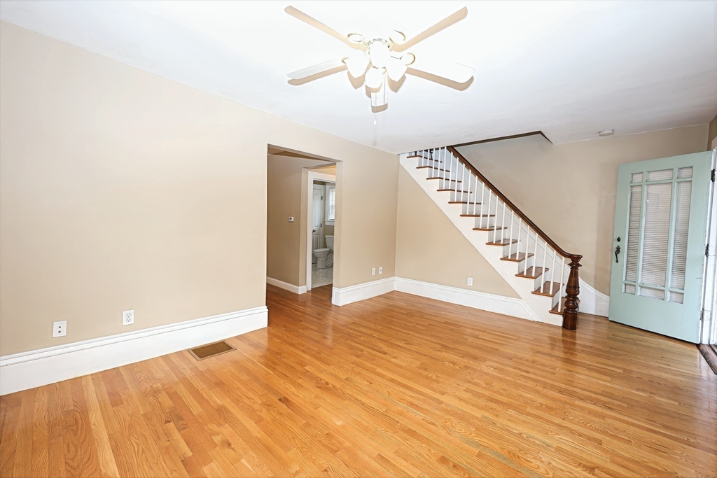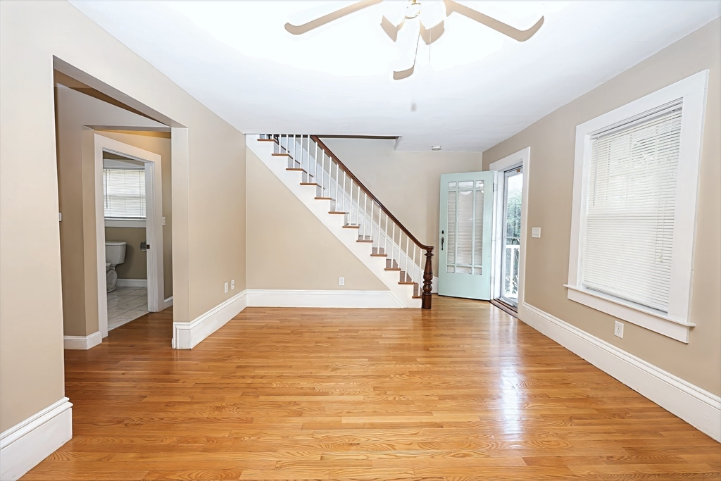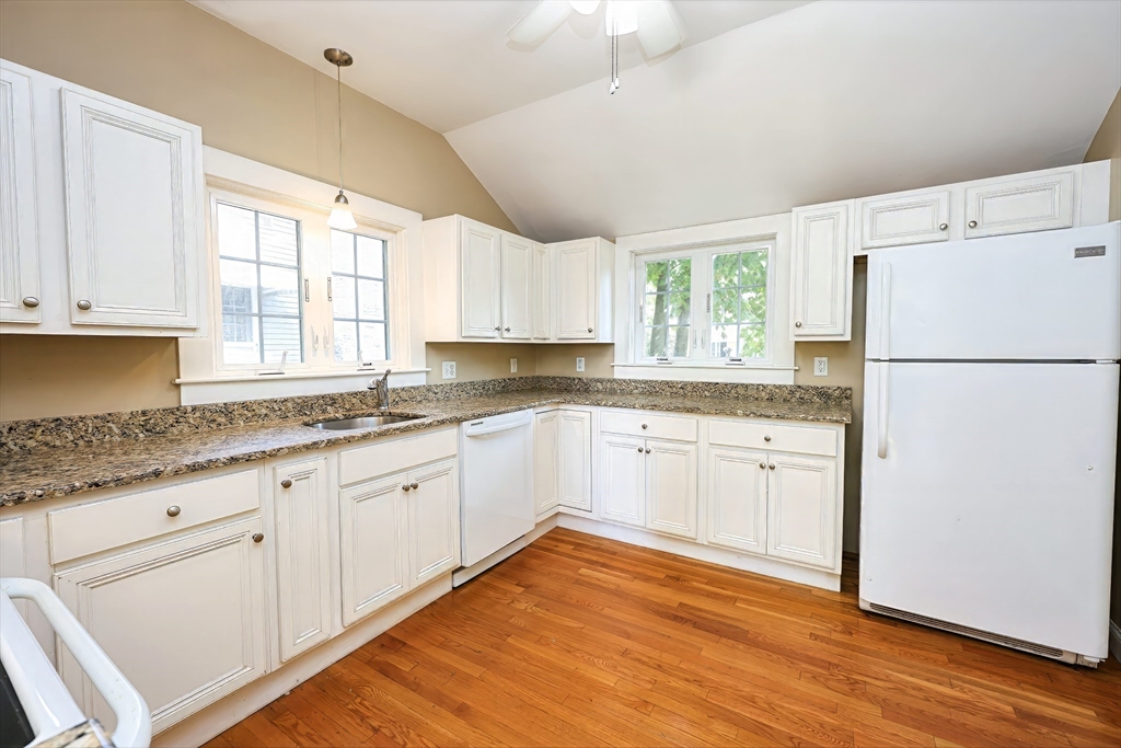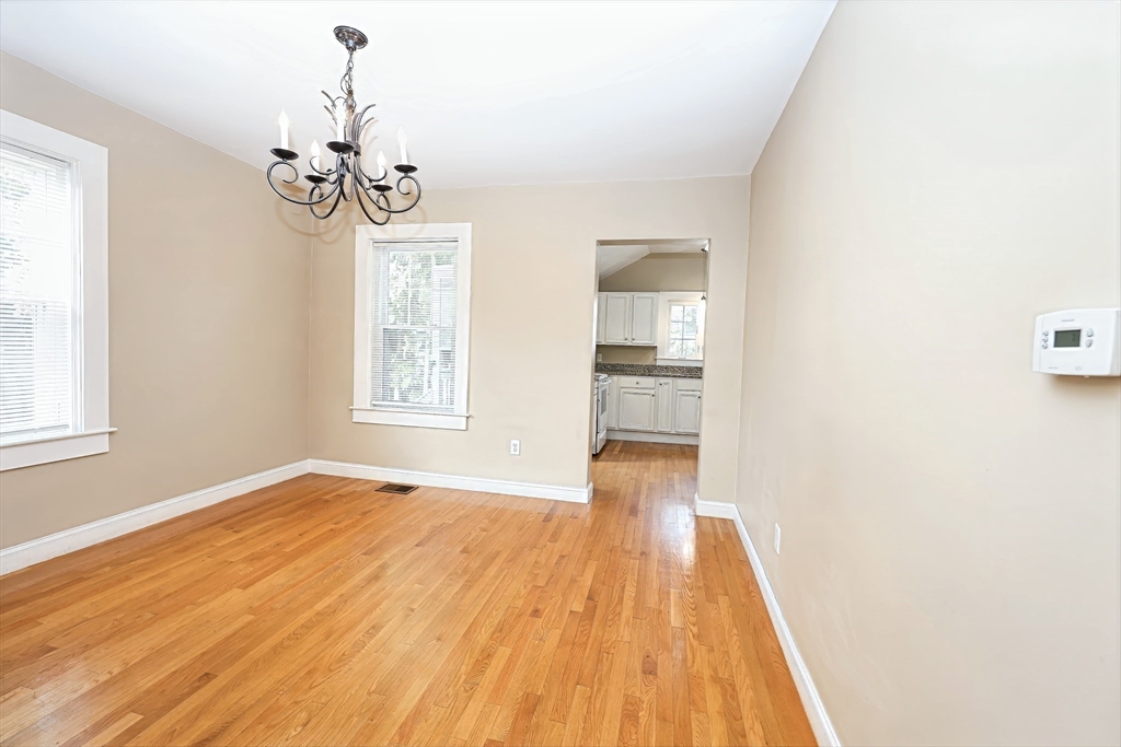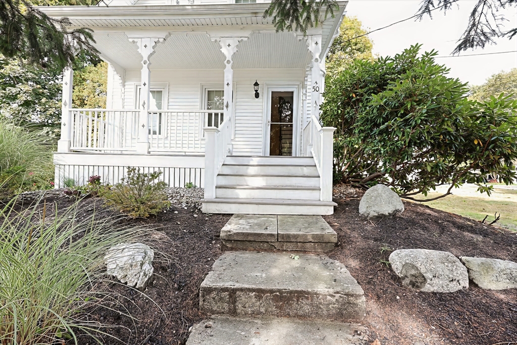 Welcome to 50 Front St, East Braintree - beautifully renovated 2BR with den/office/1BA single-family home. Charming curb appeal, front porch, ample off-street parking, generous side yard. Sun-drenched living room with hardwood floors flows into elegant dining room with chandelier. Updated kitchen features granite counters, ample cabinetry and cathedral/vaulted ceiling. Spacious full bath with ceramic tile. Upstairs: primary bedroom with dual closets/hardwood floors, secondary bedroom, plus home office/den. Full basement storage. Prime location - under 1 mile to commuter rail, easy Routes 3/93 access, walk to Weymouth Landing shops/restaurants. Watson Park/yacht clubs nearby. $3,400/month, available immediately. W/D hookups. Owner provides landscaping. Tenants responsible for all utilities & snow removal. No pets/non-smoking. Strong credit/references required. Appointment-only showings. MBTA Red Line within 5 miles. Amazing home for rent, start your next chapter here!