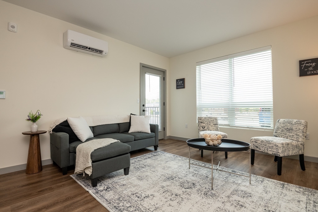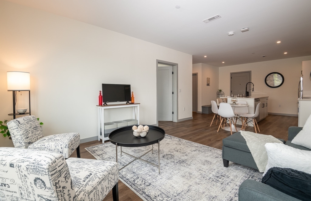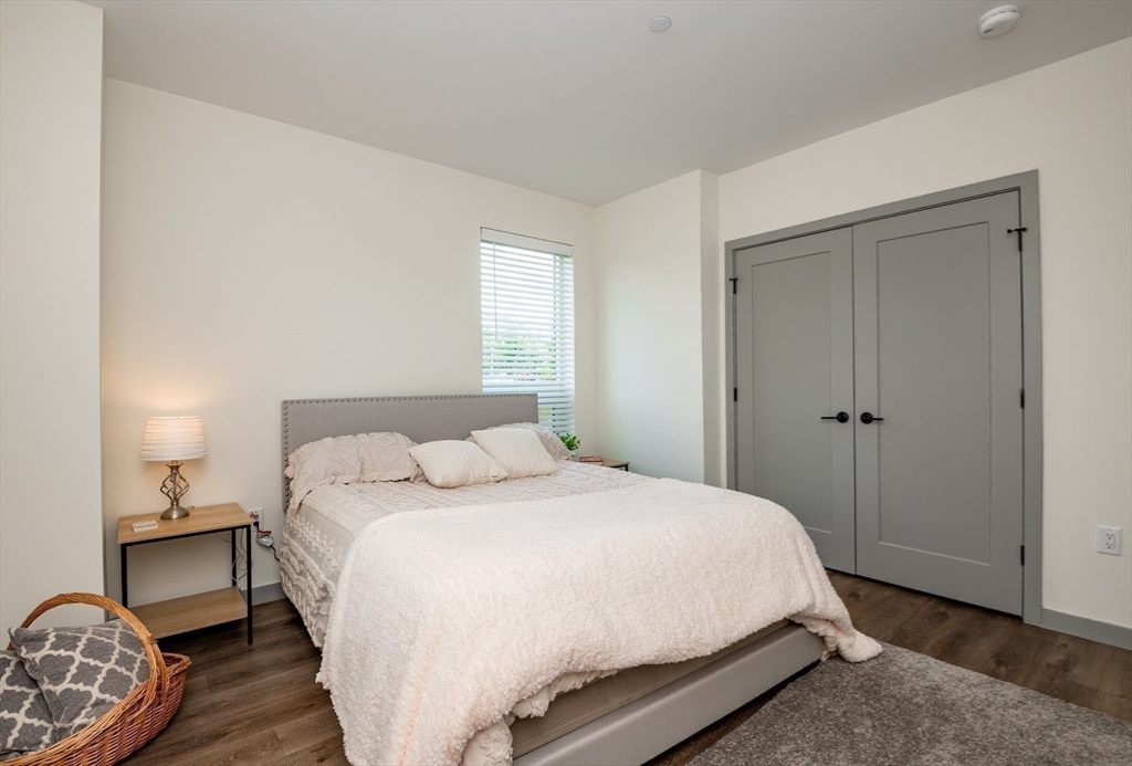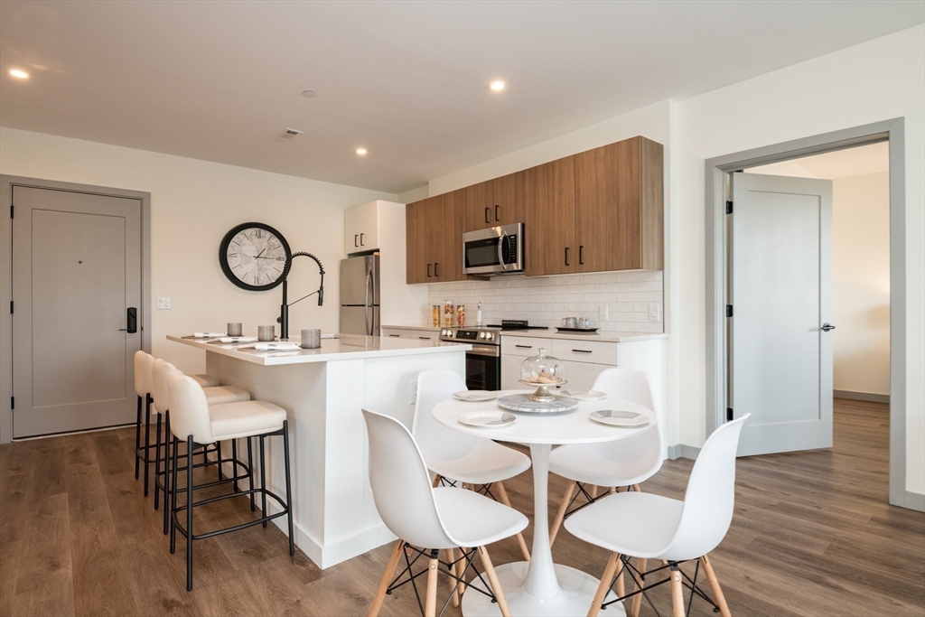 new Condo Ready for move in. This is a beautiful 2 Bed , 2 bath end unit . Expansive amenity spaces including a clubroom, fitness center, conference room, lounge, secure package room and work from home offices, along with an HOA-owned Wi-Fi Network. All units feature LVT flooring, quartz countertops, stainless steel appliances, tiled showers with frameless glass doors and/or tub surrounds, plus a washer/dryer hookup. Private balconies to enjoy your morning coffee, in unit laundry rooms and large kitchen islands. Condos comes with a deeded garage parking space and an additional outdoor space assigned. Winter is coming park inside! The club room features kitchenette, dining table, pool table, tv and plenty of seating. The fitness center features treadmills, ellipticals, free weights, squat rack, yoga room and more. There are extra storage space units available on site and a pet washing station. pet friendly, close to highway, restaurants, shopping, don't miss out