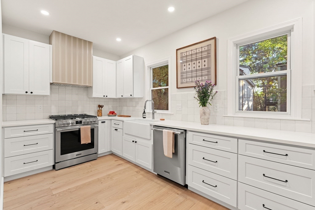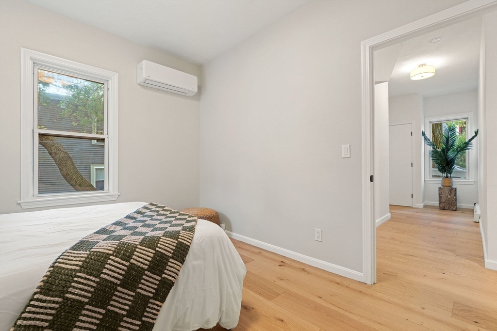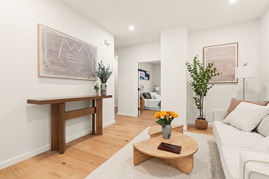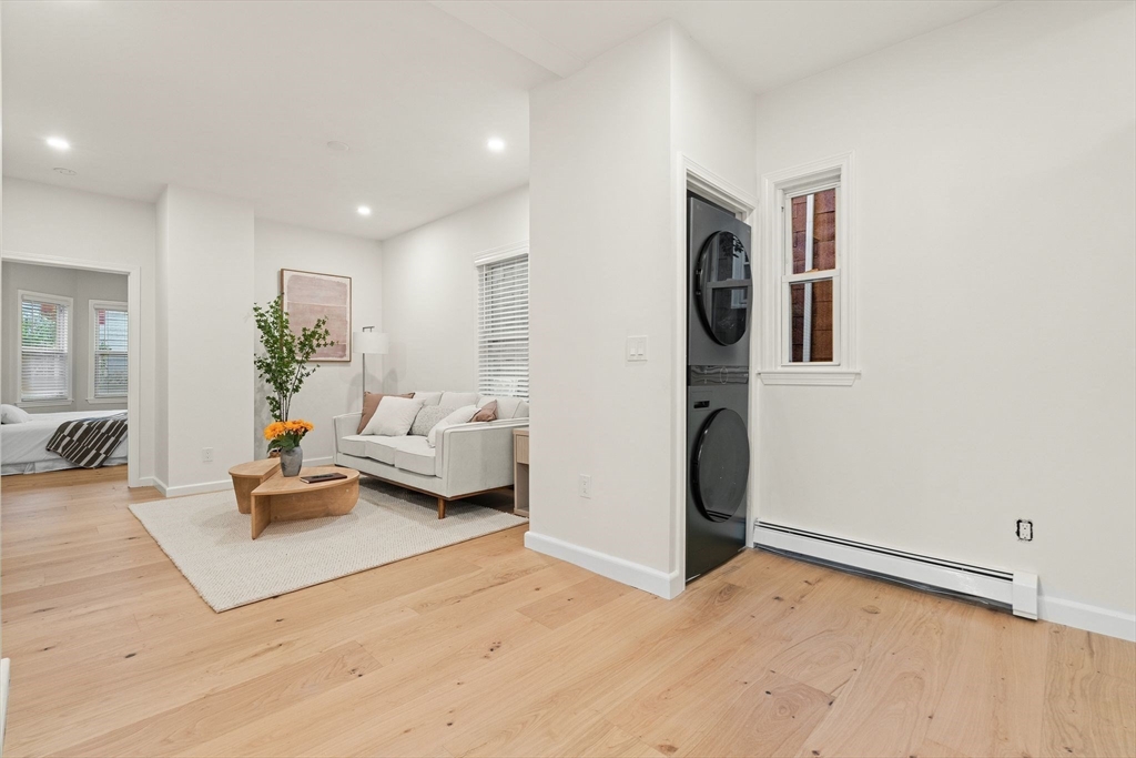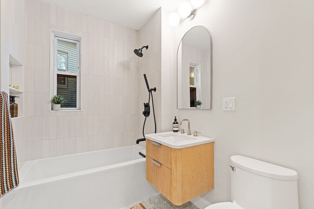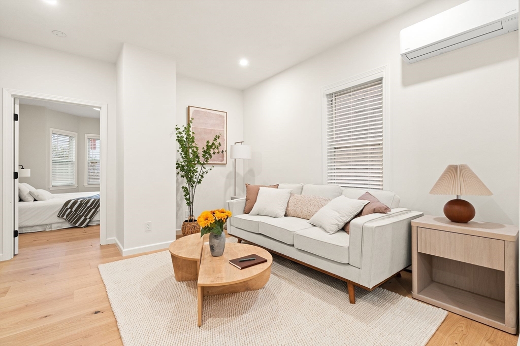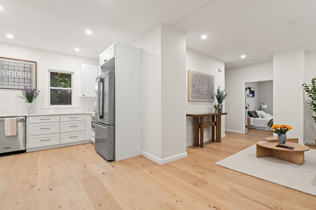 Stunning first floor 2 bed, 1 bath condo tucked away on a side street in JP checks all the boxes! Located just minutes to the Arboretum, Centre / South St. shops, Forest Hills station & Jamaica Pond, this stylish home is filled with thoughtful, luxurious touches. Mid-century modern vibes blend many cosmetic updates such as new wide plank European oak flooring, high-end fixtures, central air, and recessed lighting. The open layout and high ceilings showcase the gorgeous kitchen and its Frigidaire professional appliances, tiled backsplash, and custom hood fan. The posh bathroom features Moen shower / tub system, polished nickel fixtures and floating vanity. Additionally, there’s LG in-unit laundry, a large entry foyer, private patio, walkout basement ideal for bikes / kayaks, + large private storage room. This was a 2015 full reno & 2025 refresh and is a new condo conversion offering 2 units. Don’t miss this exceptional home!