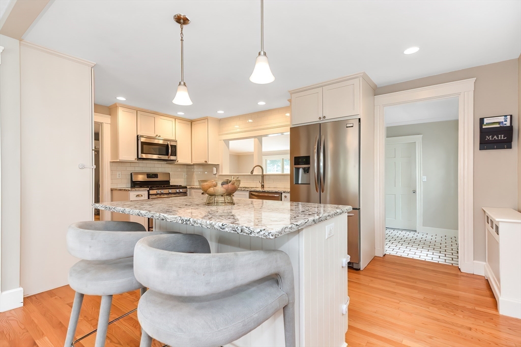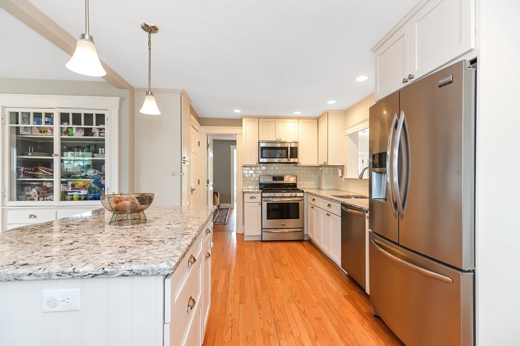 A beautiful colonial house is situated on one of the best streets in Dedham’s Endicott neighborhood. Very convenient location, it is 0.3 miles to Oakdale elementary school and Oakdale square for shopping, 0.4 miles to Endicott Library and Endicott Estate, a great place to attend the summer concerts, 0.4 miles to Endicott commuter rail station also very close to Legacy place and route 95.This lovely home features an entry vestibule, the fireplaced living room on the other end entering to a family room with plein of natural lights and a heated sunroom with a view to a all around deck, a patio with gas fireplace, a beautiful lawn and fenced yard. The first floor offers also an open-concept kitchen with many cabinets, nice dining space, and a full bath. On the top floor you can find 3 bedrooms, an office space/ guest room and a full bathroom. The lower-level features semi-finished laundry & workshop areas, finished room (playroom/4th BR), full bath and a walk out basement.