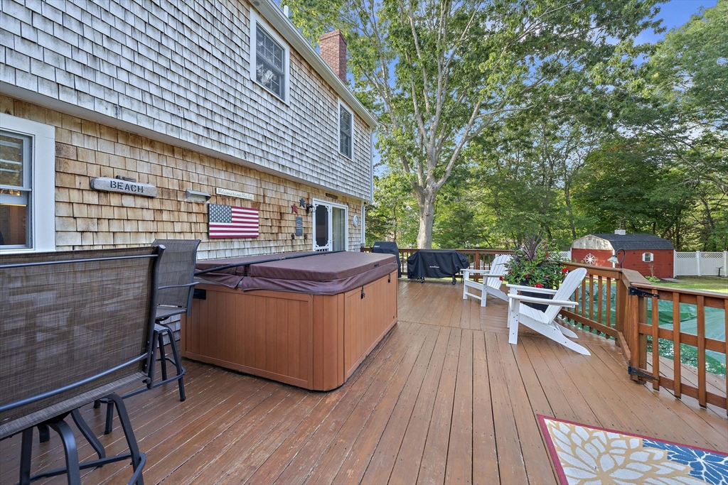 This beautiful 4-bedroom, 2.5-bath colonial is move-in ready and tucked away in a quiet neighborhood bordering the South River Inside, you’ll find a bright and welcoming layout with a spacious living room and cozy fireplace, a formal dining room that’s perfect for gatherings, and an updated kitchen with granite countertops, stainless steel appliances, and plenty of cabinet space.Upstairs, the primary suite has its own private bath and walk-in closet, while three additional bedrooms offer plenty of room for family, guests, or even a home office. The finished lower level adds extra living space that can easily be used as a playroom, gym, or media room.Recent updates include a brand-new roof, central air conditioning, and fresh exterior paint. Outside, the private fenced yard is beautifully landscaped and features a large deck, hot tub, pool, and lots of space to relax, play, or entertain. Conveniently located near beaches, schools, shopping, and restaurants, this home truly has it all!
