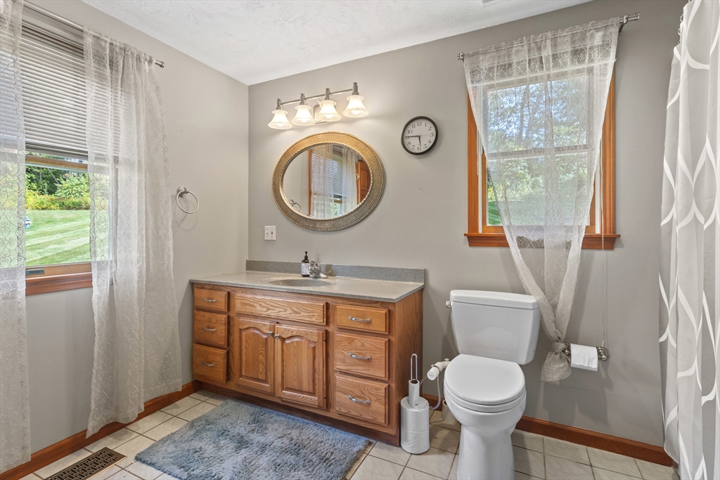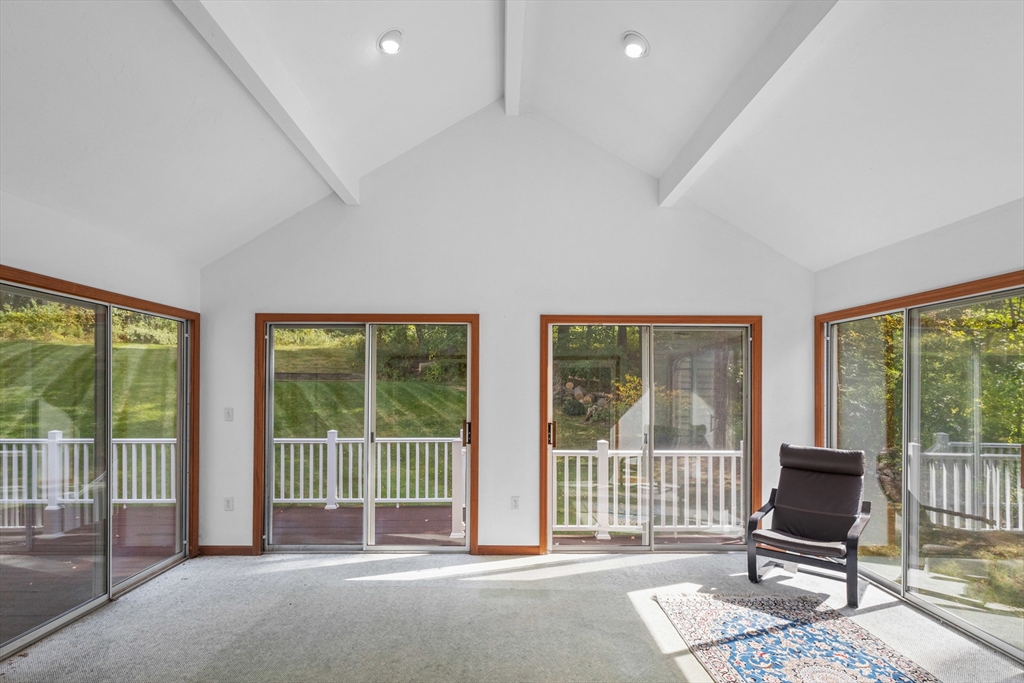 Welcome to 67 Pine Hill Rd! This spacious single-family home sits on 3.27 acres at the end of an exclusive 6-lot cul-de-sac, surrounded by conservation land. Designed with an open floor plan, this home is perfect for entertaining & offers an easy flow filled with natural light. The cathedral-ceiling family room features skylights and an impressive fireplace, while the sunroom leads to a large deck overlooking the private backyard. Full bath on main level w/ laundry. 2nd level has 4 bedrooms, 2 full bathrooms. The fully finished lower level adds flexibility with a 5th bedroom, full bath, home gym, & family room. Don't forget the 3 car car garage! Recent updates include a Fujitsu HVAC system with heat pump technology (2021), 3rd zone added to basement, new appliances (2023), water heater (2022), new flooring in the living room, office & downstairs LR, recessed lighting in bedrooms, office & more. A rare opportunity for privacy, updates & versatile living on a premier cul-de-sac setting.