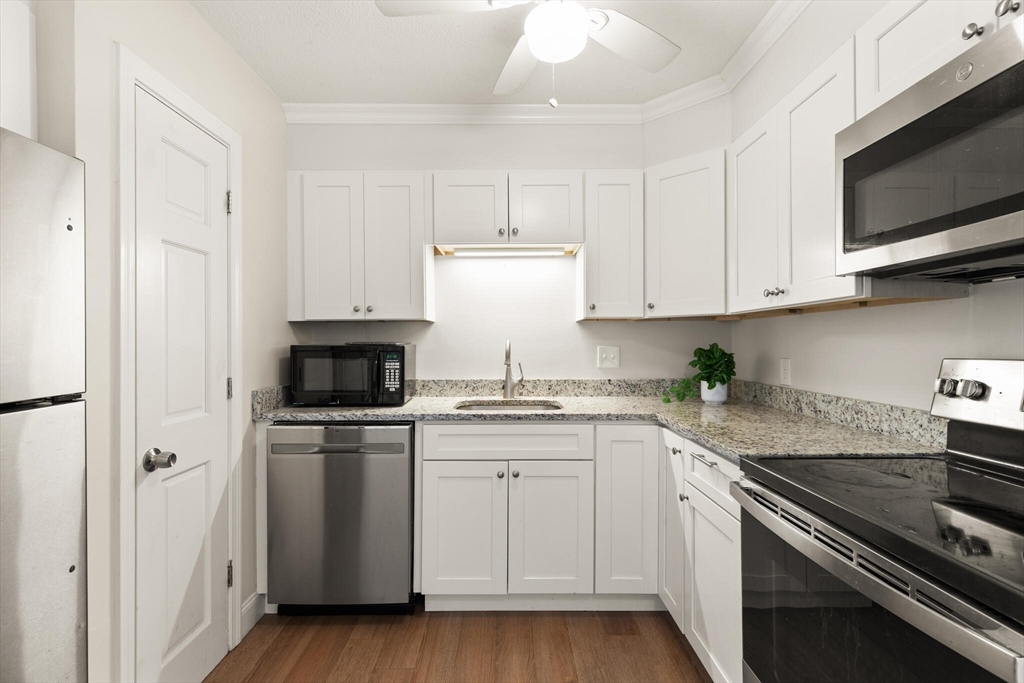 This completely renovated two bedroom TOP floor unit is conveniently located near major highways, commuter rail, restaurants and shopping, just minutes from Downtown Plymouth and Plymouth Waterfront. This well maintained condo features white oak LVP flooring throughout, freshly painted neutral walls, two spacious bedrooms with ample closet space, and a brand NEW kitchen/bath with granite countertops and SS appliances. The association fee includes heat and hot water, ensuring your living experience is both worry-free and budget-friendly. Enjoy the convenience of deeded parking and take advantage of the fantastic community amenities, including an in-ground pool and tennis courts/playground. The windows, roof, and patio with balcony have all been replaced within the last two years, making this a highly desirable complex for easy living at an unbelievable price! Welcome home to Chapel Hill Drive, the ideal choice for those seeking comfort and accessibility.
