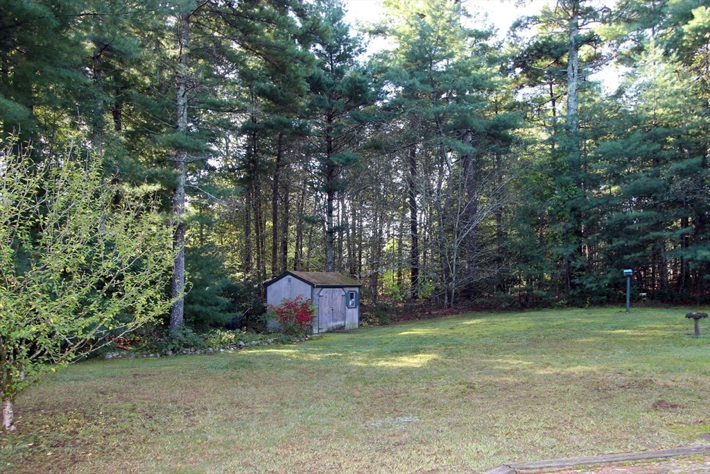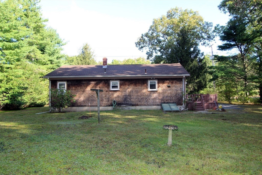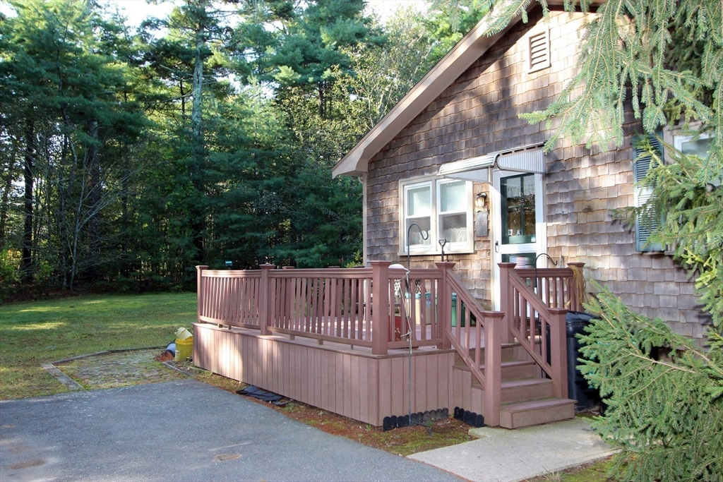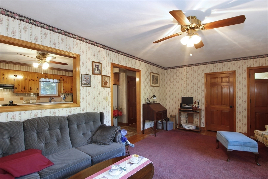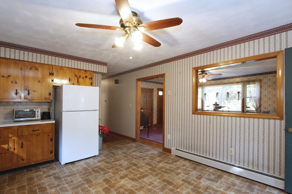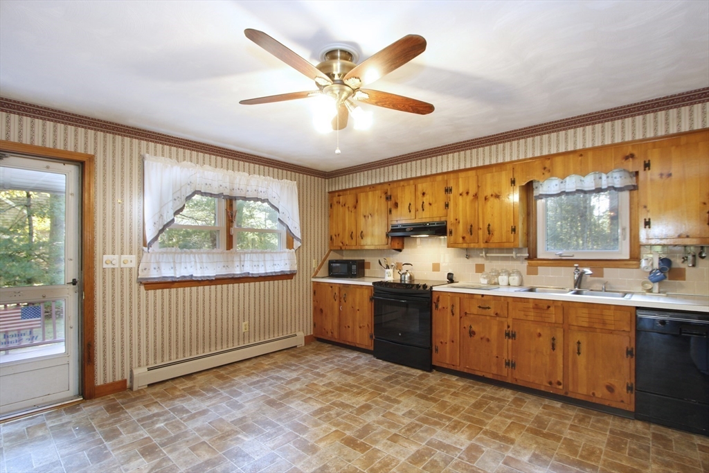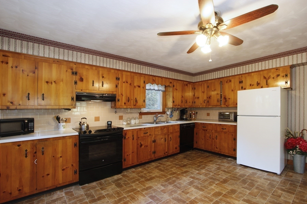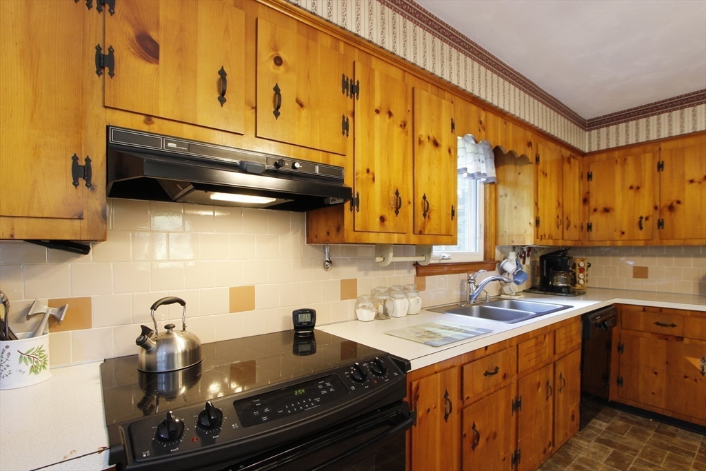 Discover this delightful ranch nestled in pines. This highly desirable single level home is move-in ready to make your own, The heart of this home is undoubtedly the large eat-in kitchen complemented by the expansive counters & original immaculate pine cabinets, The living room is large & spacious, enhanced by crown molding, nice floor space, entrance to the front farmer's porch, and large picture window overlooking the picturesque yard. Each bedroom also features crown molding, ceiling fans, hardwood floors throughout, and solid pine doors throughout. Upgrades include an updated furnace/oil tank, newer well pump, and newer vinyl windows. Outside, the property opens to a generous lot of 21,867 square feet, offering a peaceful woods view that promises tranquility and privacy alongside a deck perfect for enjoying the serene natural surroundings.